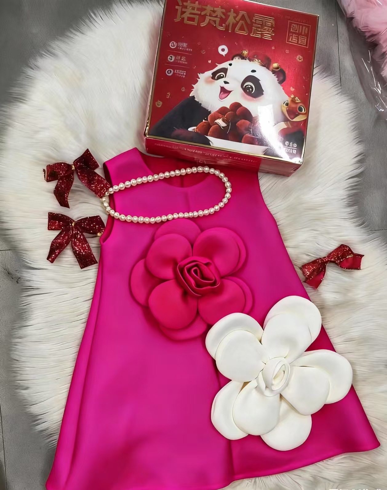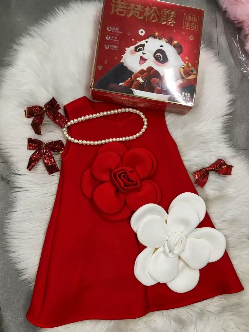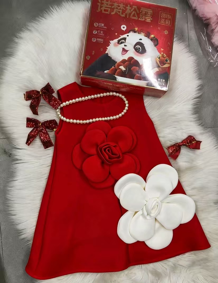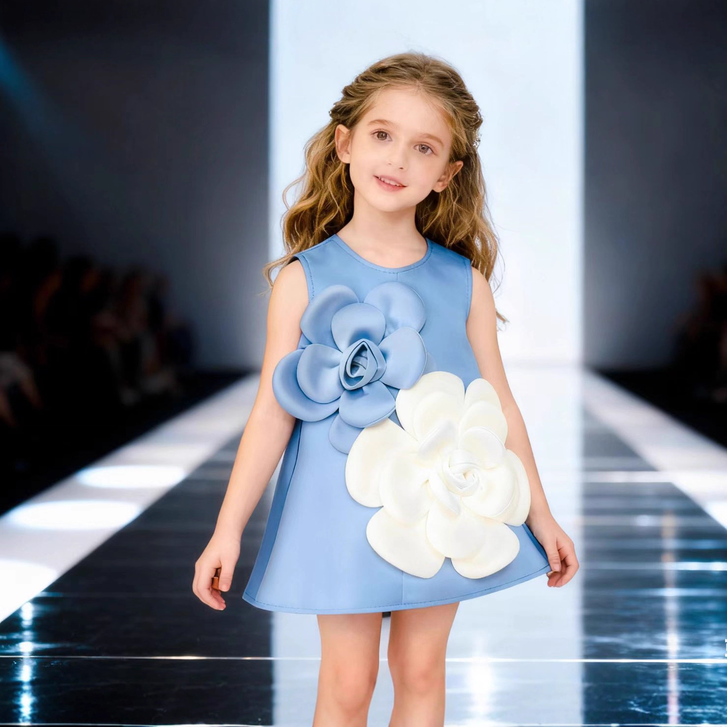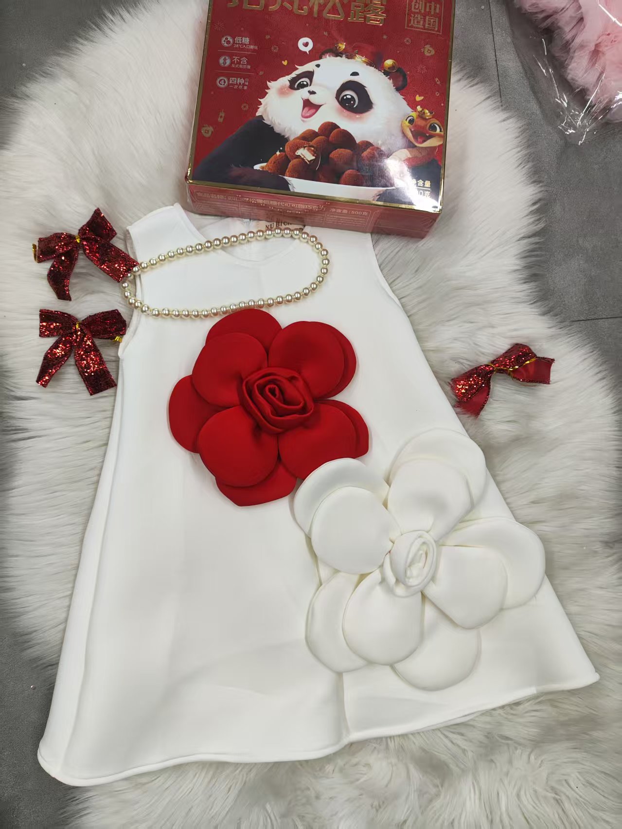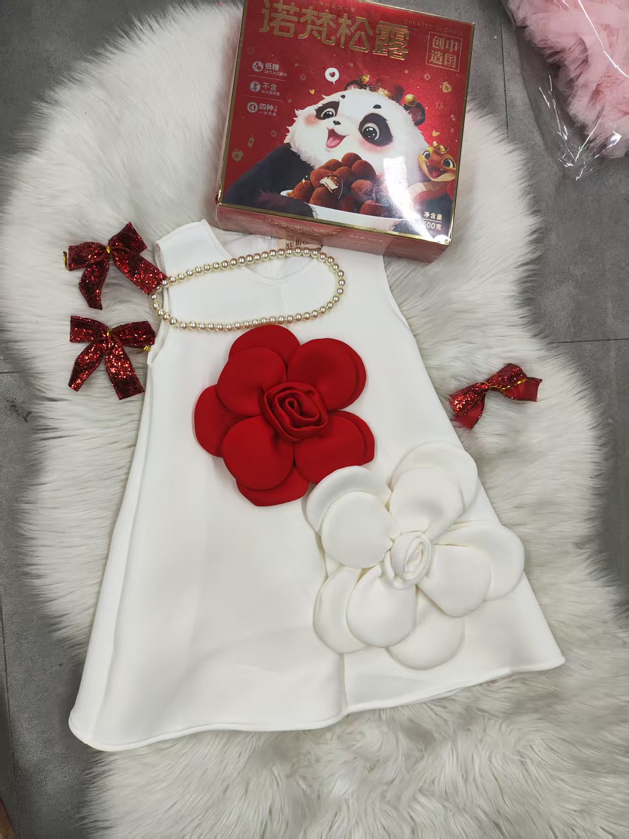 Christmas girls princess new dress three-dimensional flower sleeveless fashion A-line dress