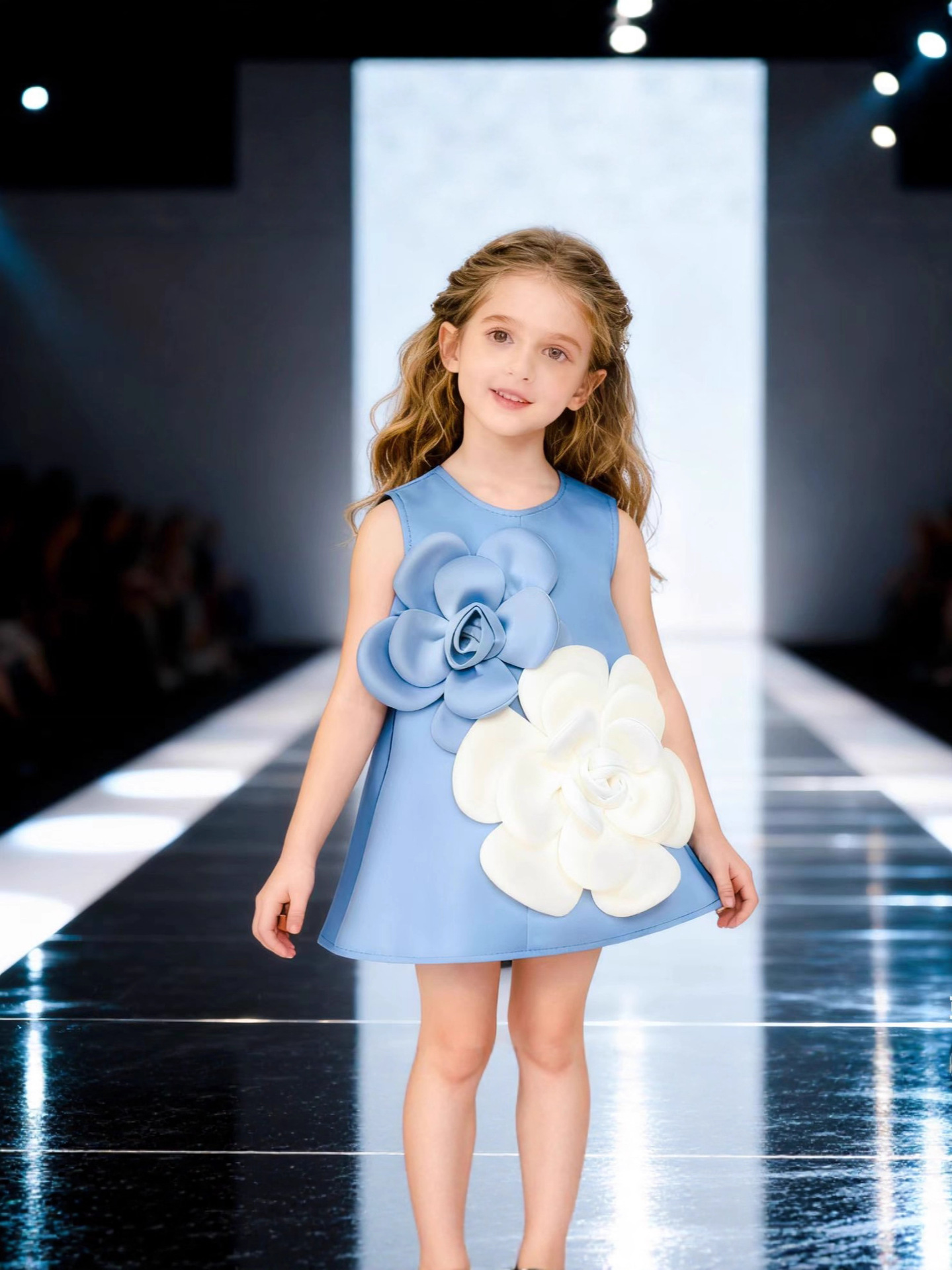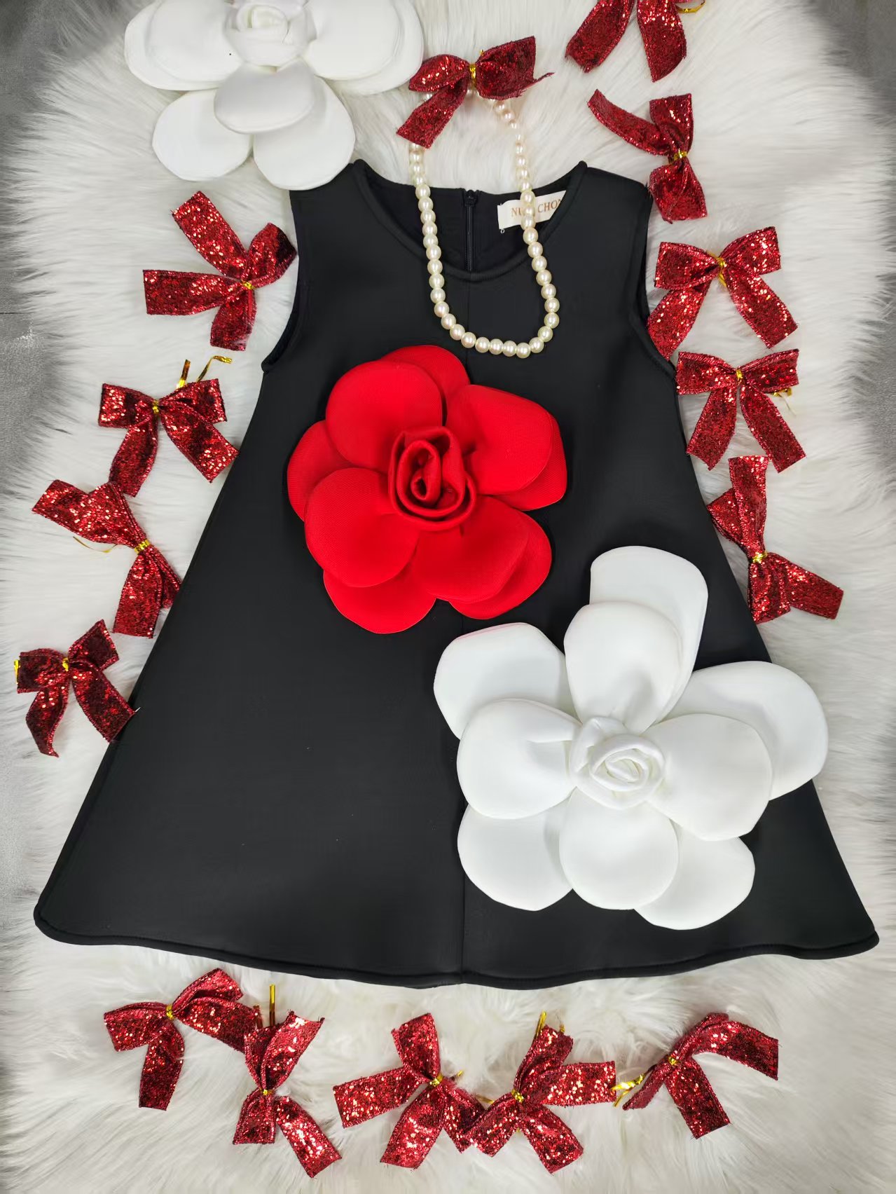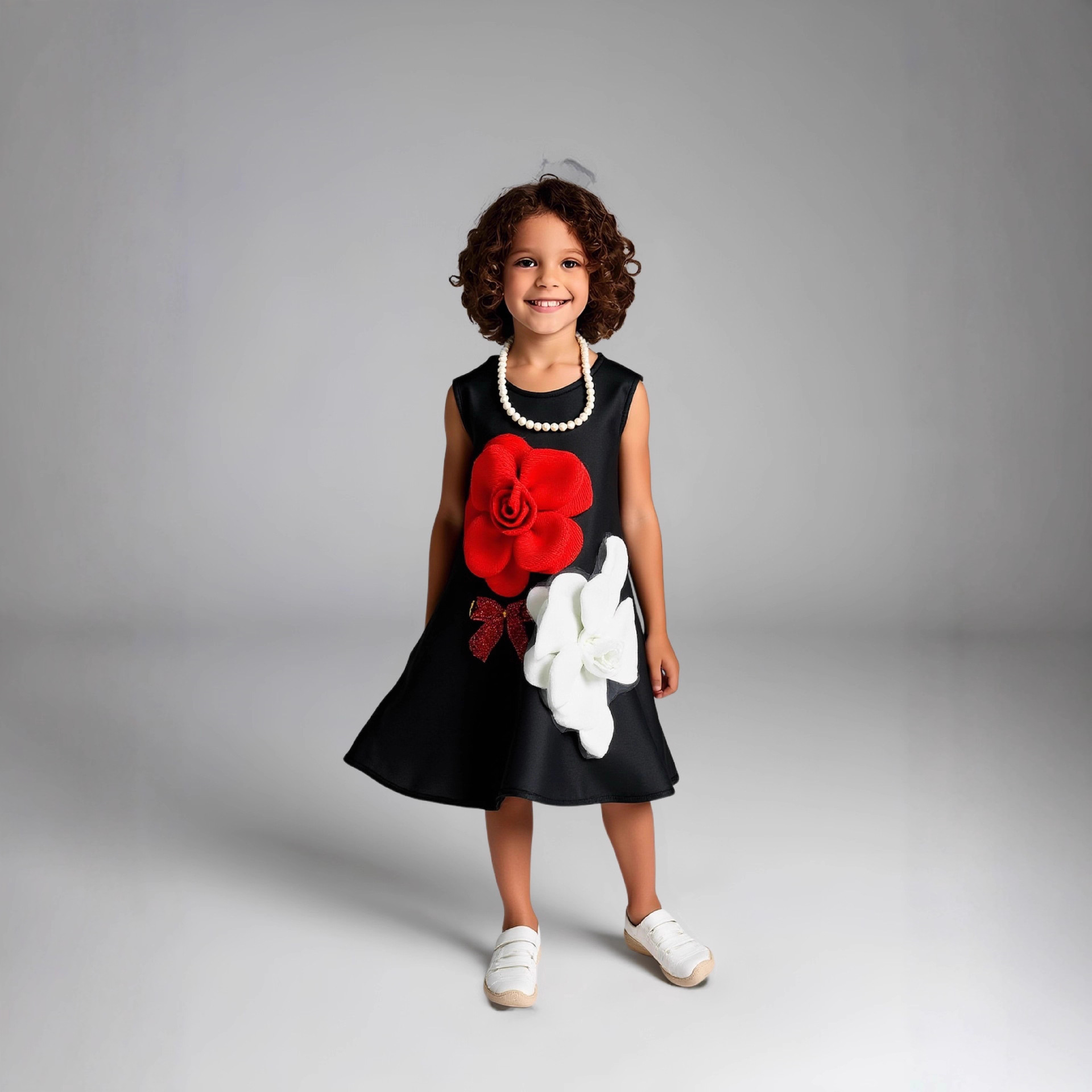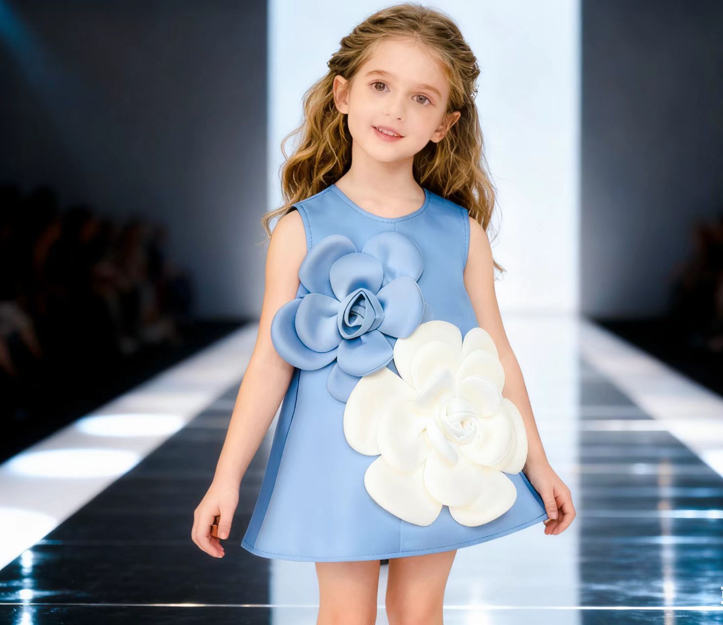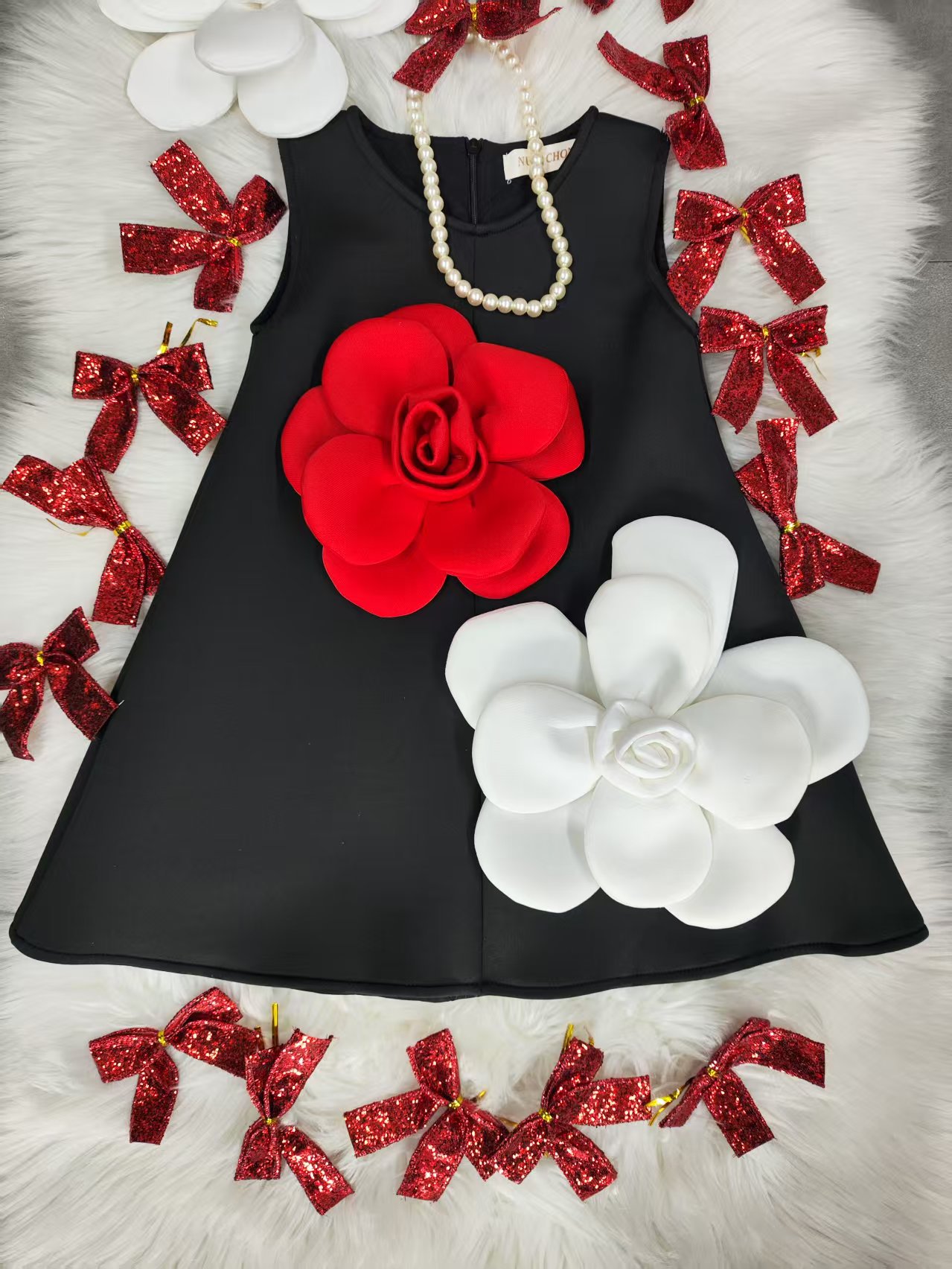 Christmas girls princess new dress three-dimensional flower sleeveless fashion A-line dress