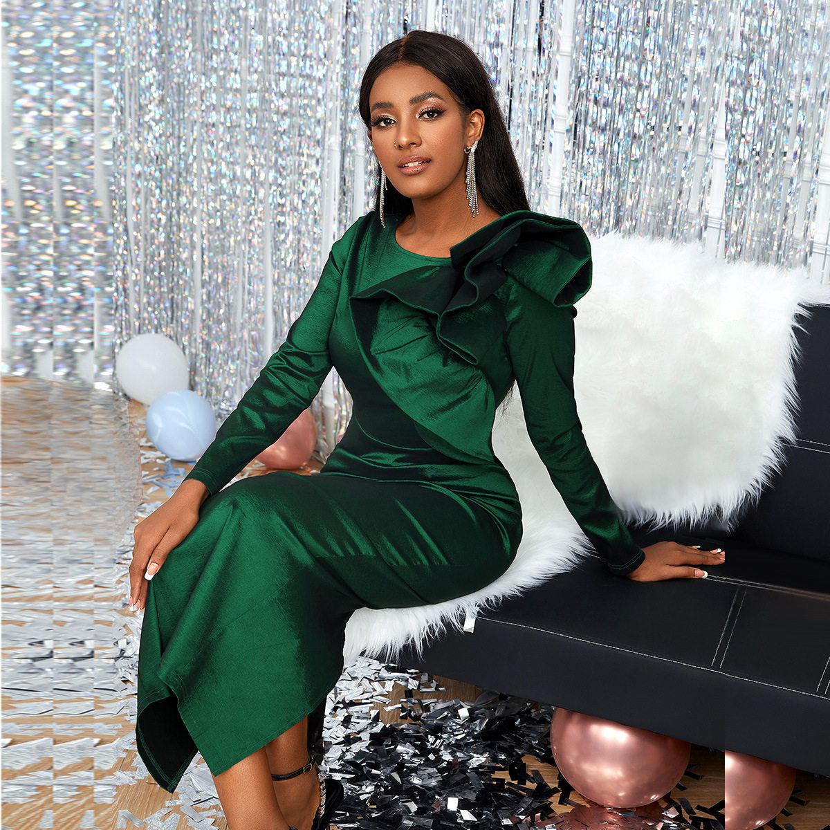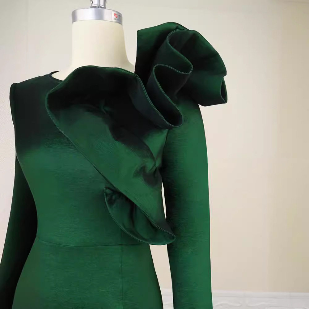 Creative design three-dimensional ruffle one-step skirt women's fitted banquet dress dress