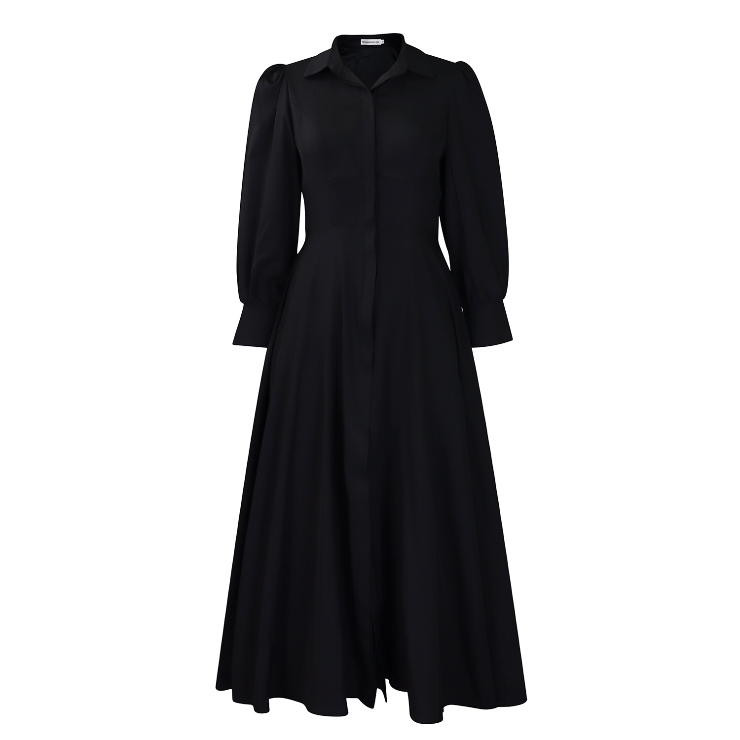 D570 women's elegant long-sleeved long-sleeved shirt dress fashionable solid color mid-length African dress