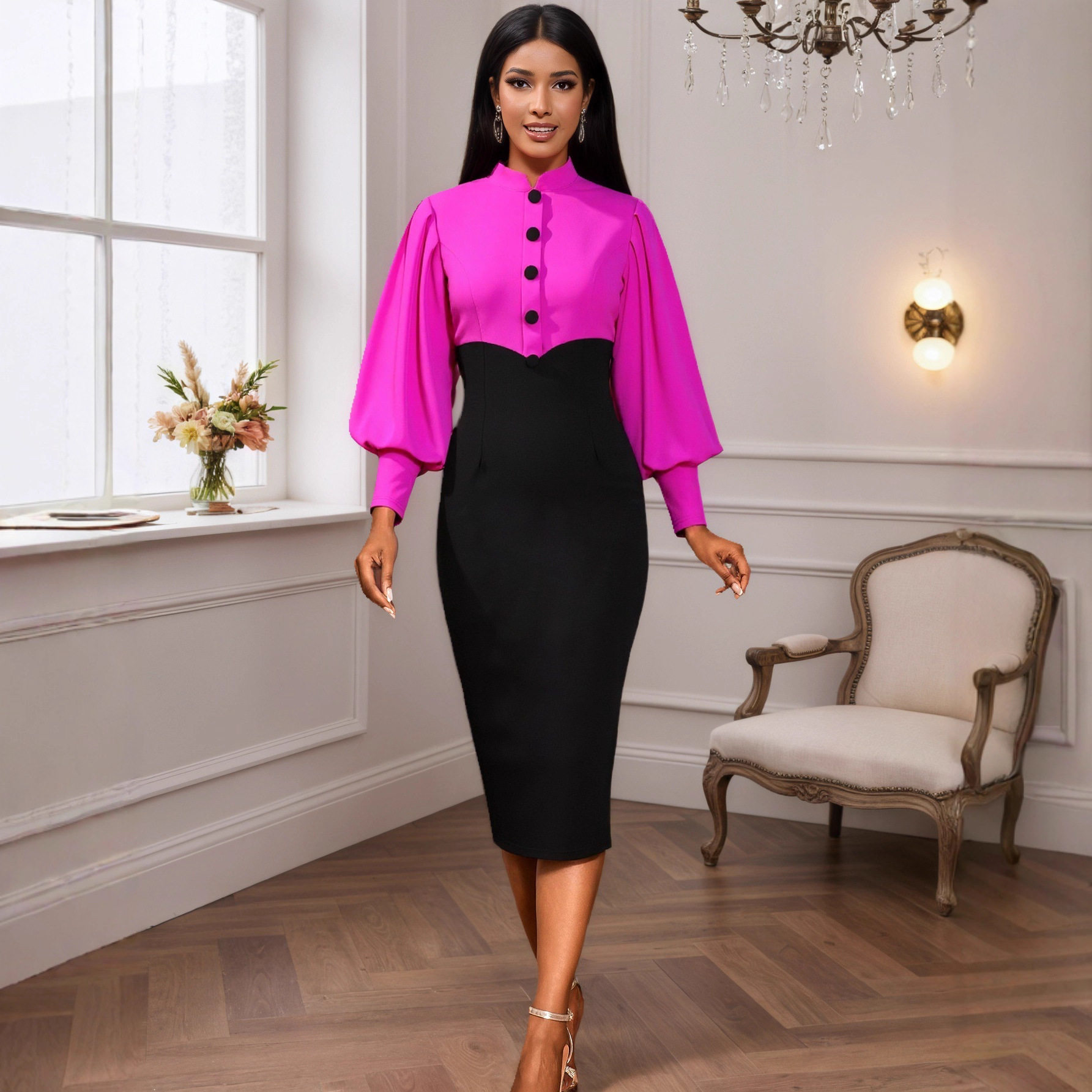 (FREE AIR SHIPPING) elegant mesh beaded dress, three-dimensional flower slit, slim-fitting hip-hugging fishtail party evening dress