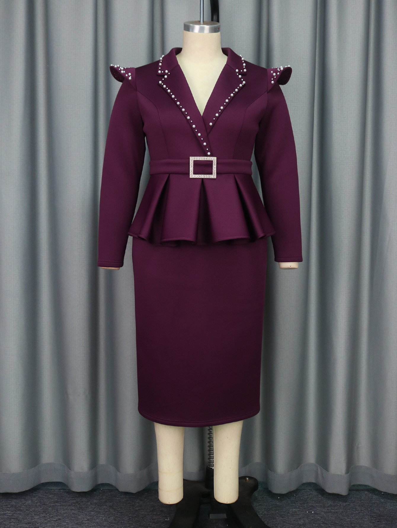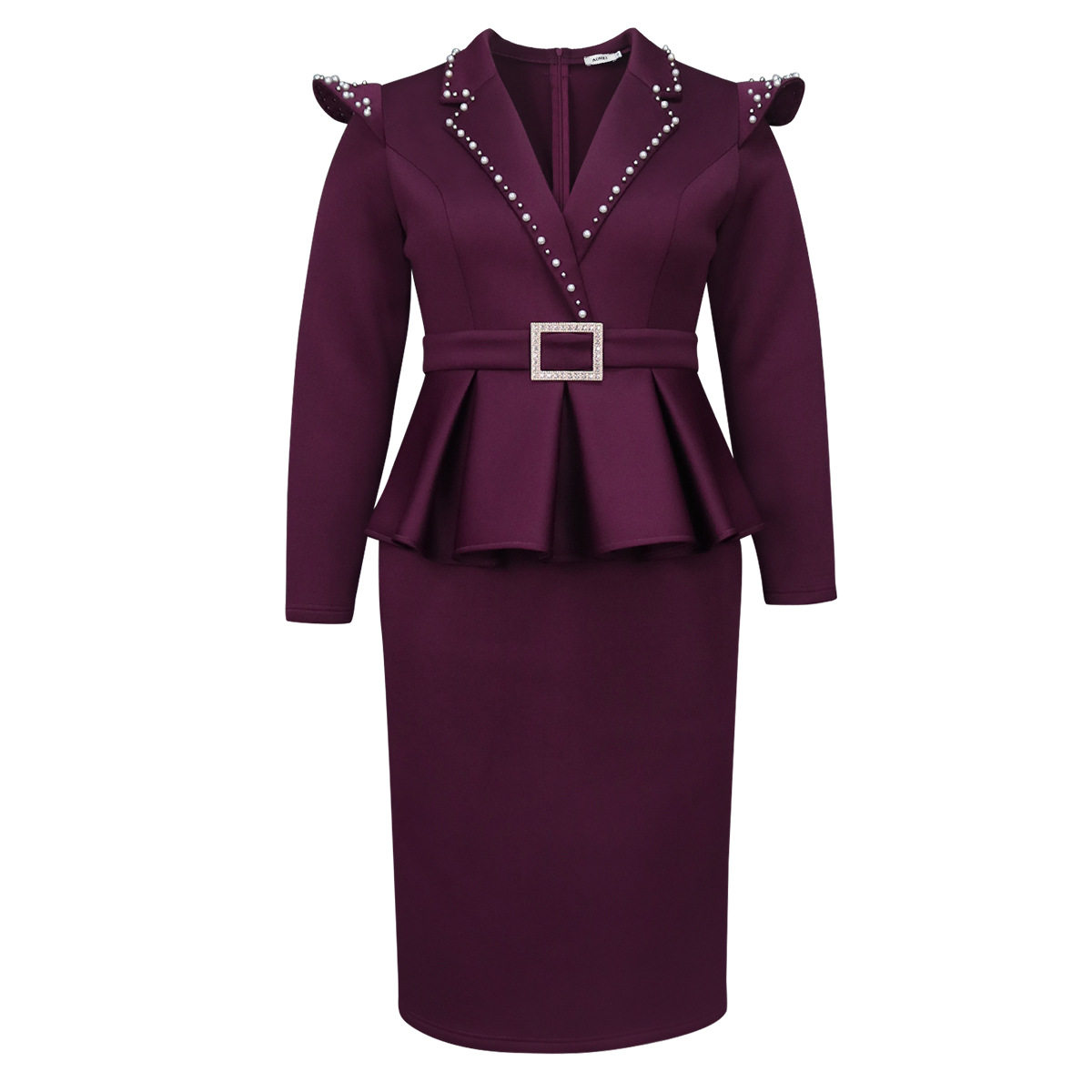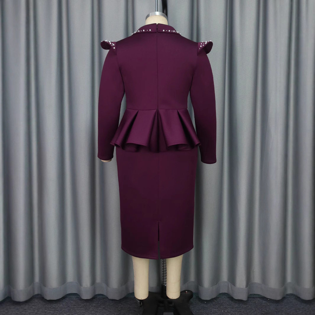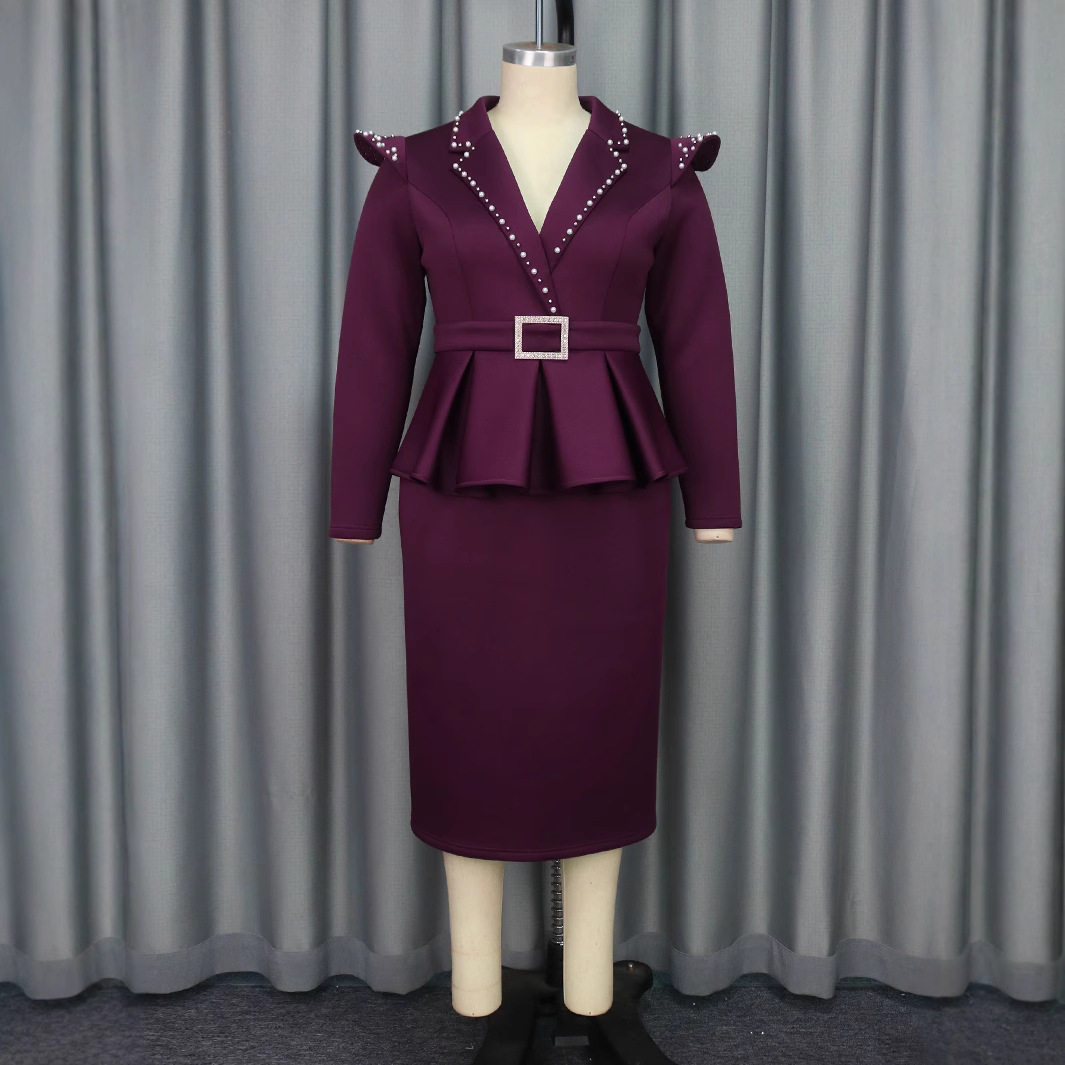Fashionable suit collar cover-up fake two-piece dress Elegant style professional commuting high-waisted dress