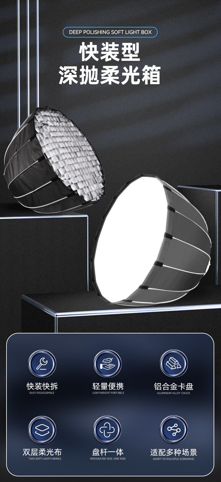 Fast-loading deep throwing 60/70/90/deep parabolic soft light box baorongkou grille lampshade portable light supplement lamp