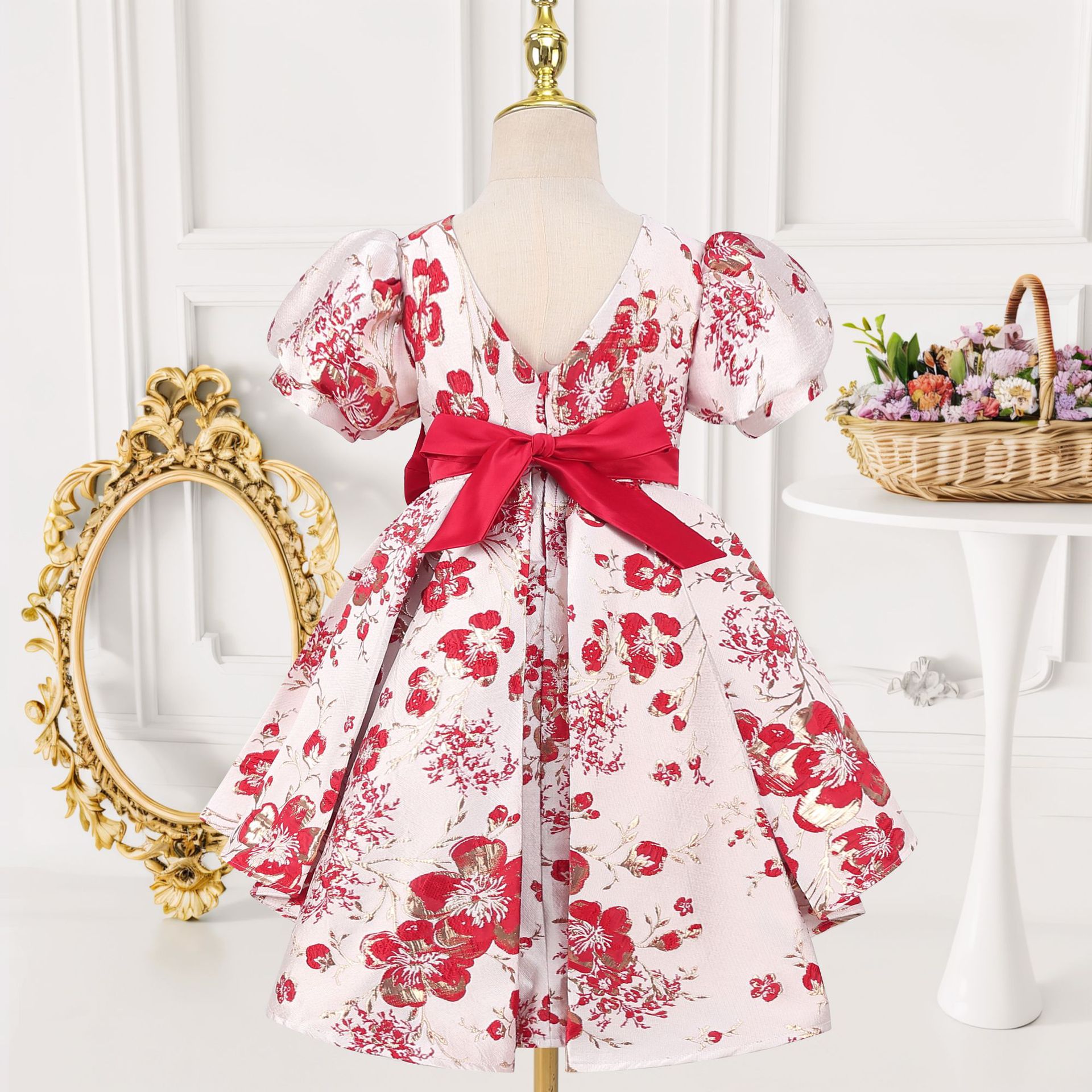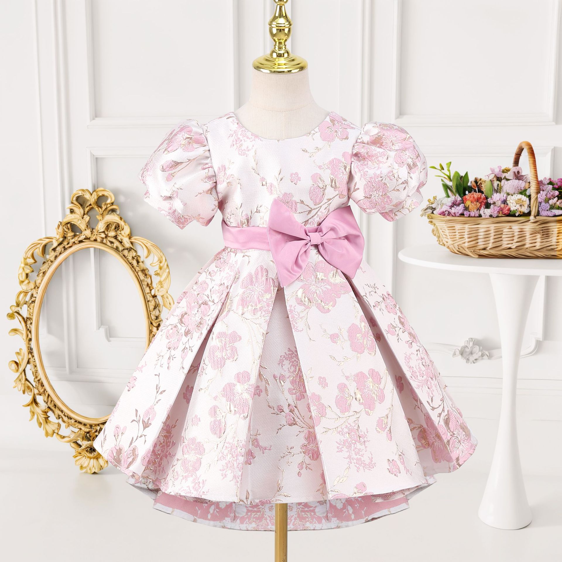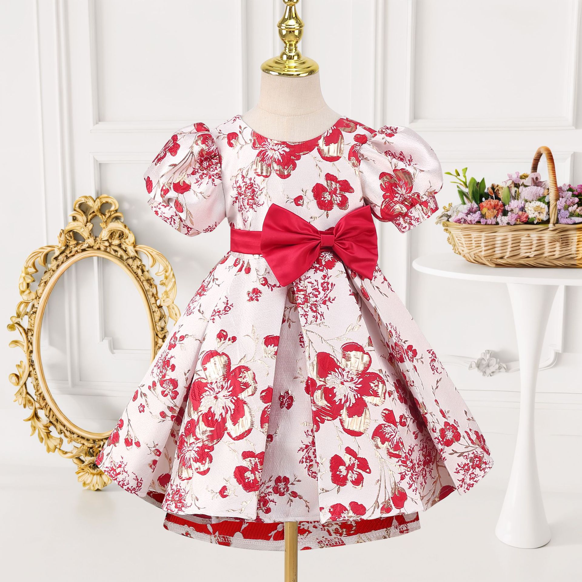 Festival performance clothing printed girls puff sleeve princess dress