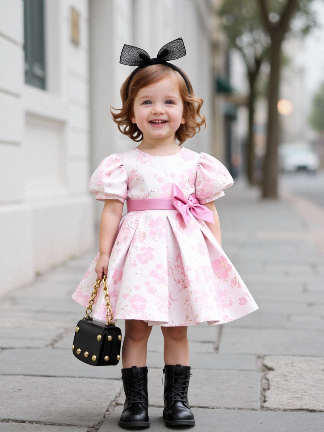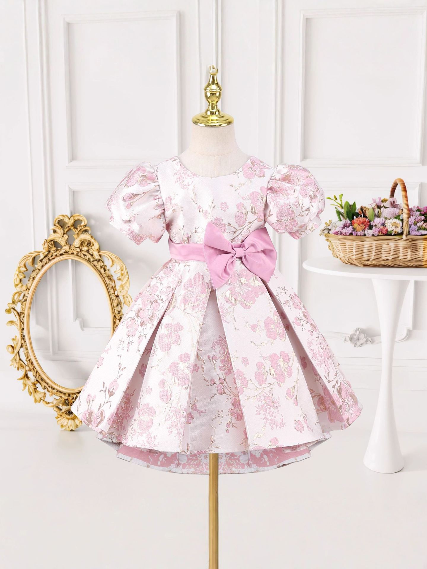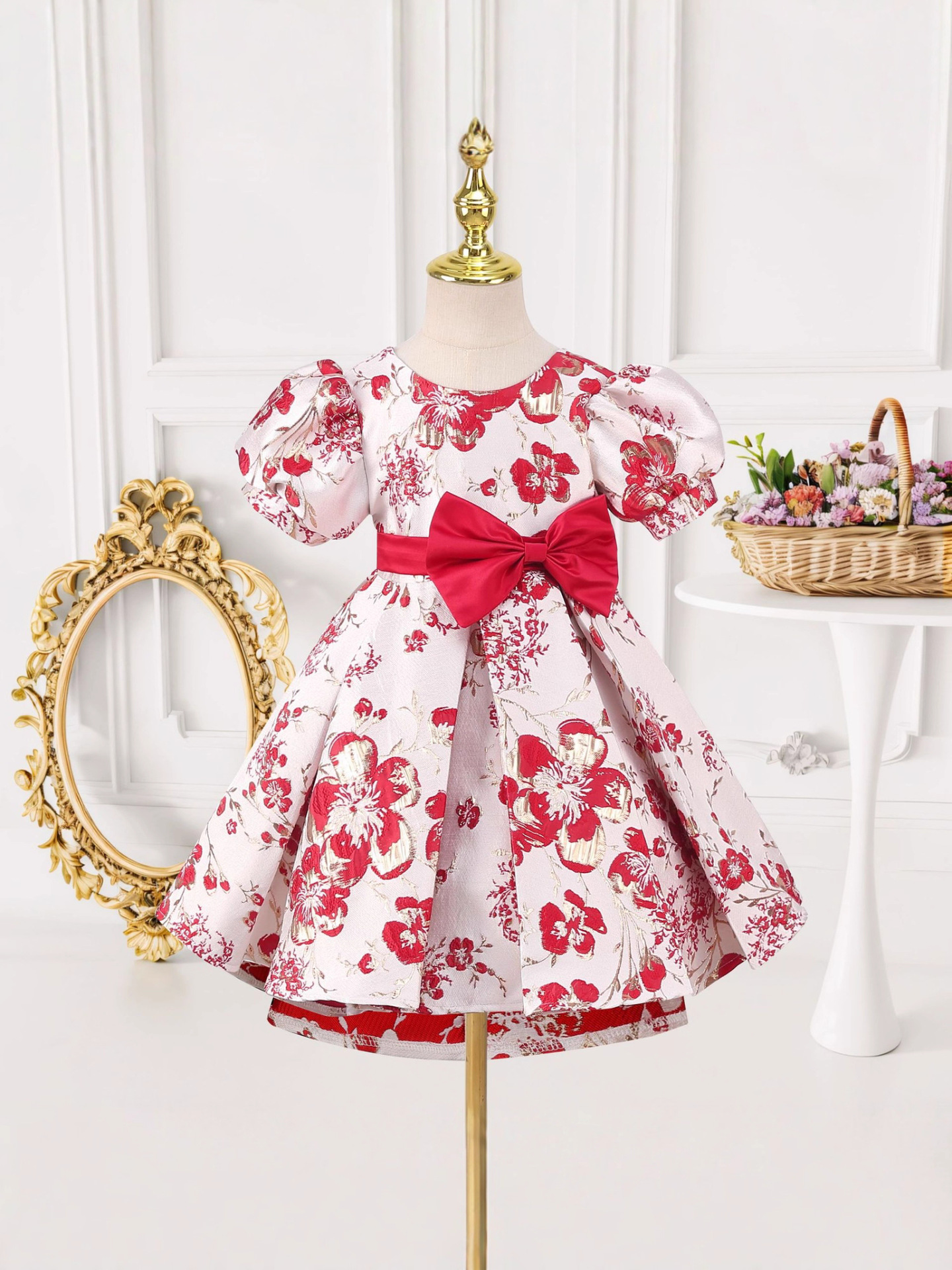 Festival performance clothing printed girls puff sleeve princess dress