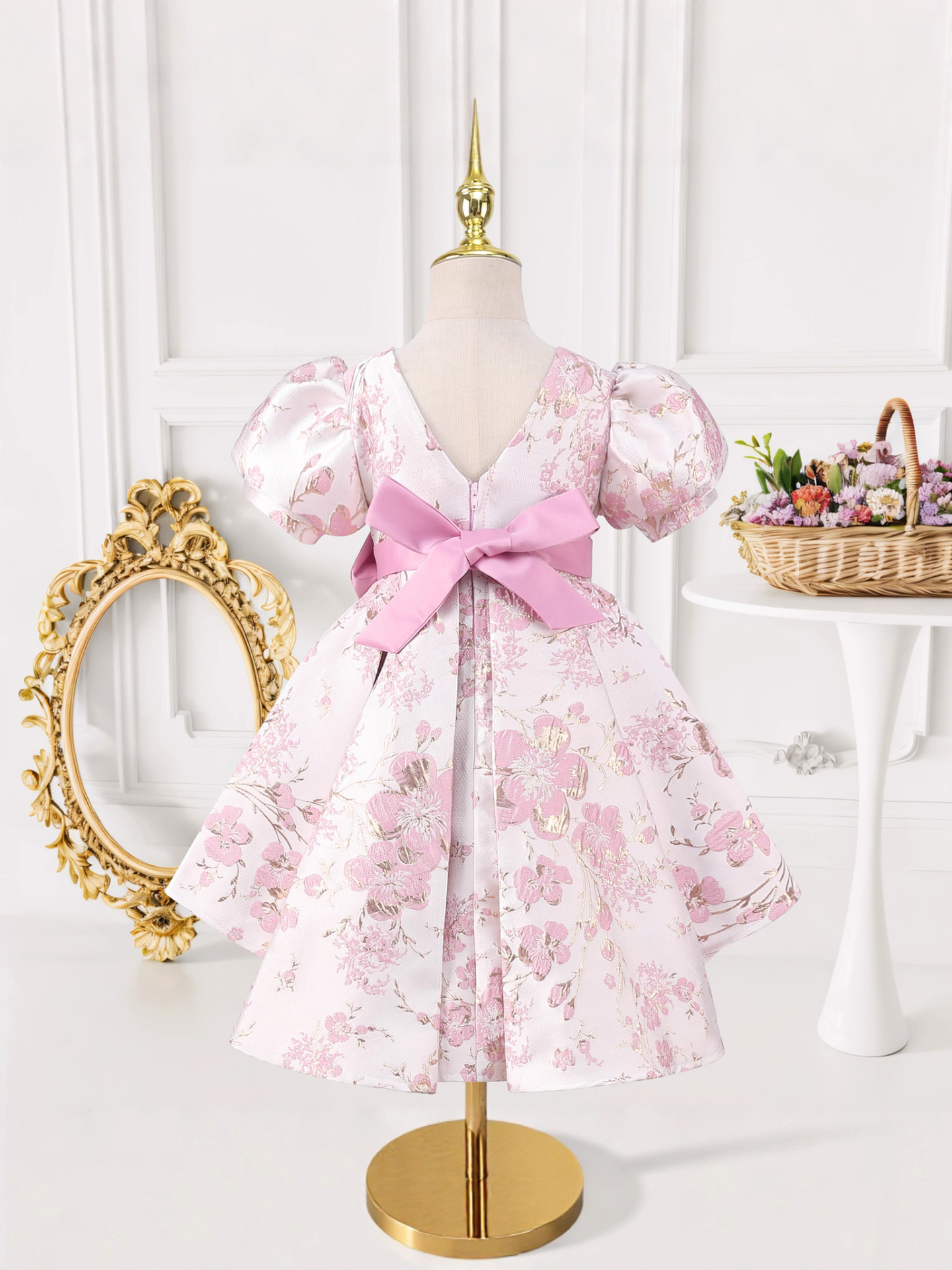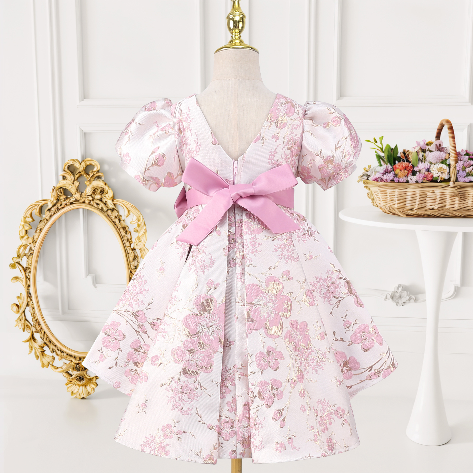 (FREE AIR SHIPPING) festival performance clothing printed girls puff sleeve princess dress