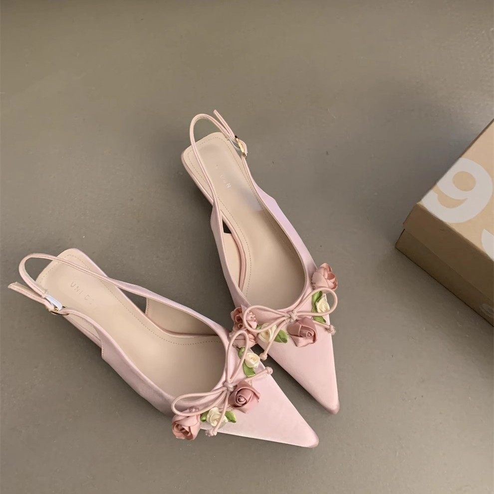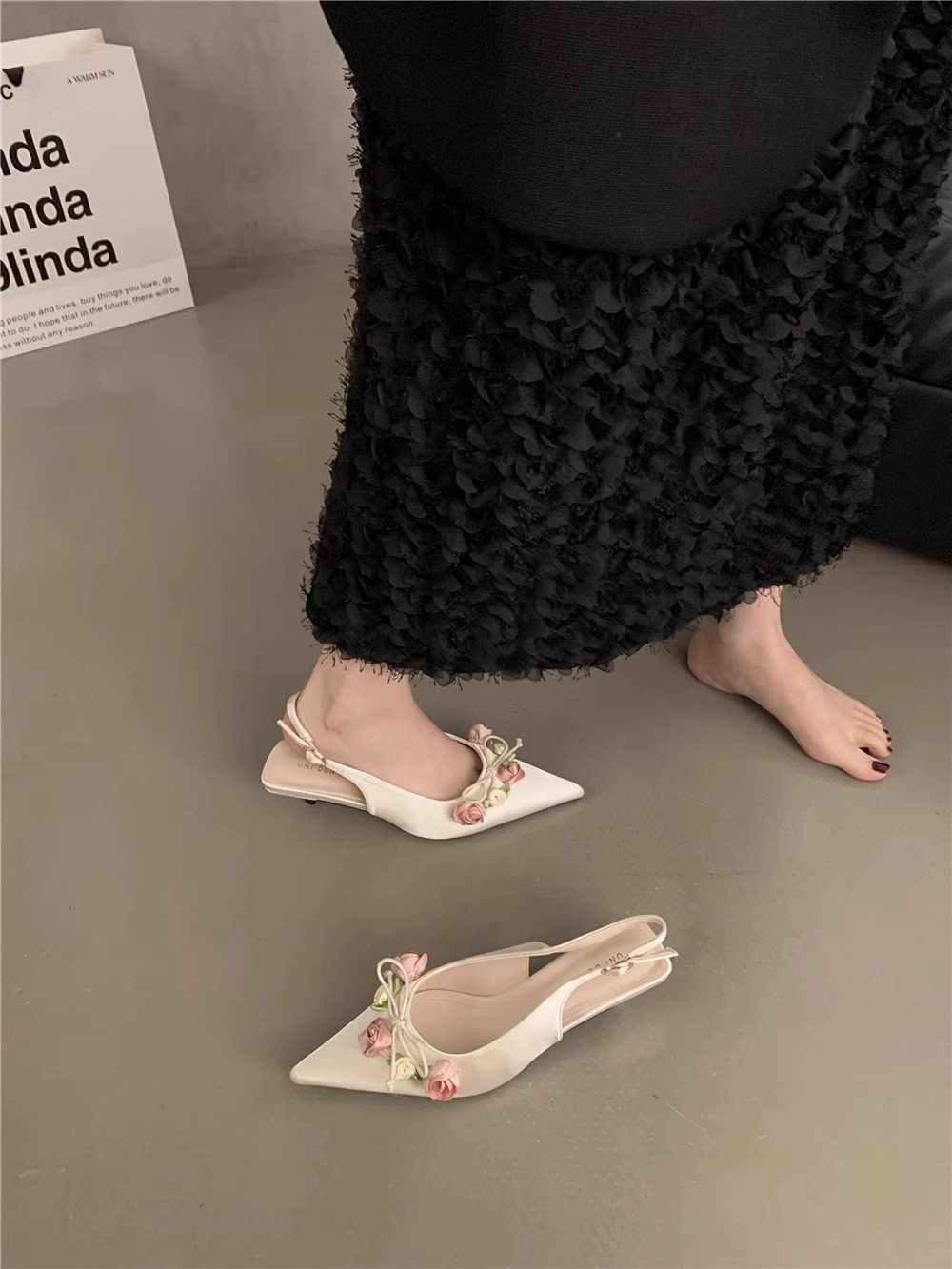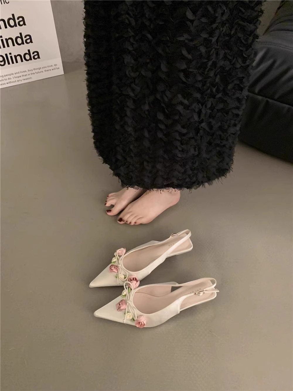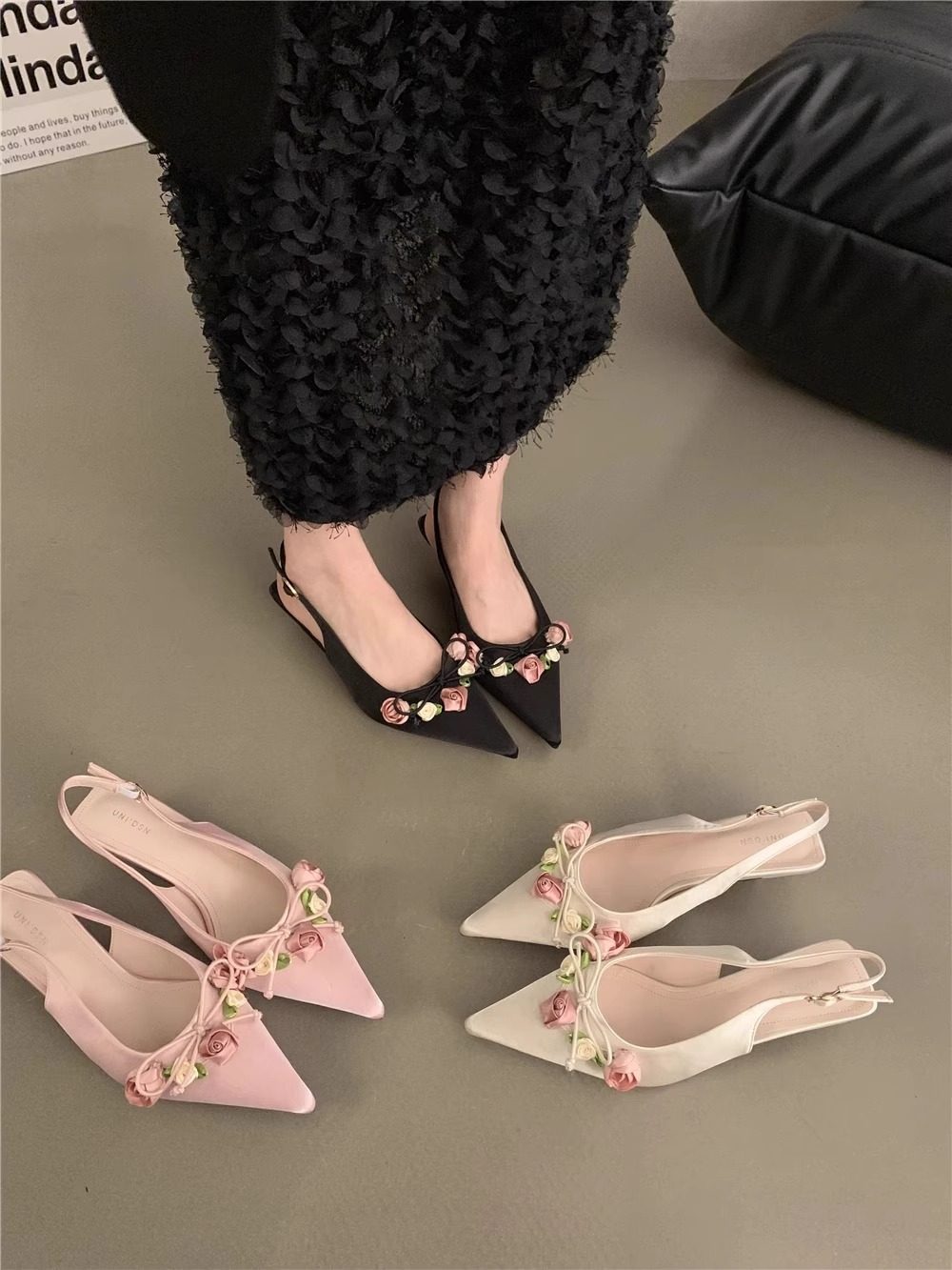 (FREE AIR SHIPPING) Floral pointed-toe low heels