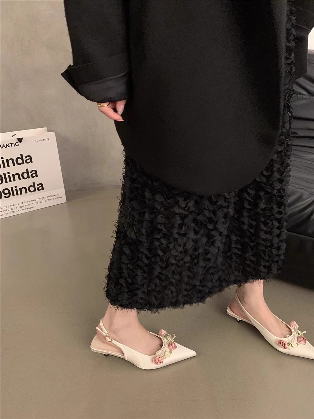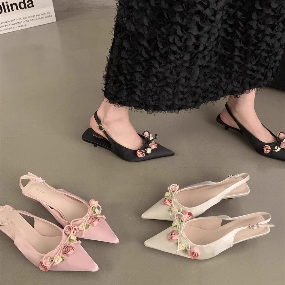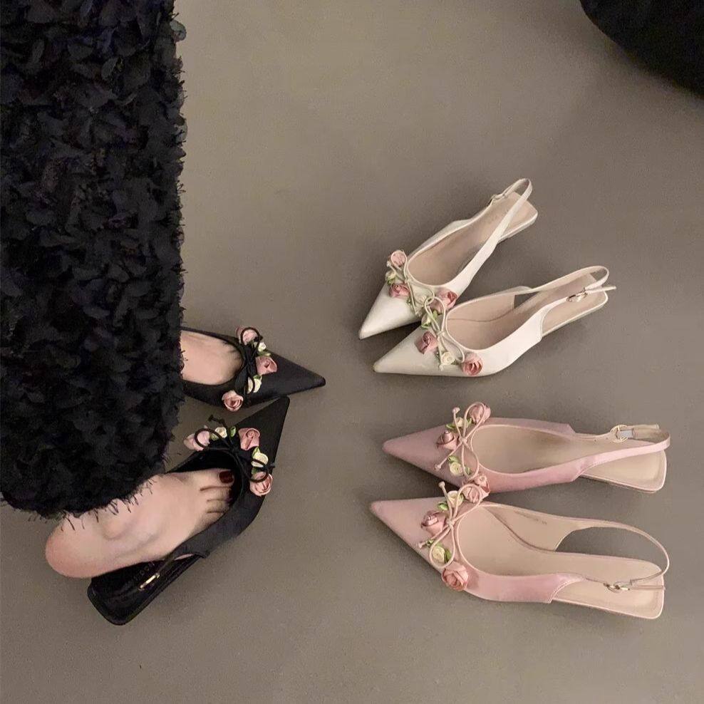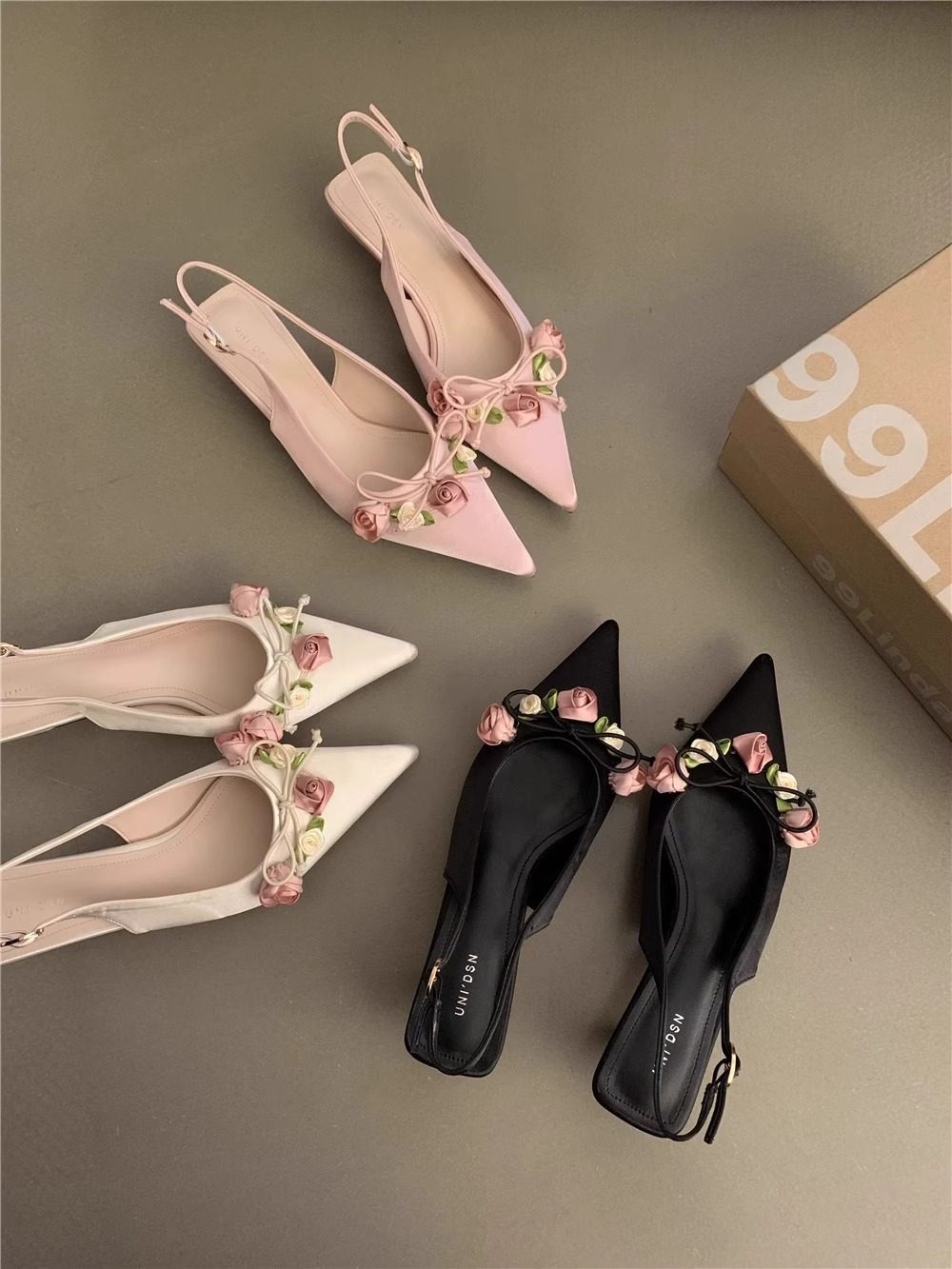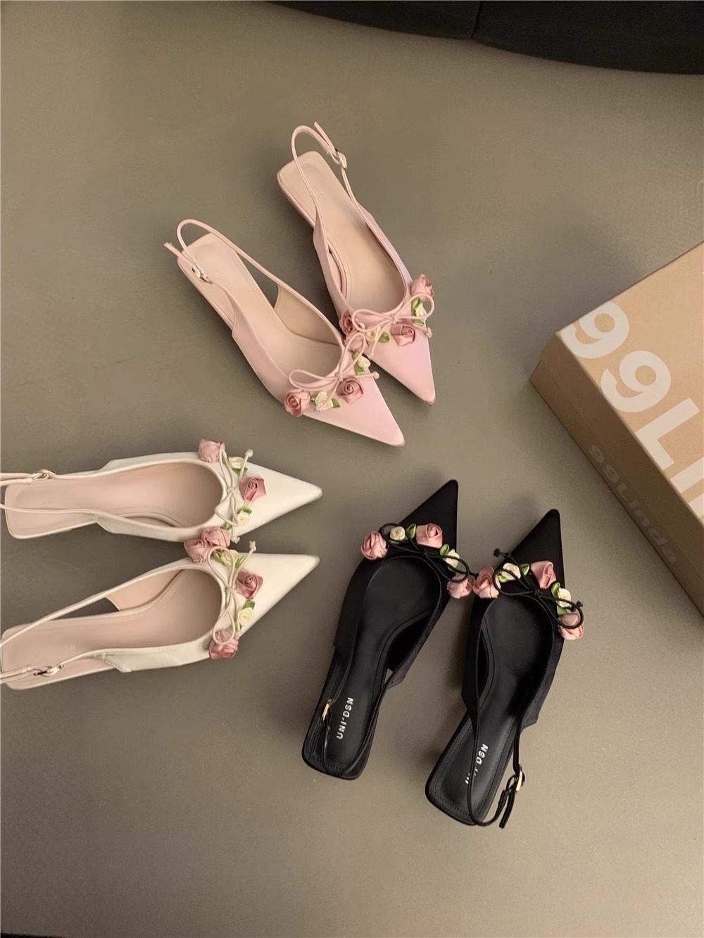 (FREE AIR SHIPPING) Floral pointed-toe low heels