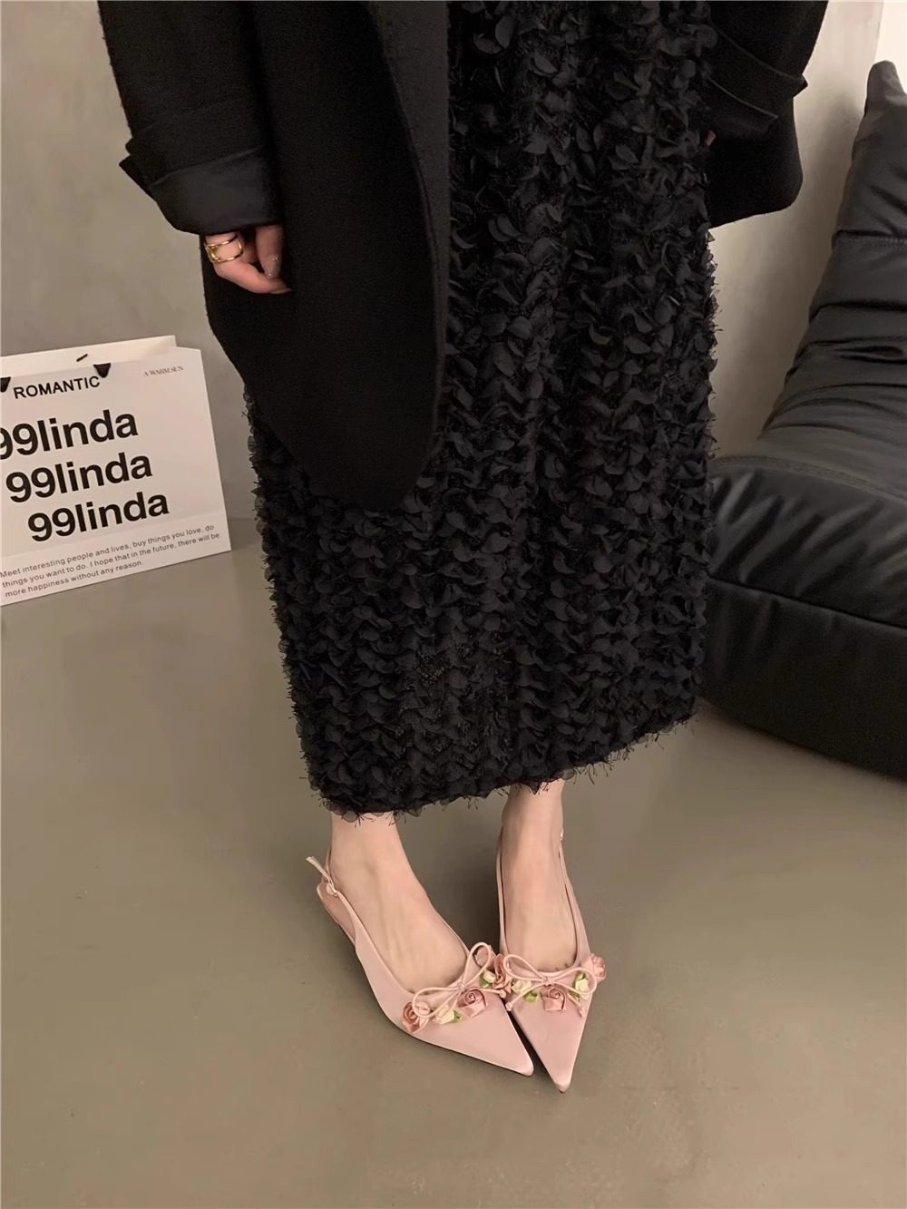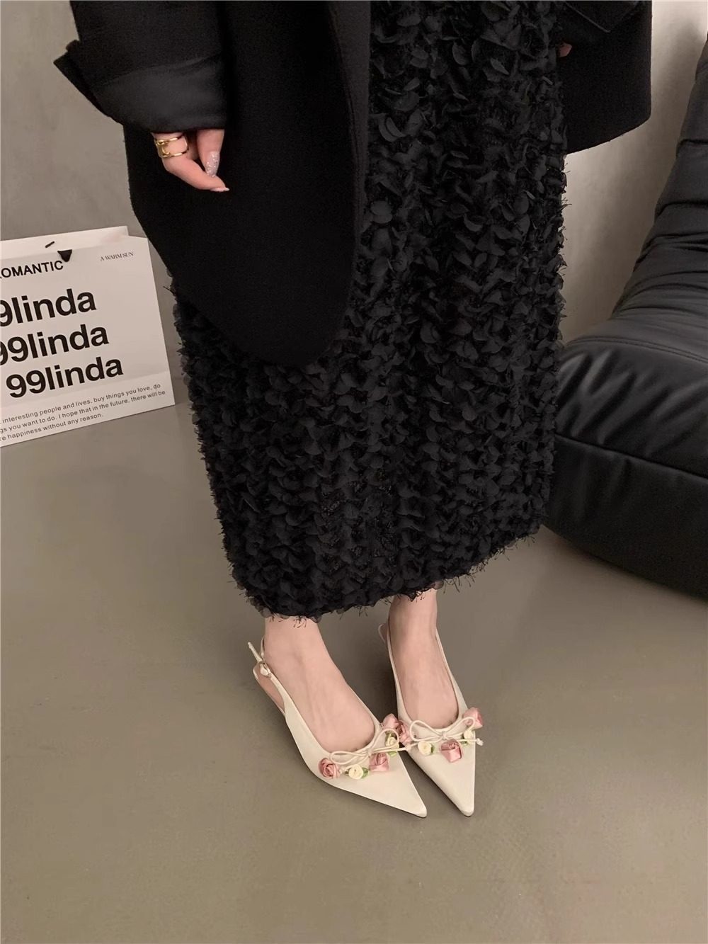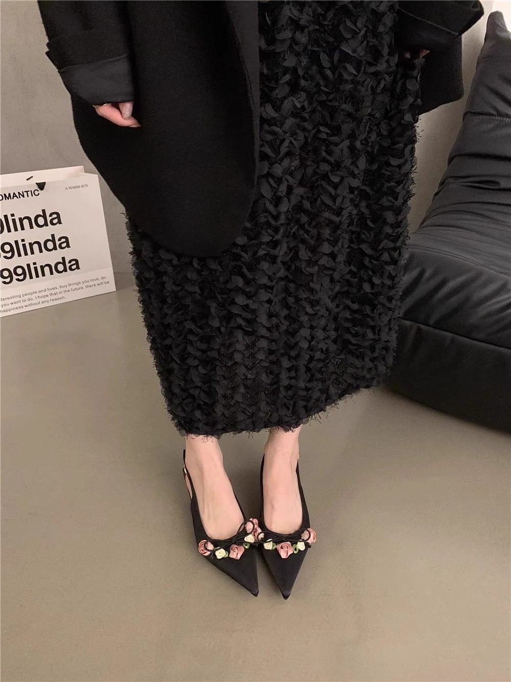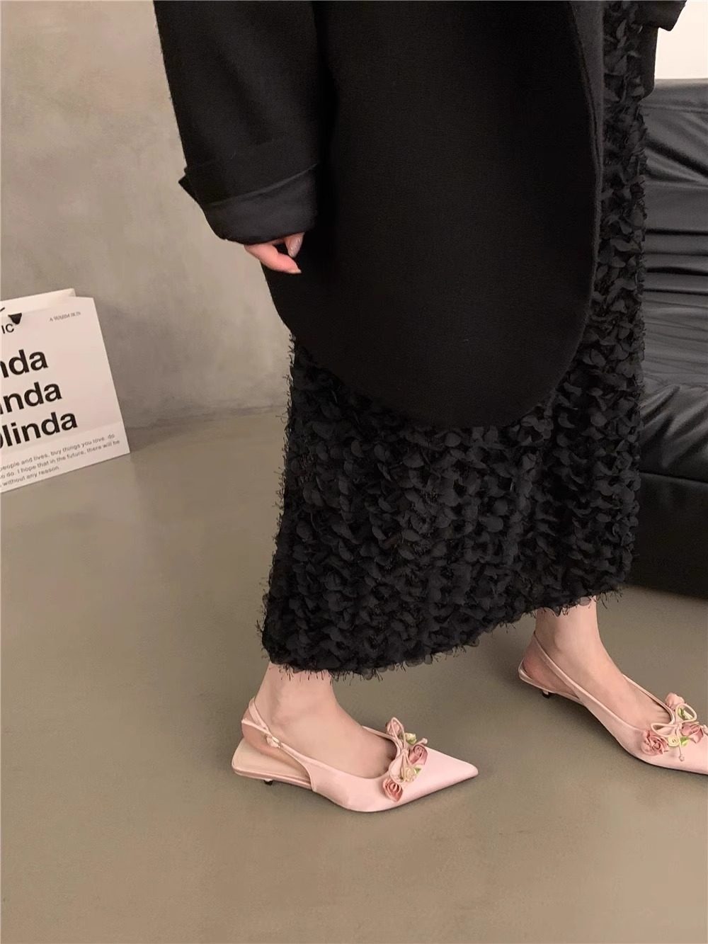 (FREE AIR SHIPPING) Floral pointed-toe low heels
