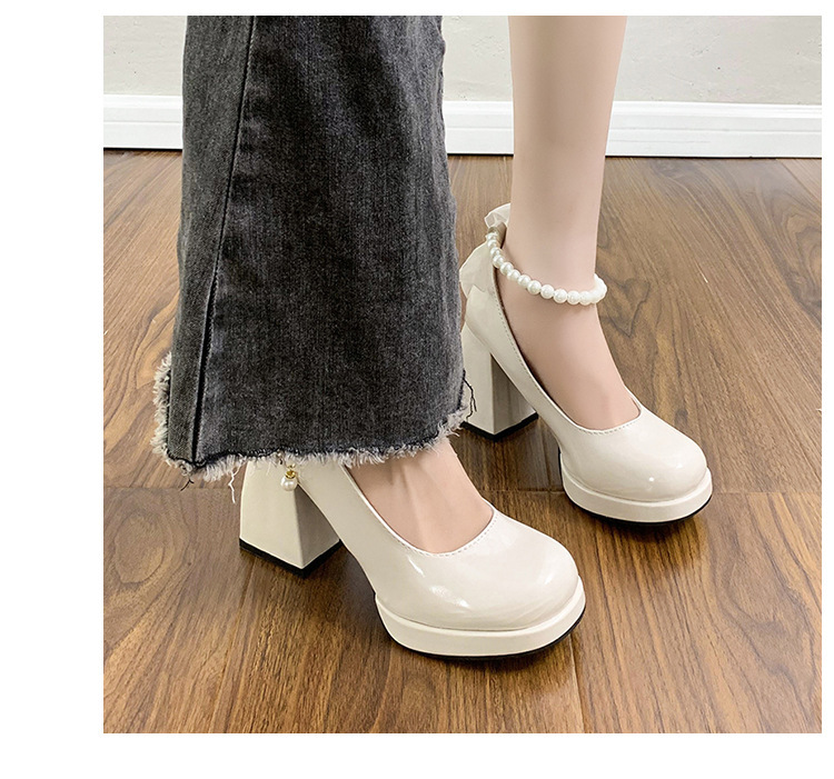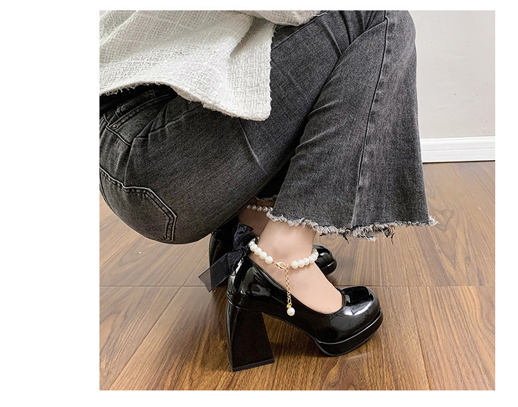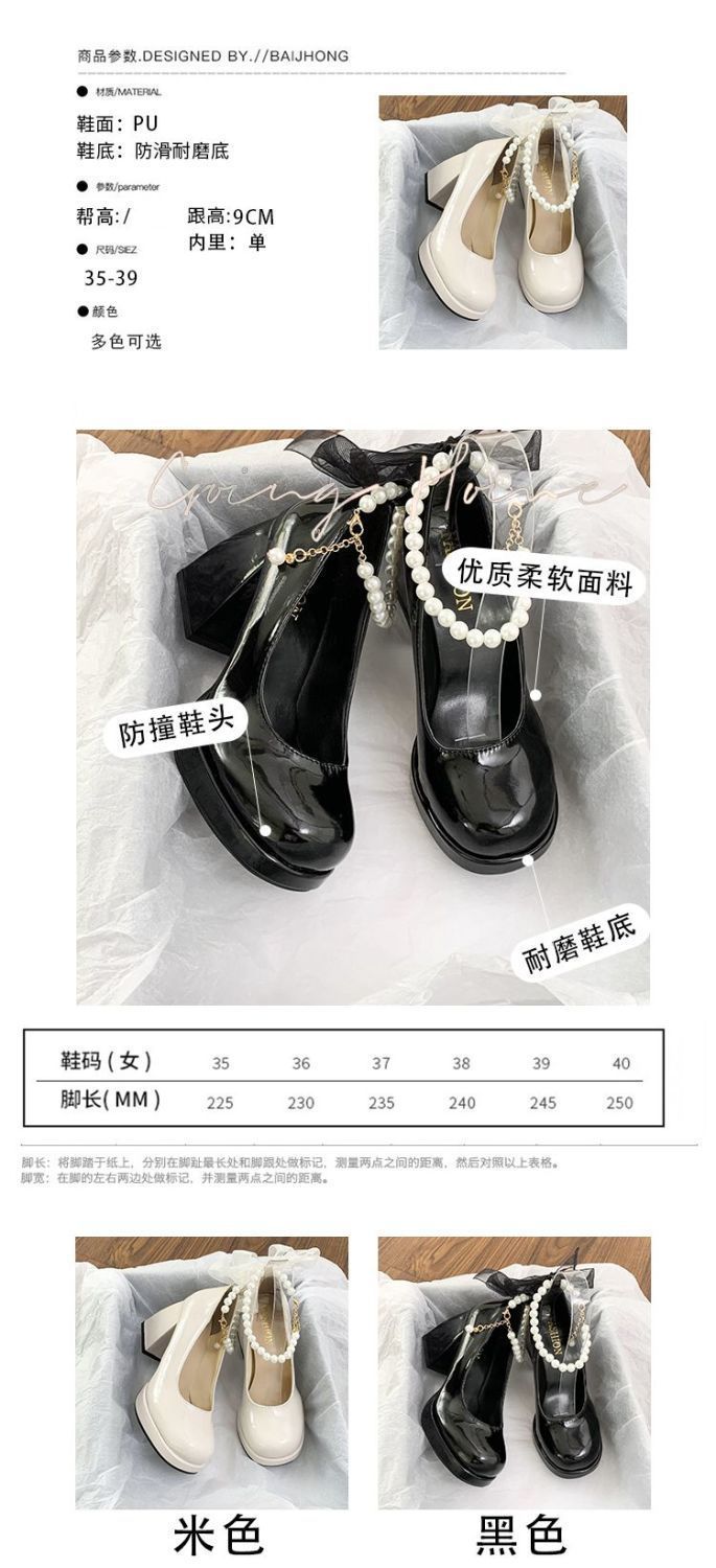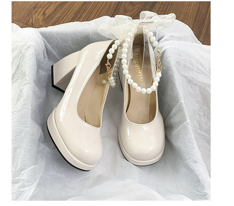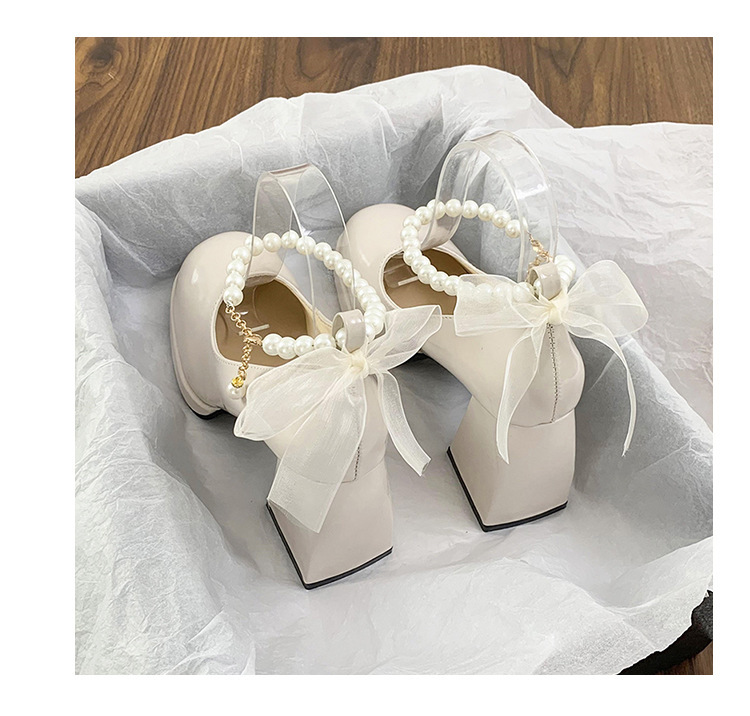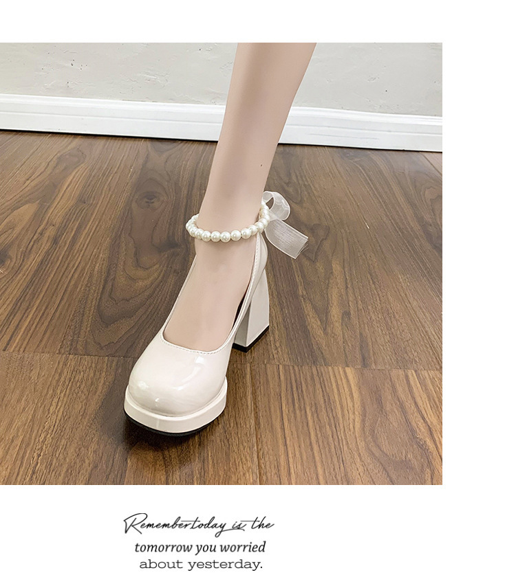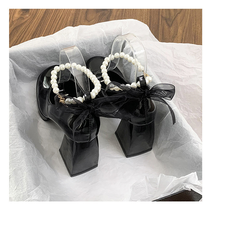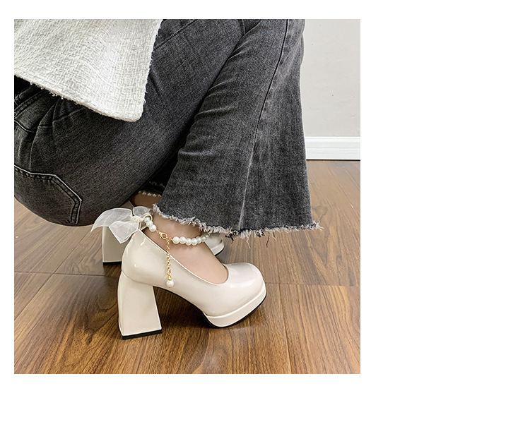 French pearl fairy style bow thick-soled waterproof platform Mary Jane high heels women's thick heel single shoes bridesmaid shoes