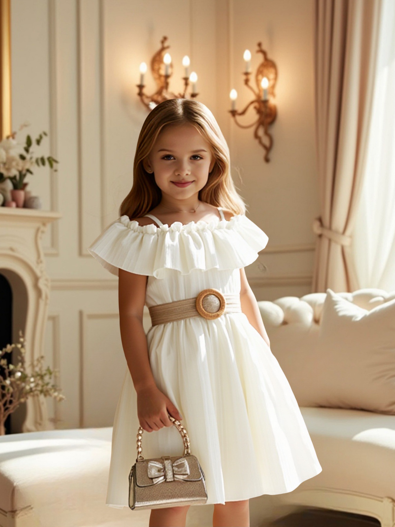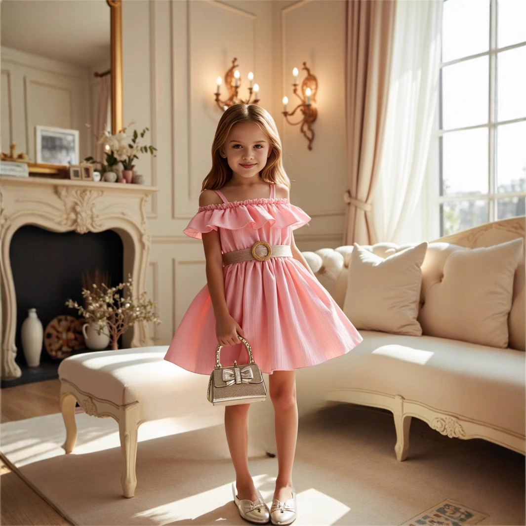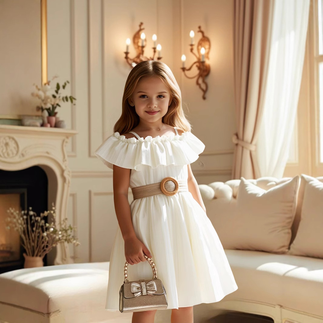 Girls' dress summer lace princess dress big children's style one shoulder style