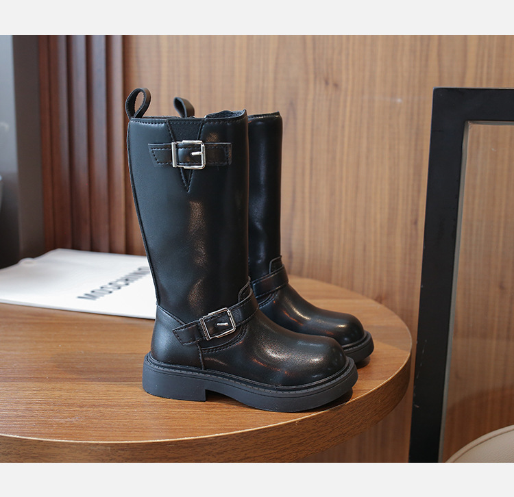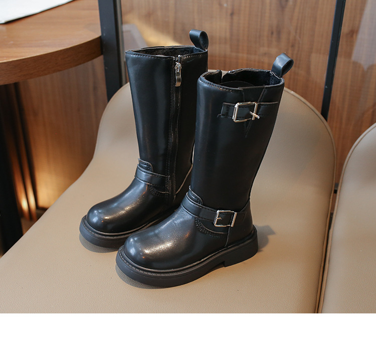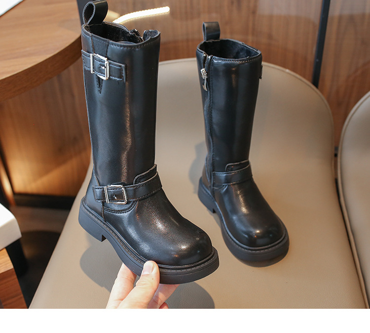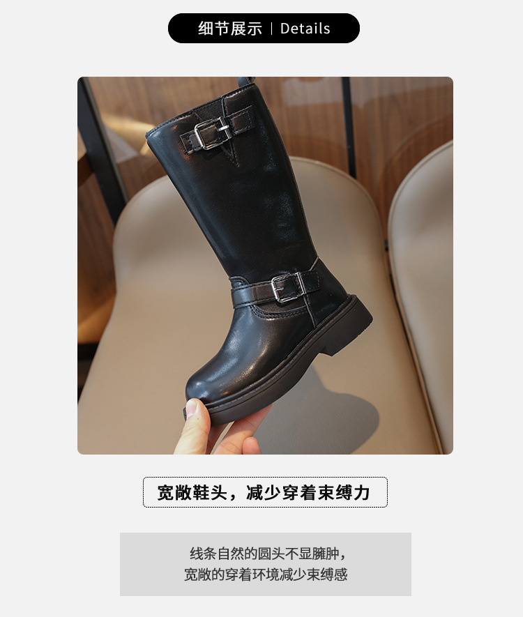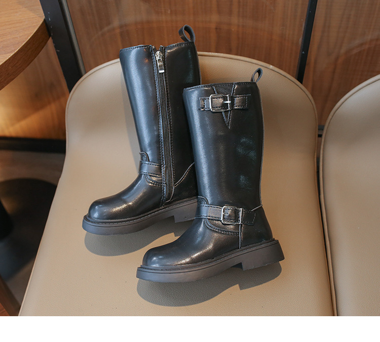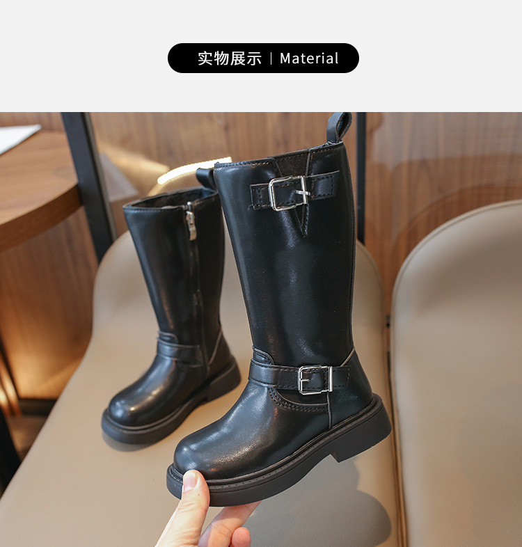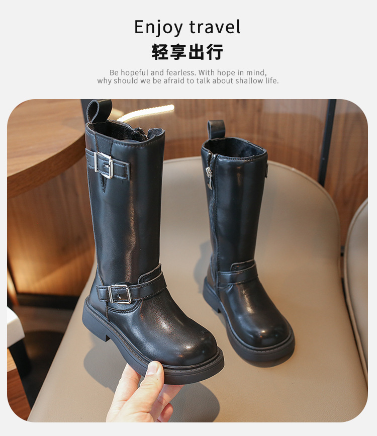(FREE SEA SHIPPING) Girls' Shoes, Kidsren's Boots, Autumn and Winter New Style, Medium and Large Kidsren's Fashion Boots, Single Boots, Little Girls' High Leather Boots