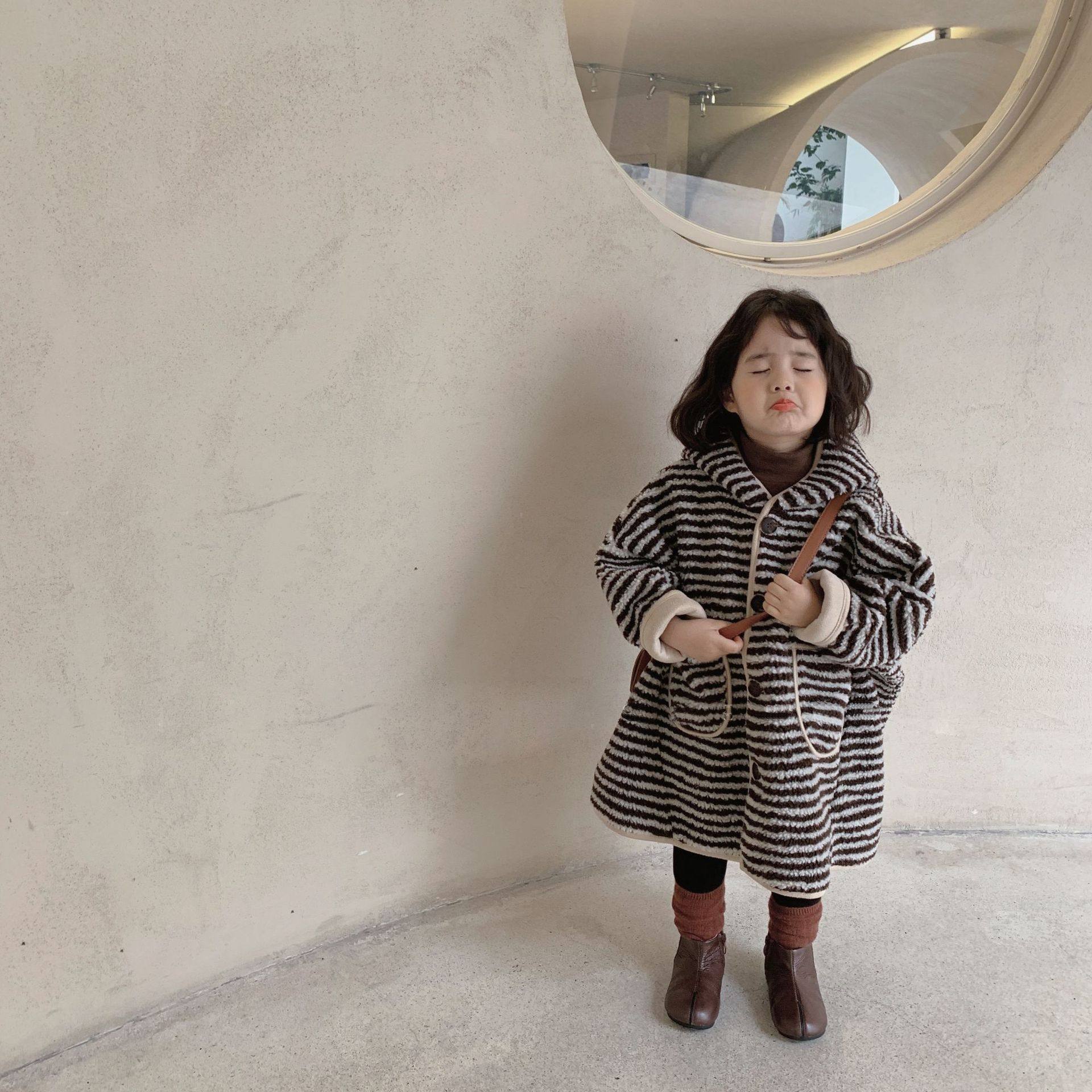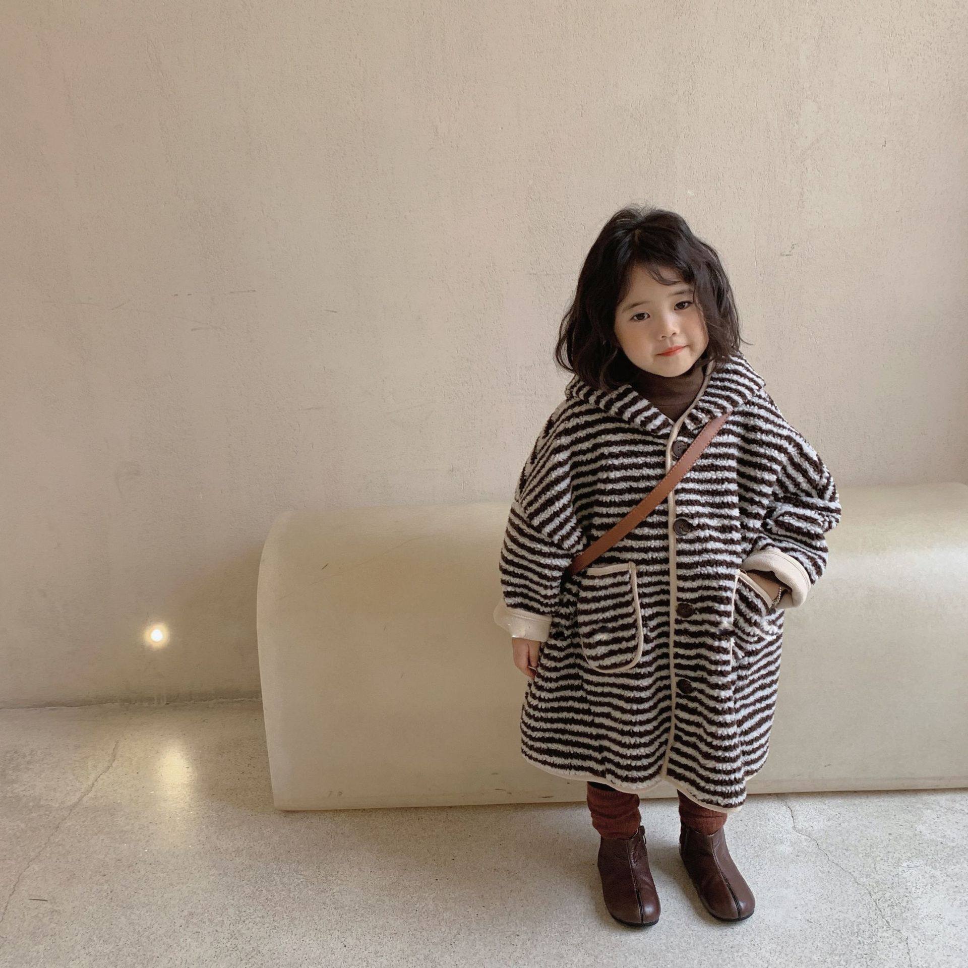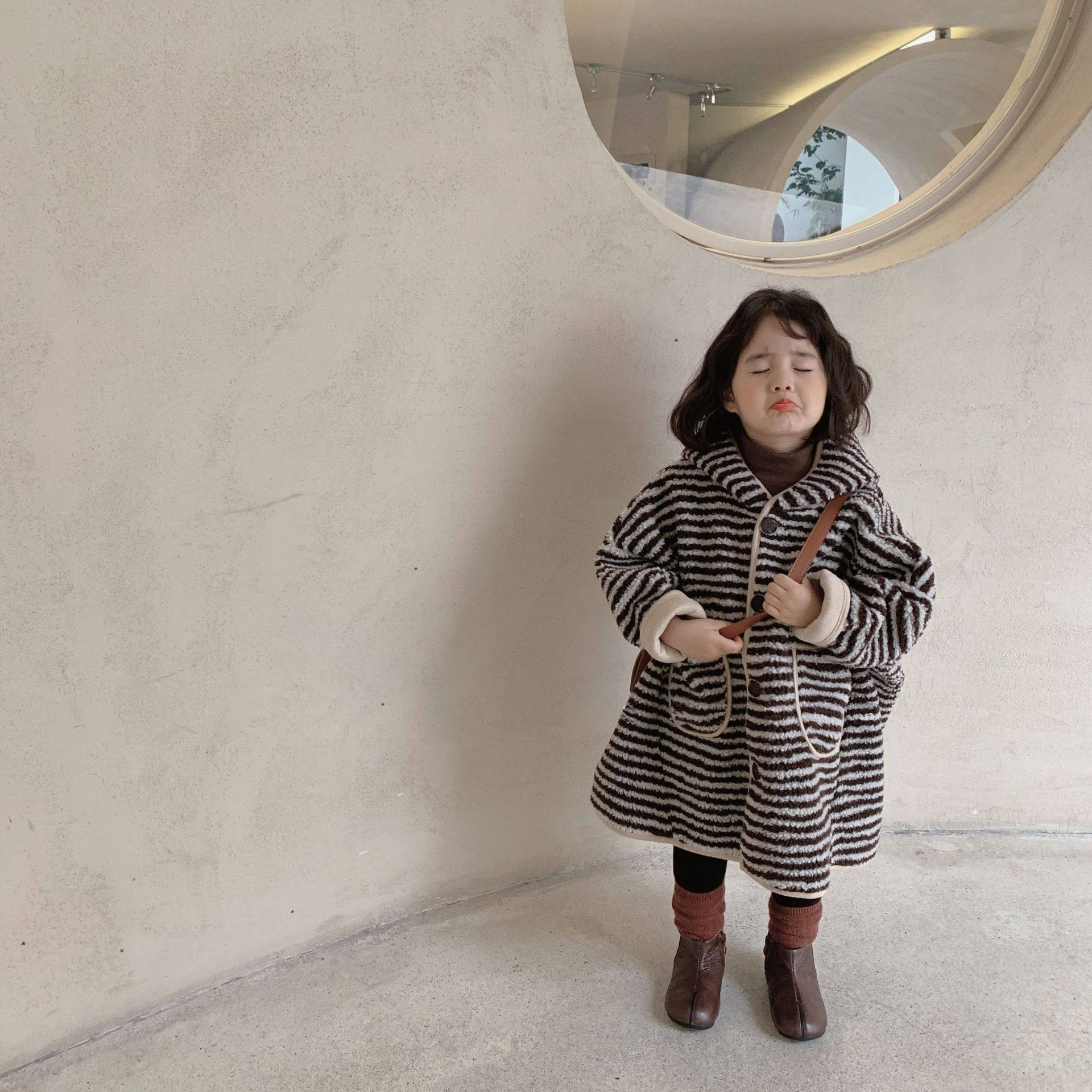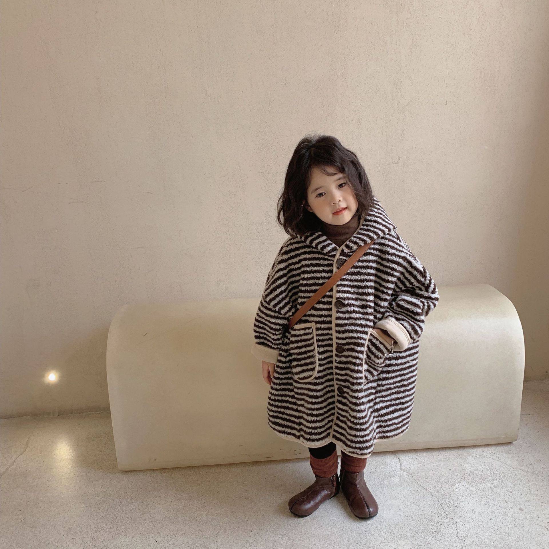 (FREE AIR SHIPPING) Girls thickened coat autumn and winter mid-length hooded top fur coat 3-8 years old children's clothing