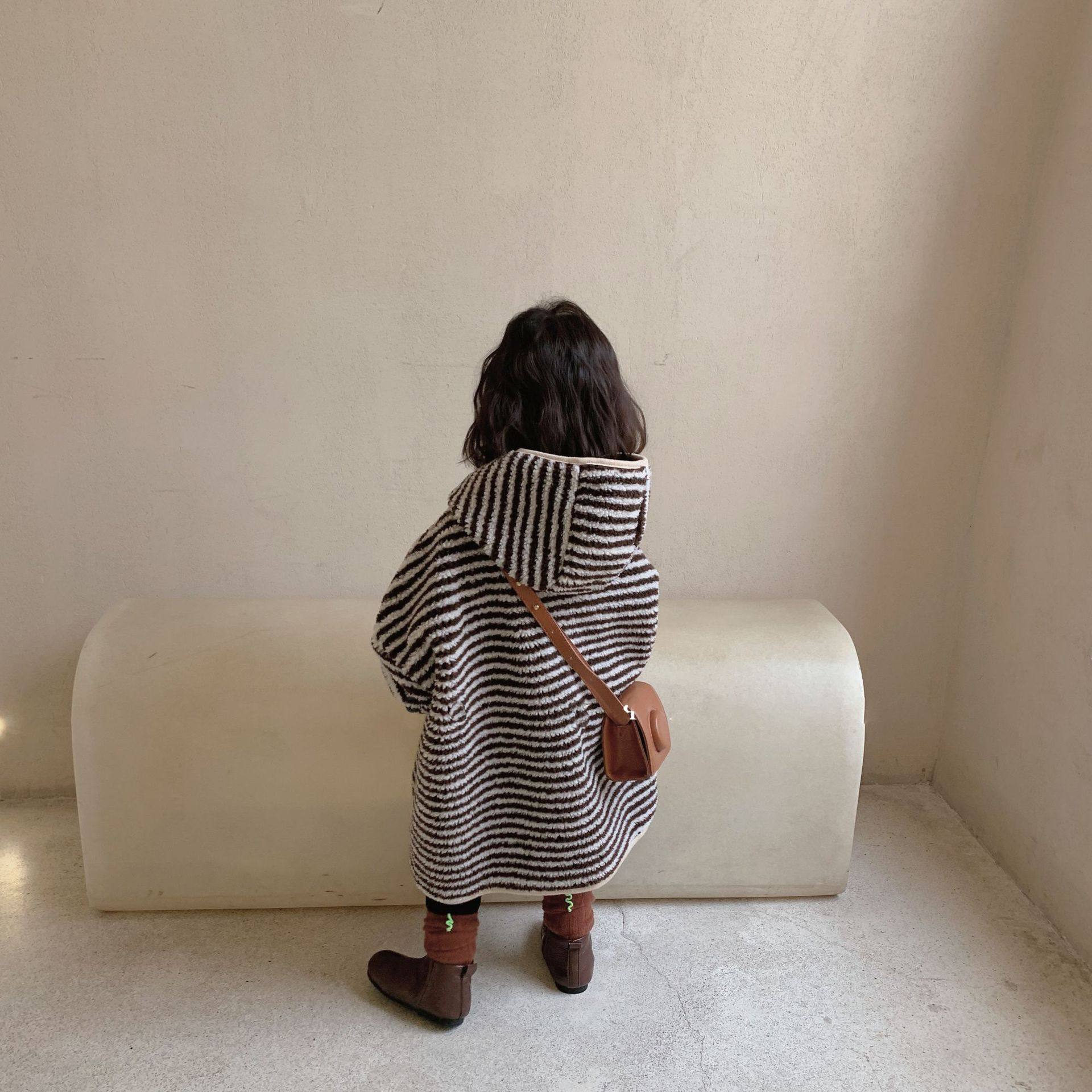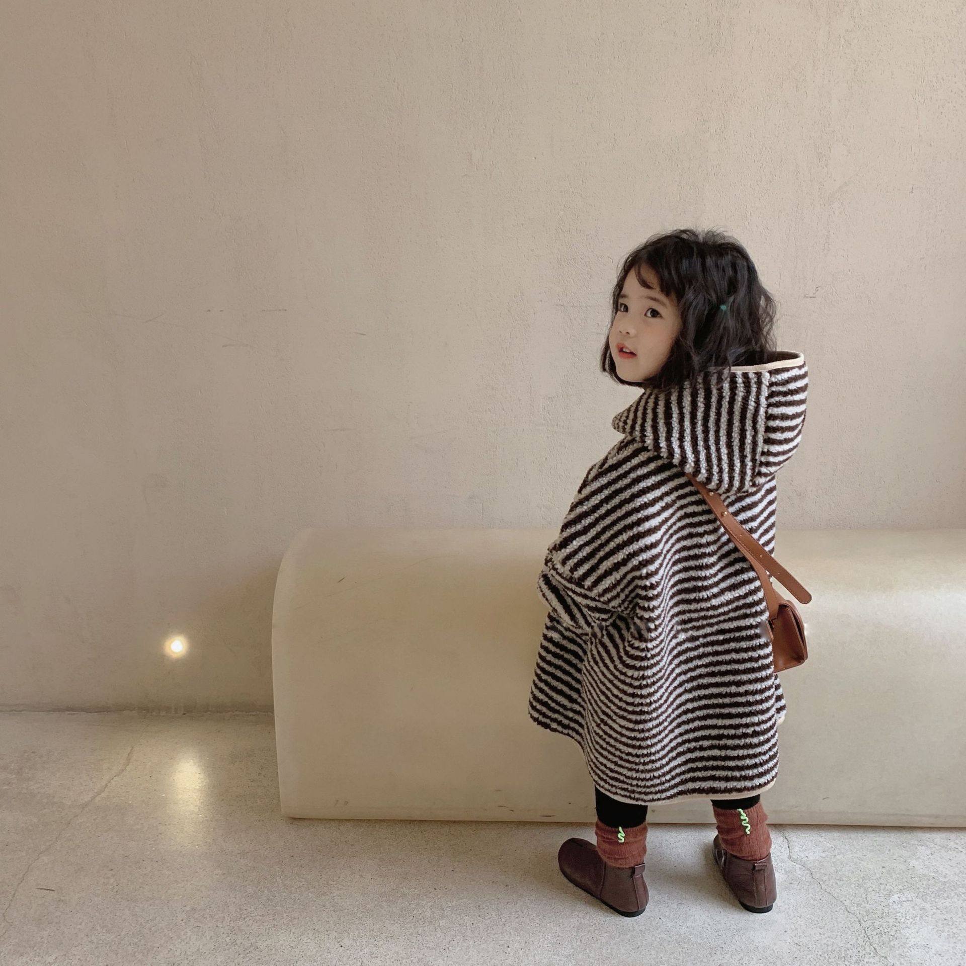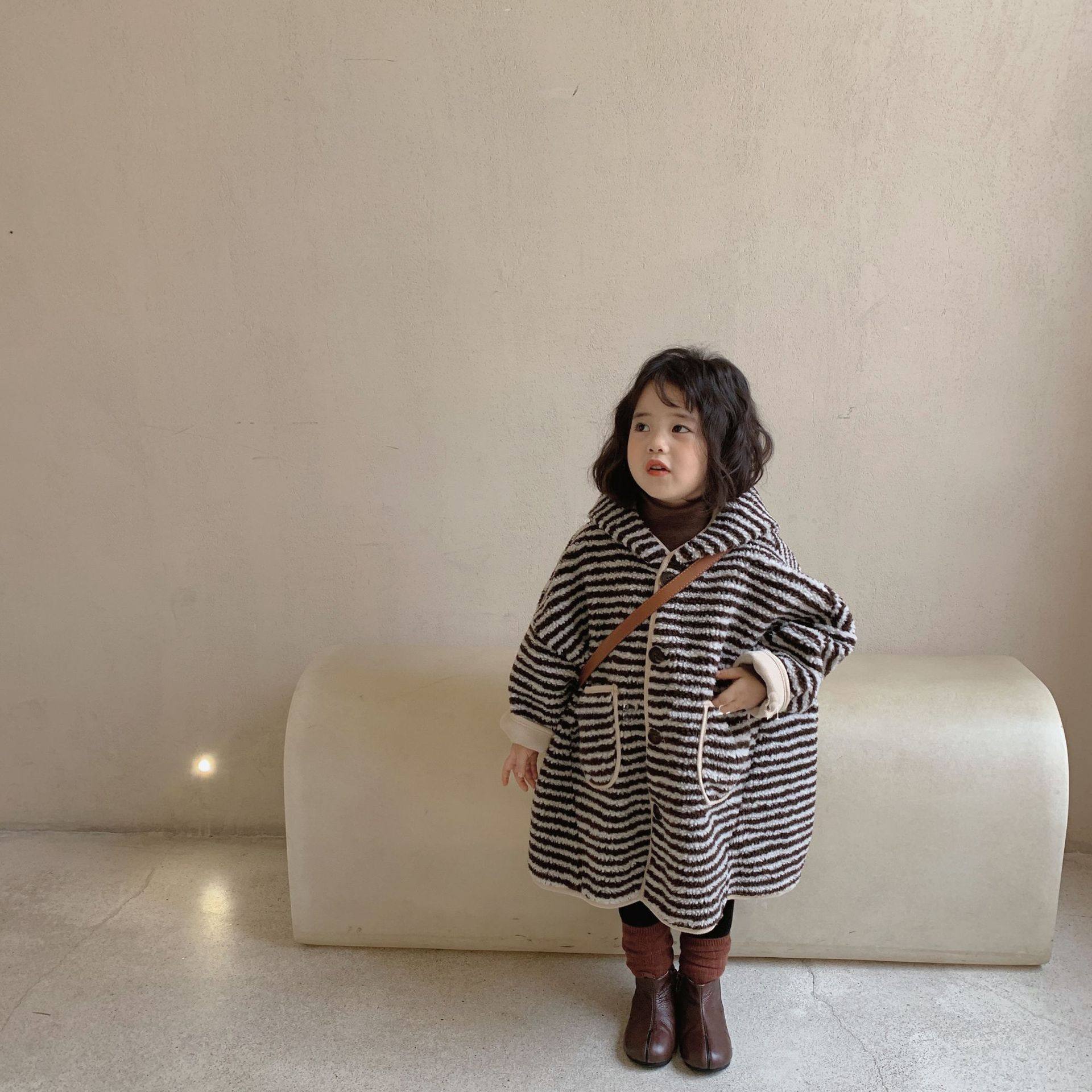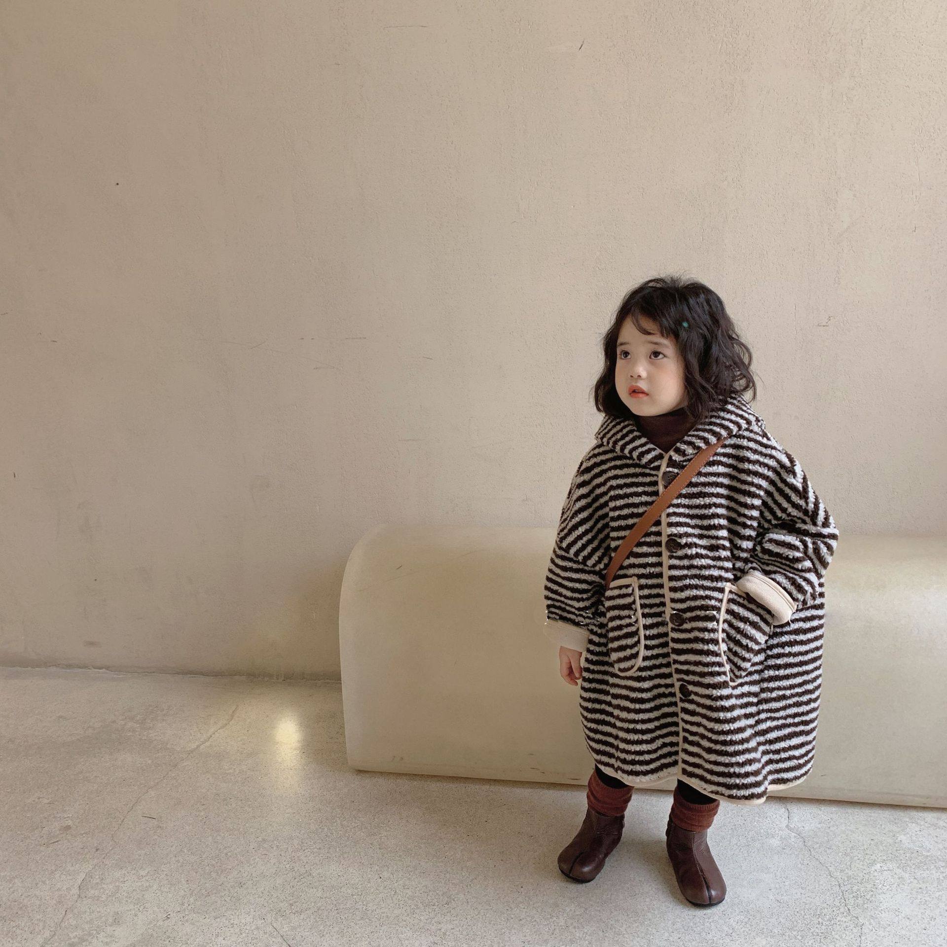 (FREE AIR SHIPPING) Girls thickened coat autumn and winter mid-length hooded top fur coat 3-8 years old children's clothing