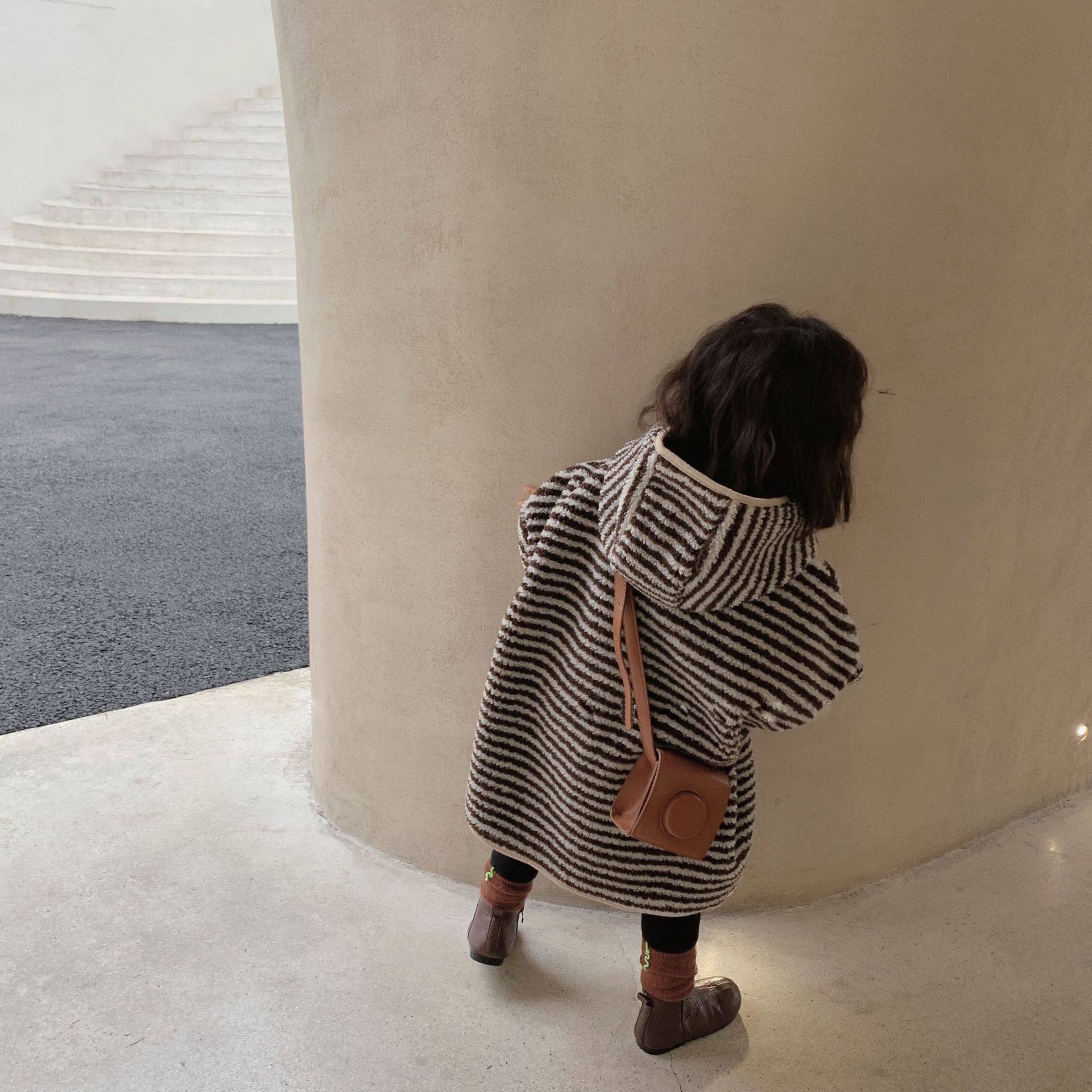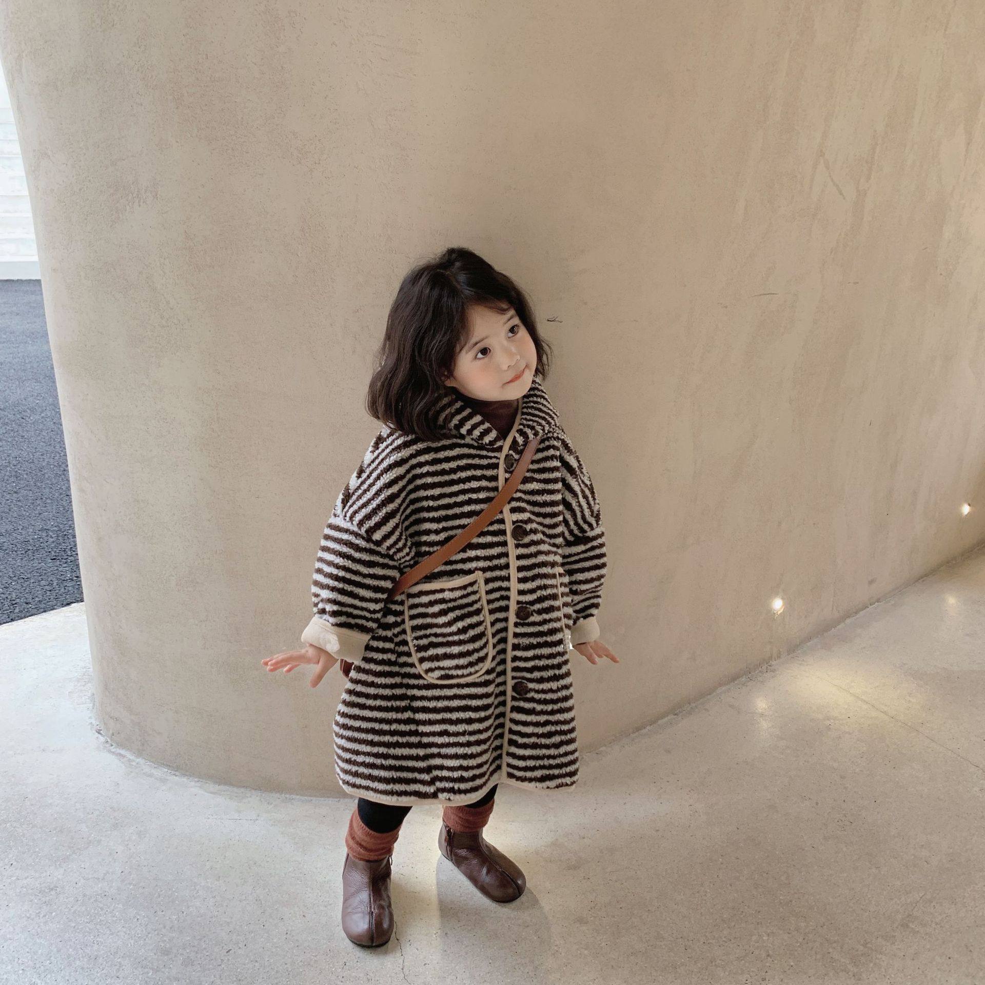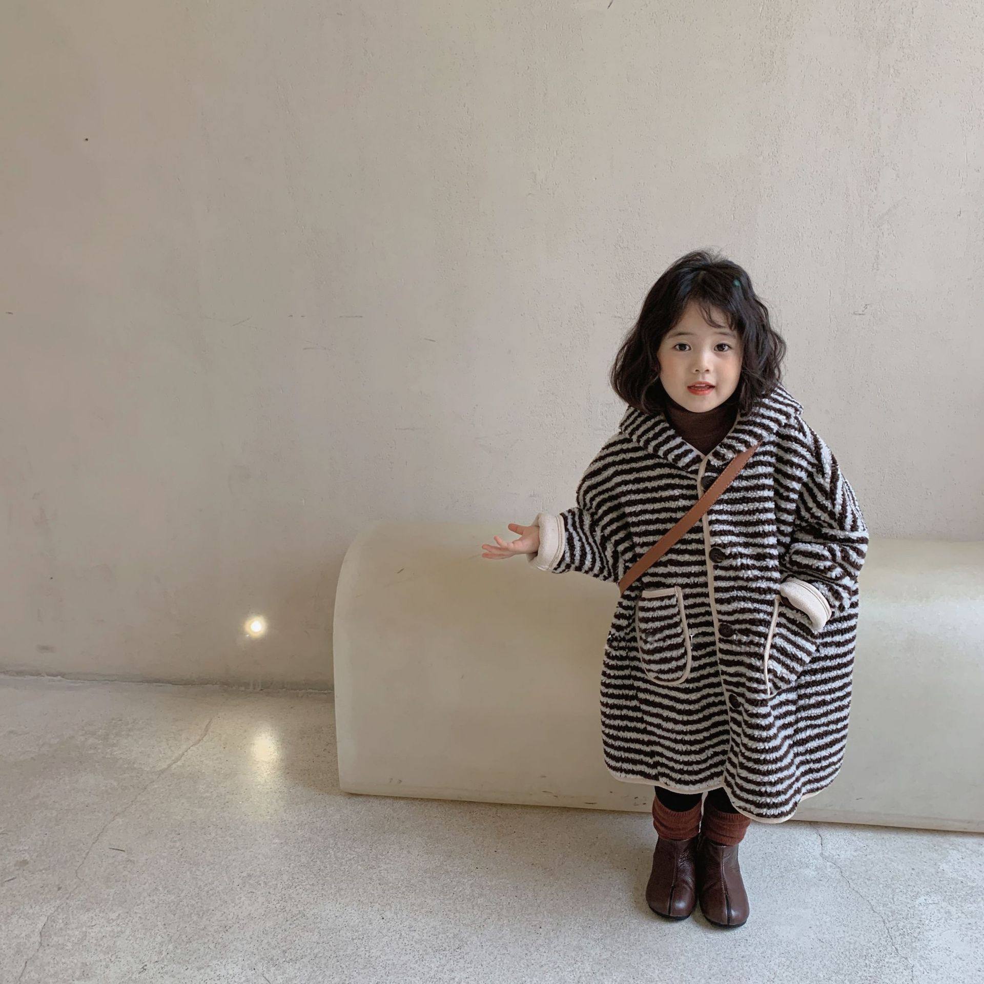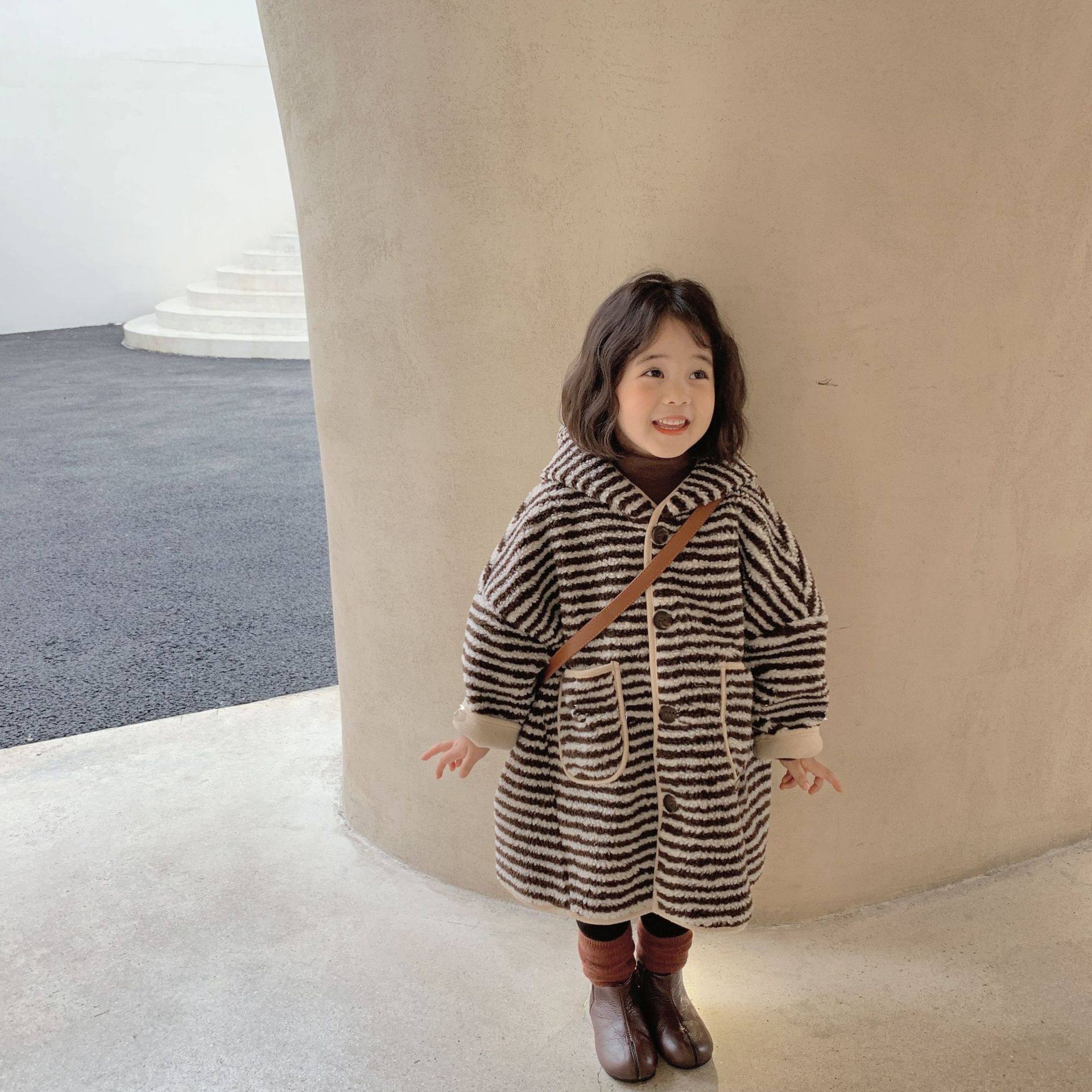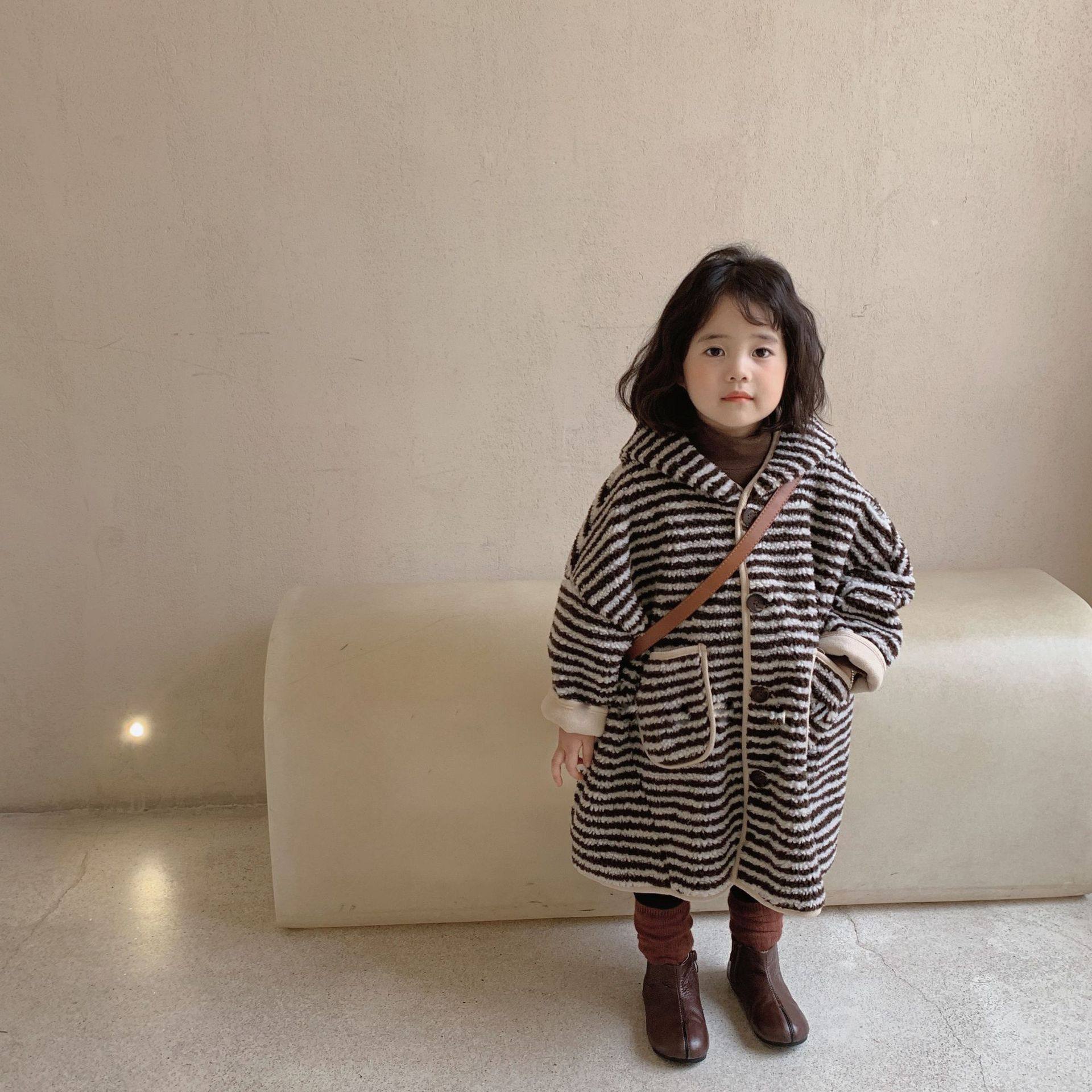 Girls thickened coat autumn and winter mid-length hooded top fur coat 3-8 years old children's clothing