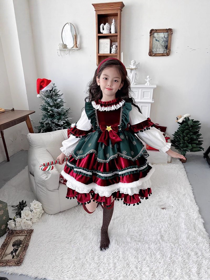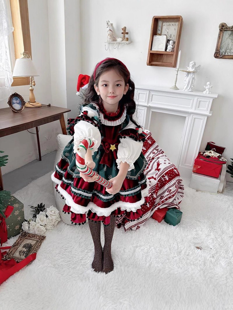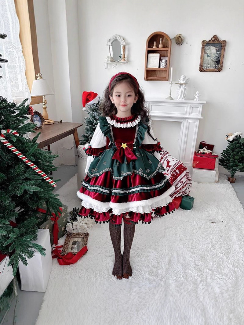 Halloween 2025 New Girls Christmas Velvet Lolita Lolita Princess Dress for Children's Performance