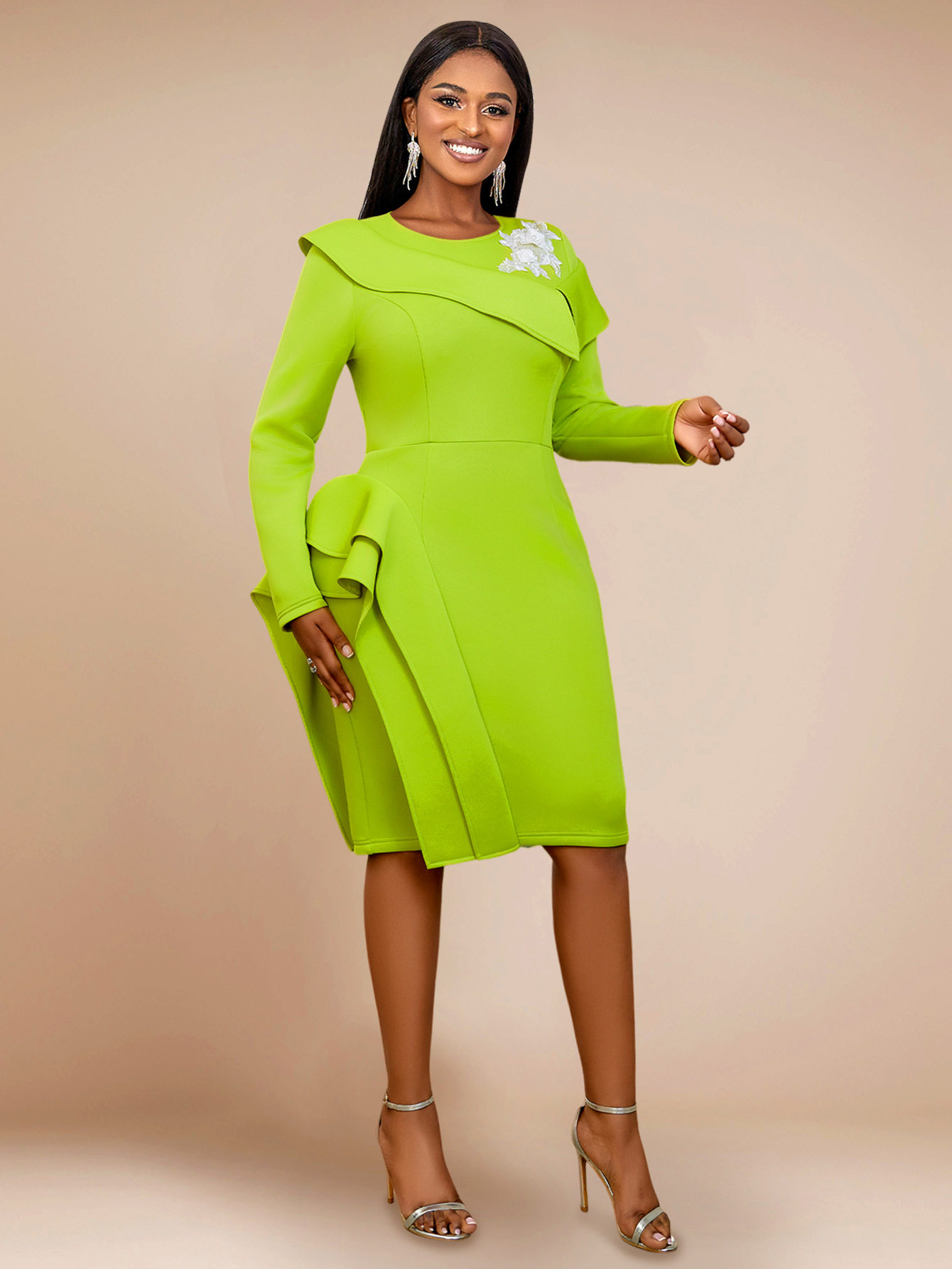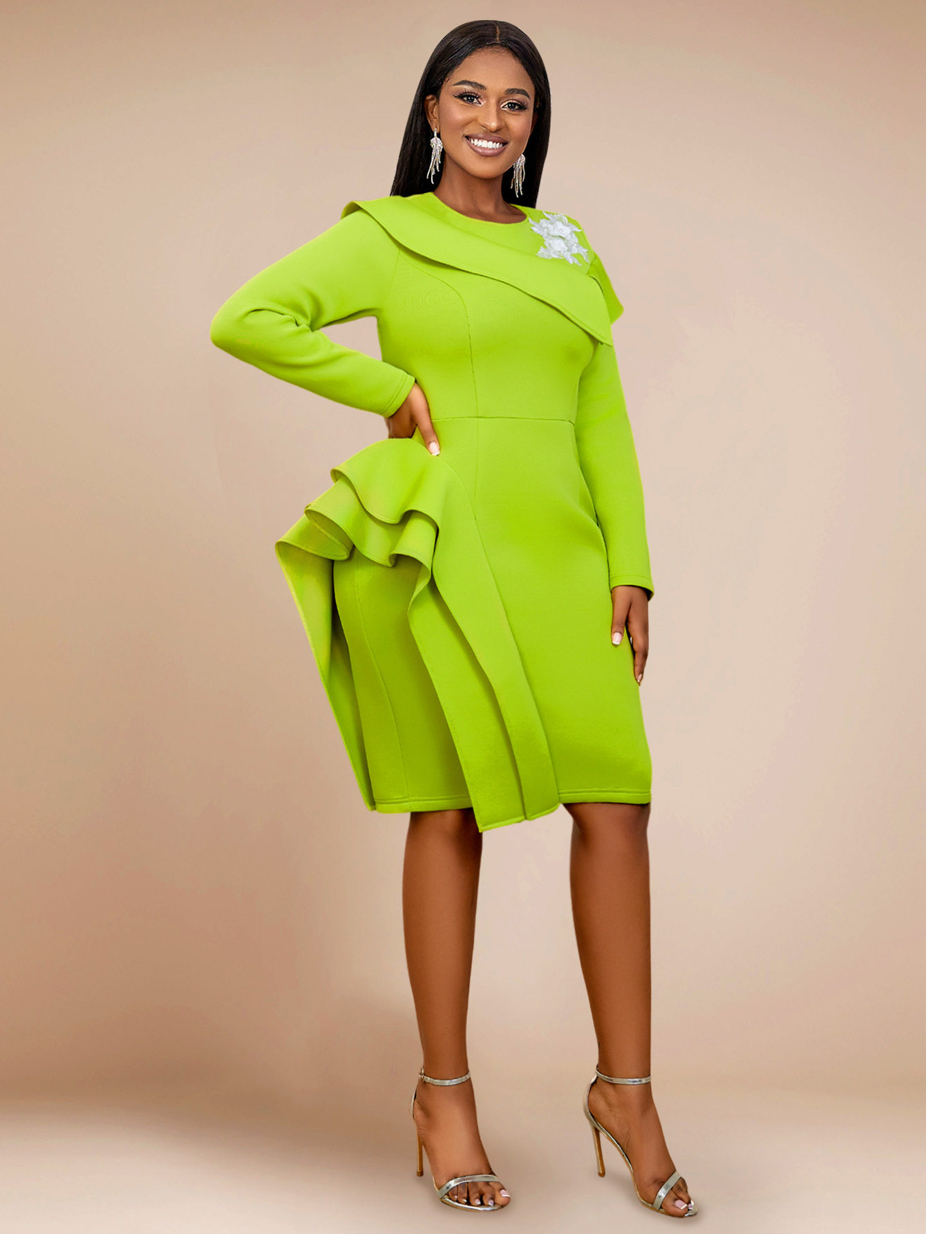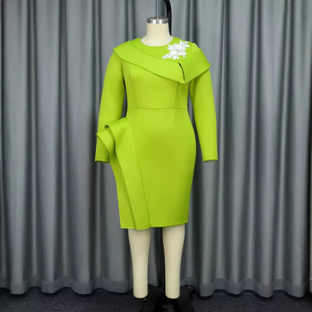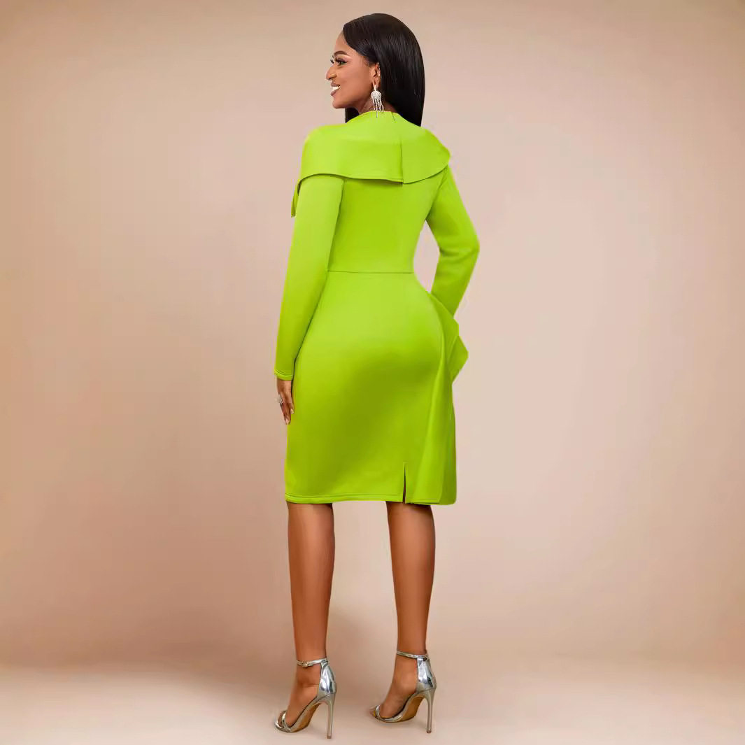 High-end and elegant evening gown, unique long-sleeved ruffle dress