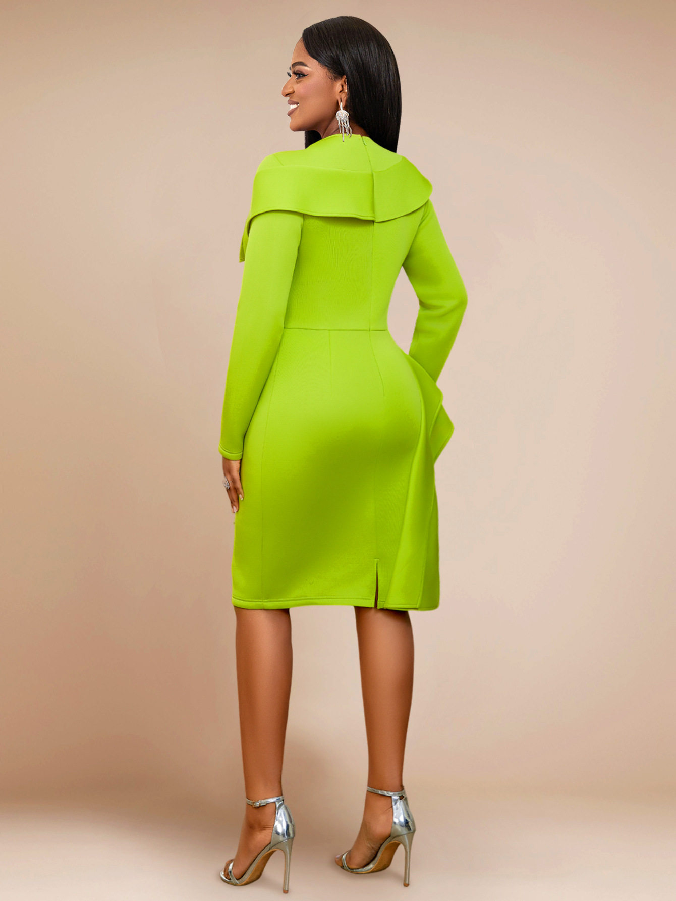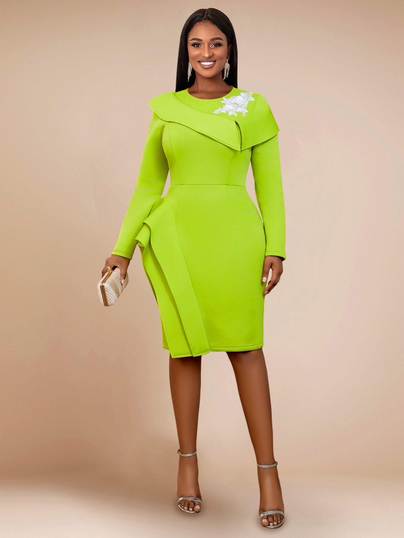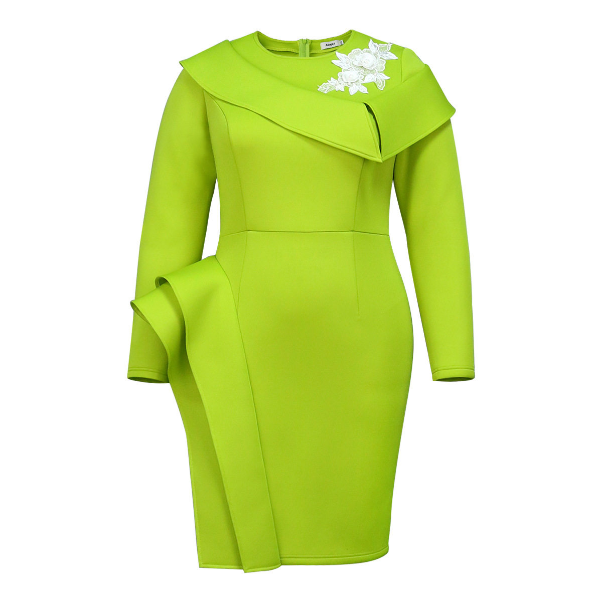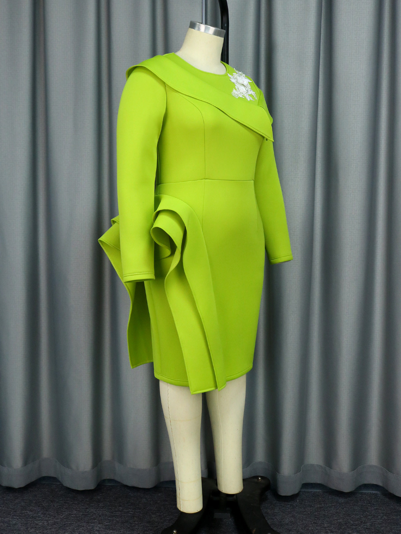 High-end and elegant evening gown, unique long-sleeved ruffle dress