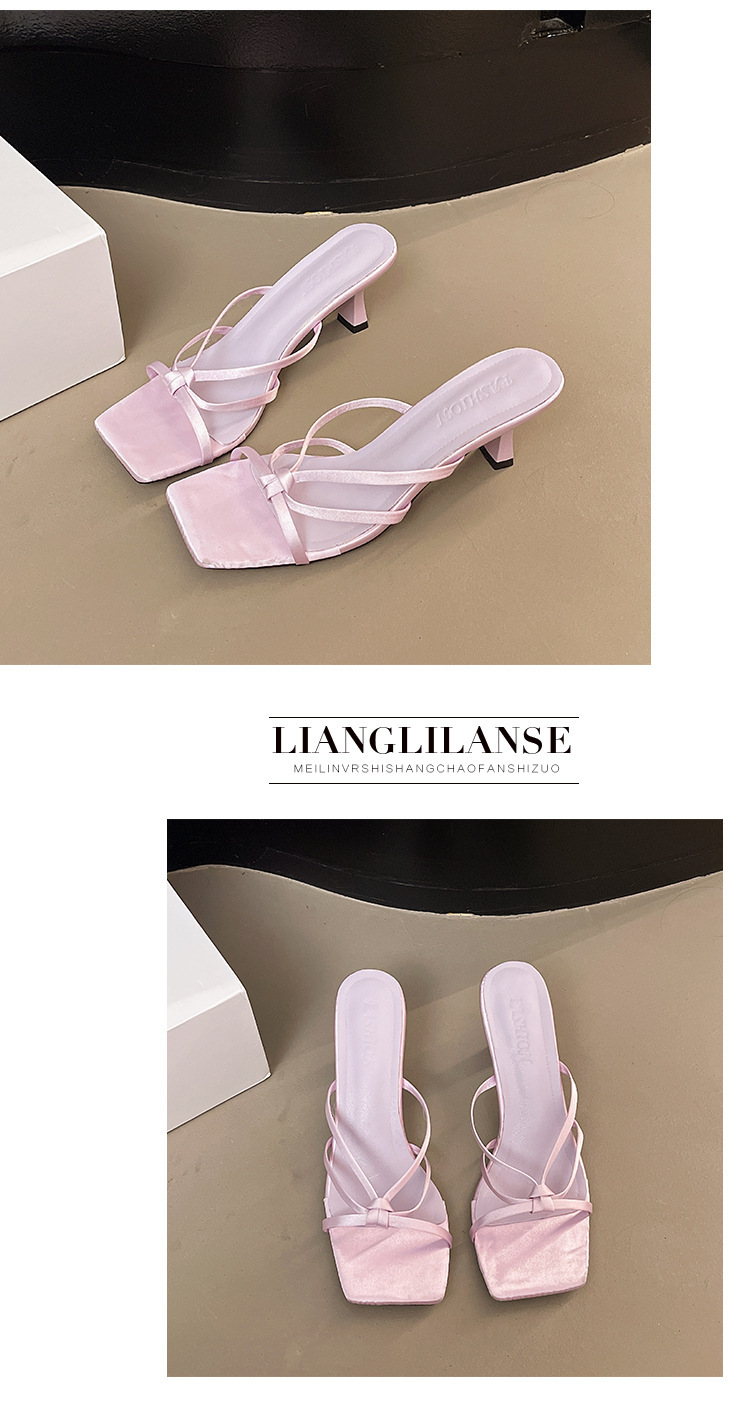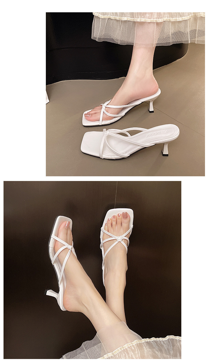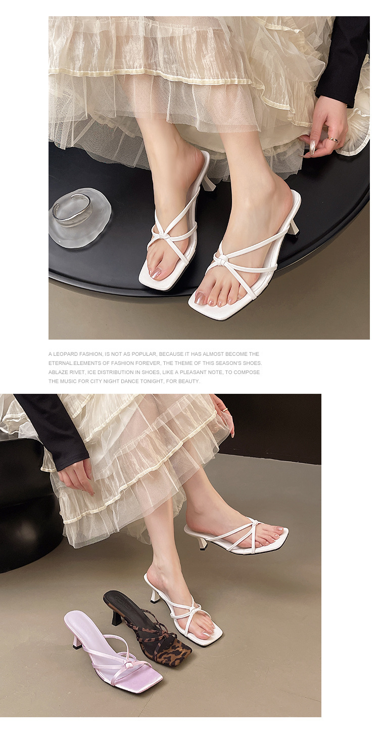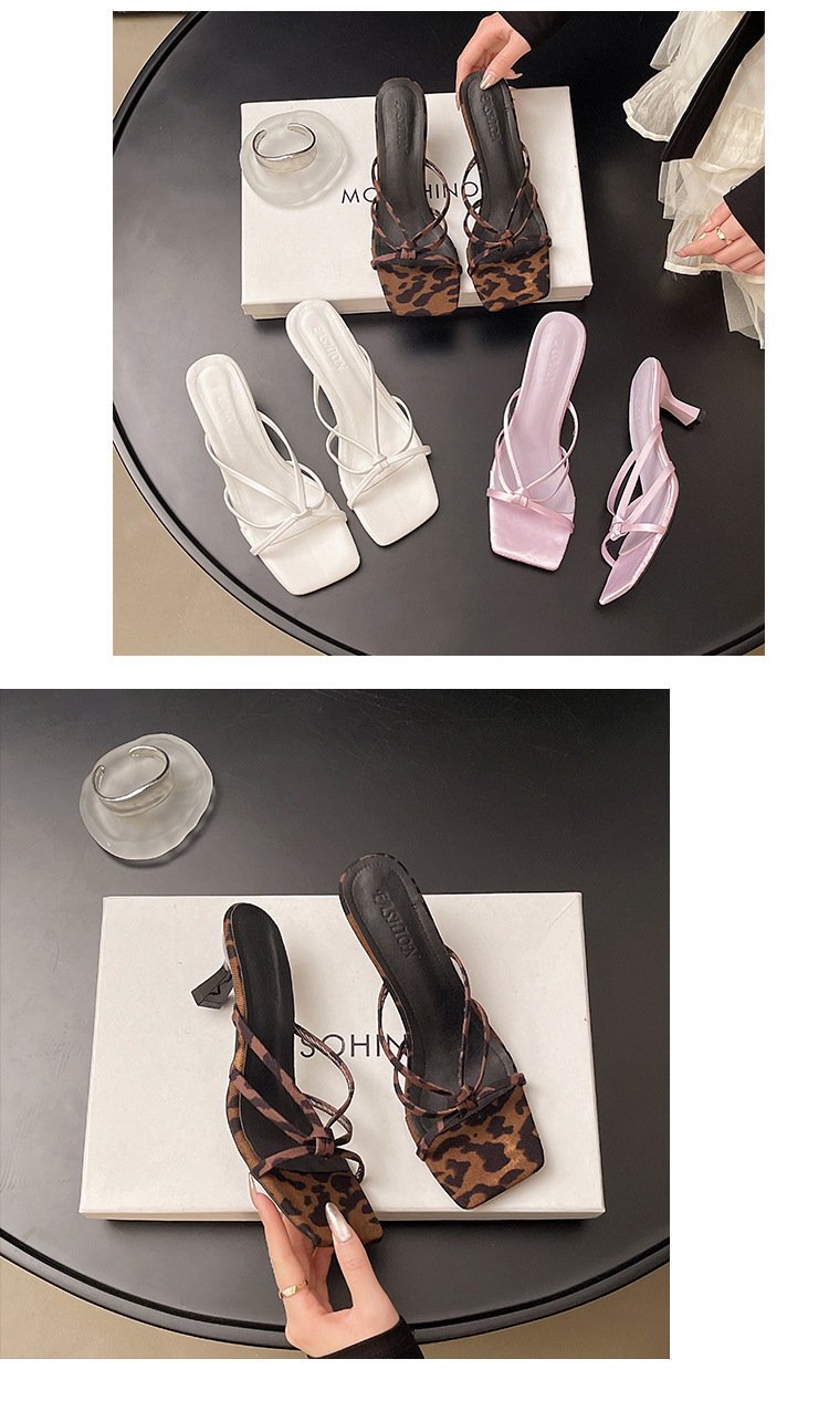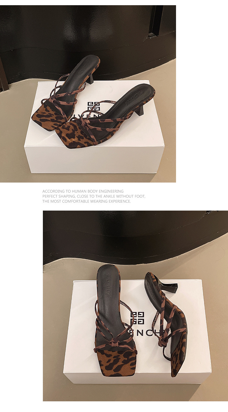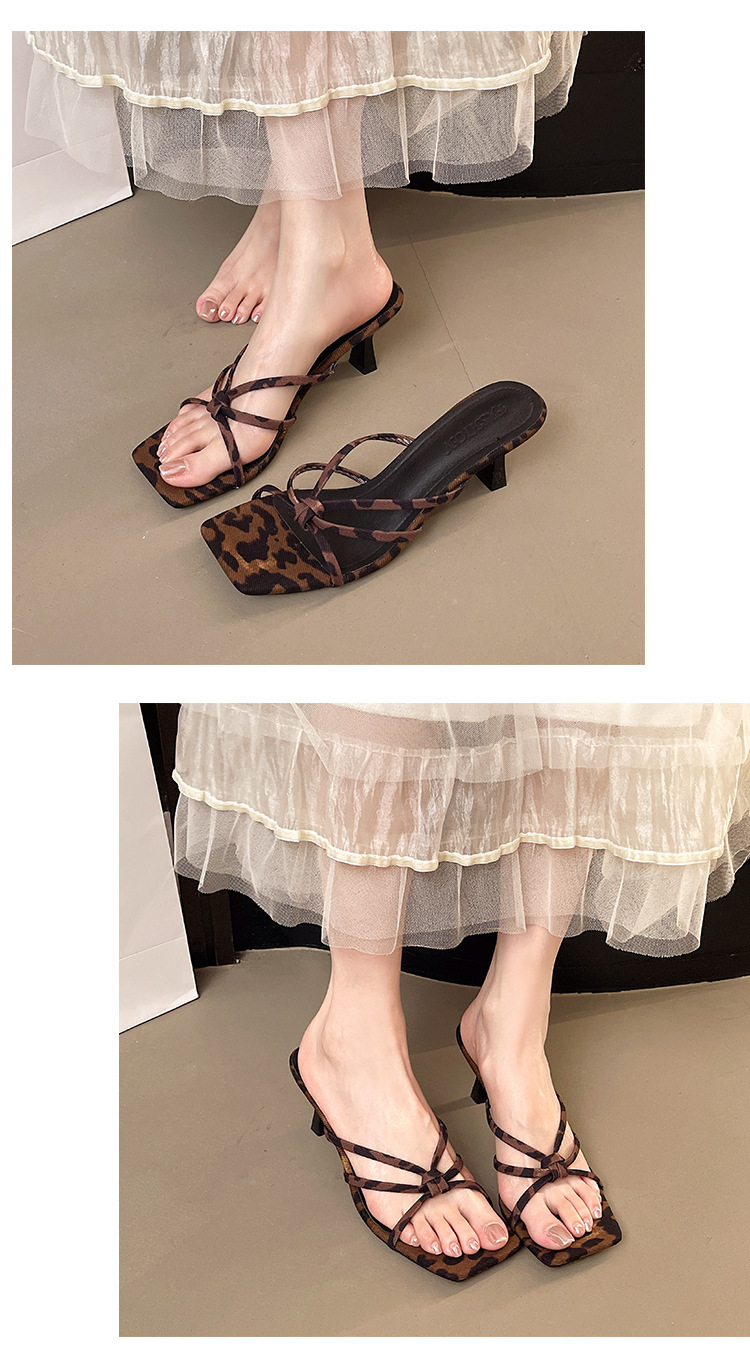 High heels for women sexy leopard print stiletto sandals square toe versatile fashionable outer slippers for women