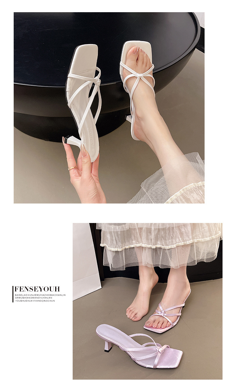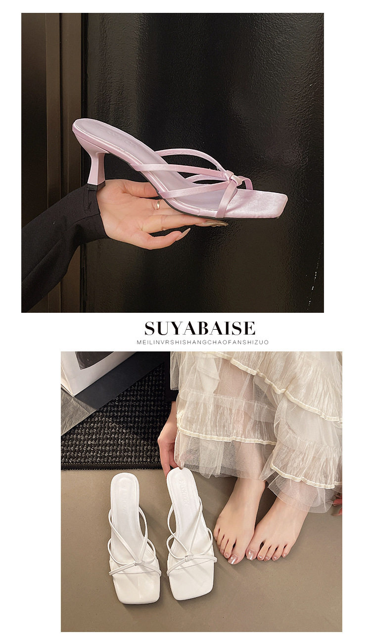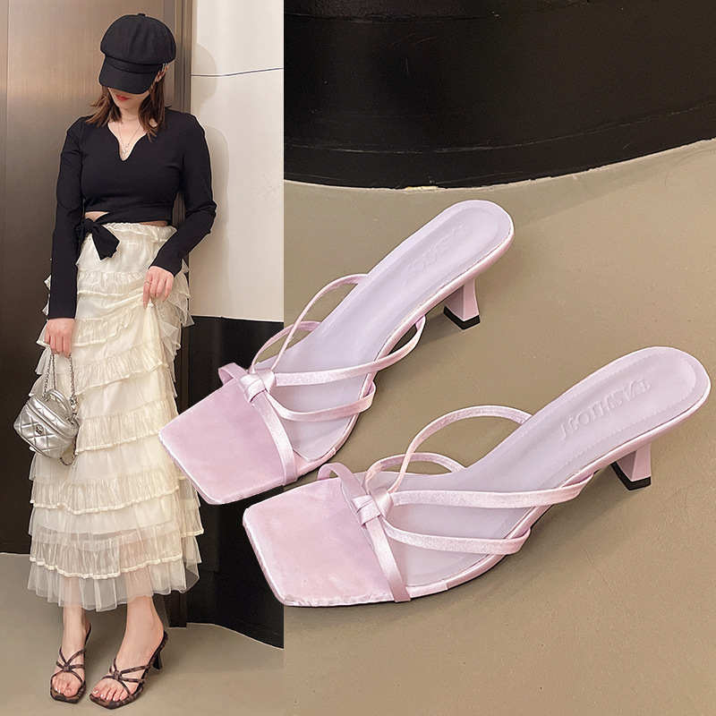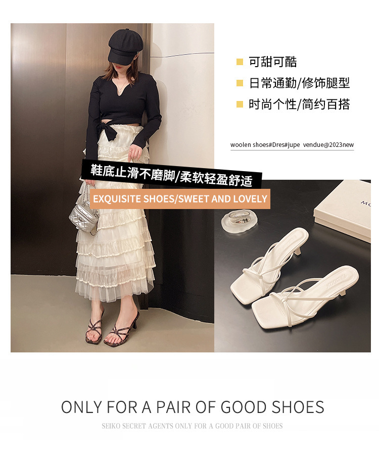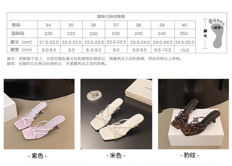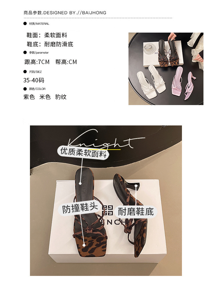 (FREE AIR SHIPPING) High heels for women sexy leopard print stiletto sandals square toe versatile fashionable outer slippers for women