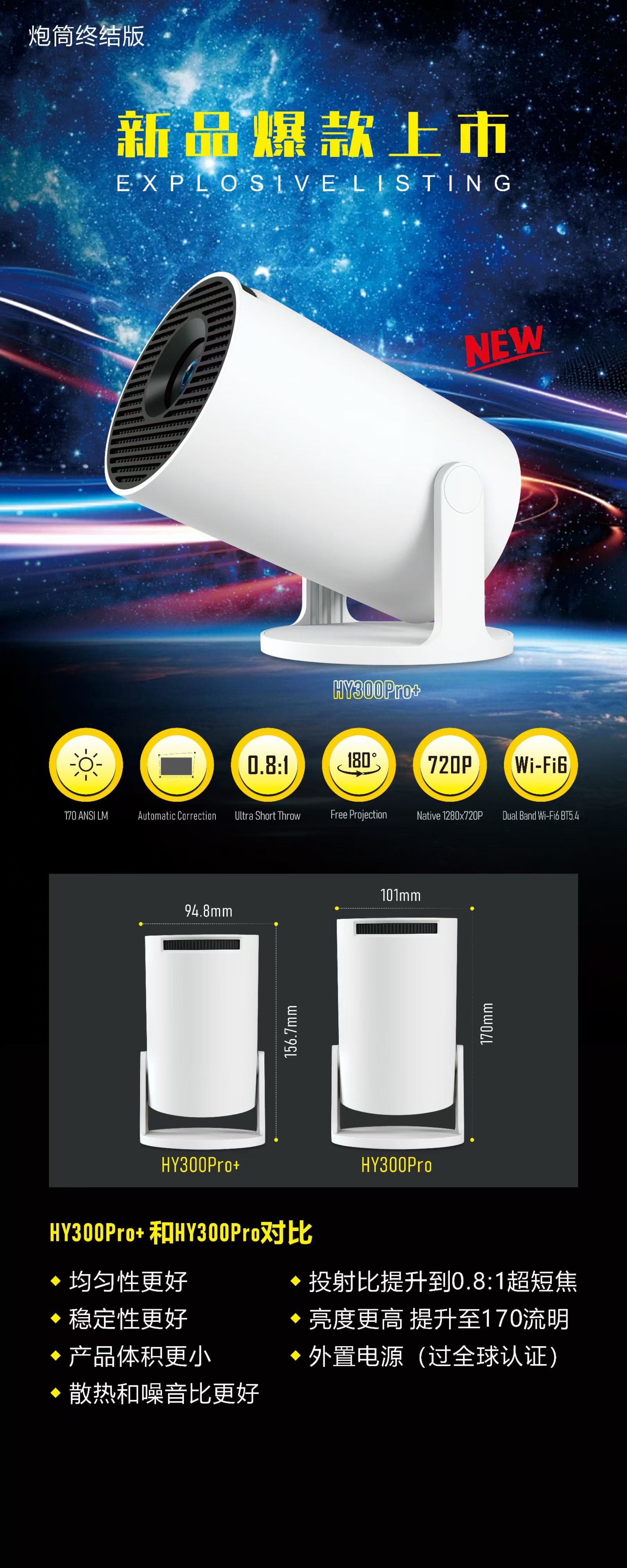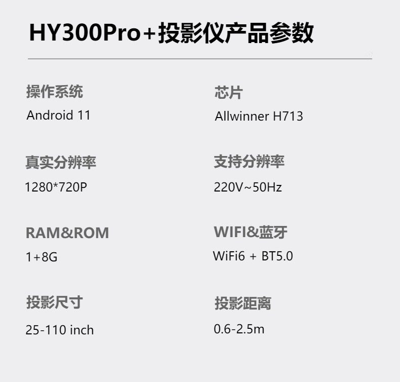 HY300Pro+ projector home 4K projection small mini portable outdoor camping projector