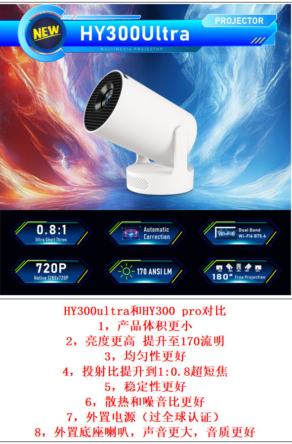 (FREE AIR SHIPPING) HY300Ultra projector home 4K high-definition ultra-short throw small mini portable projector