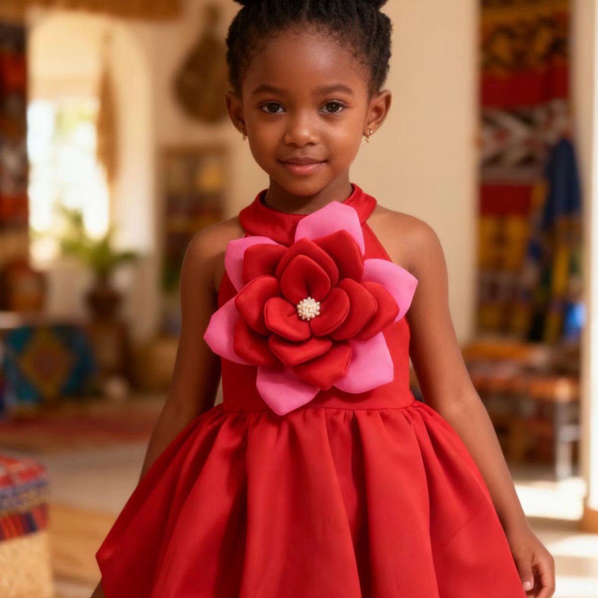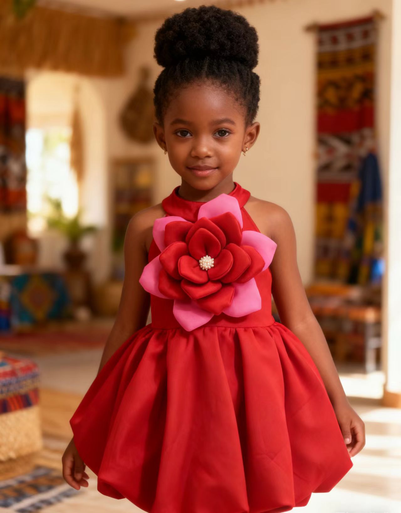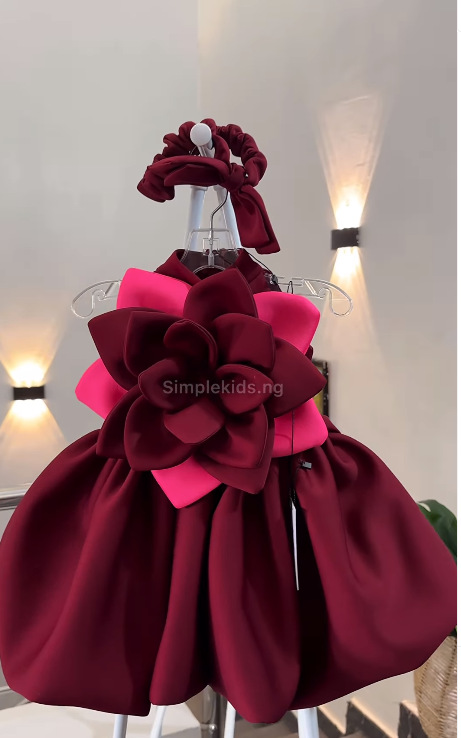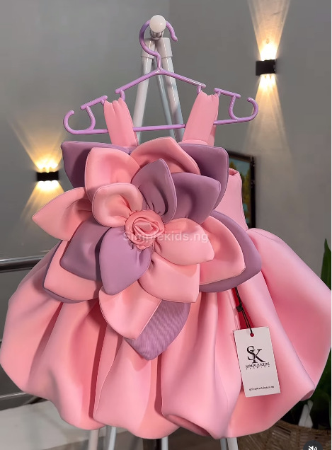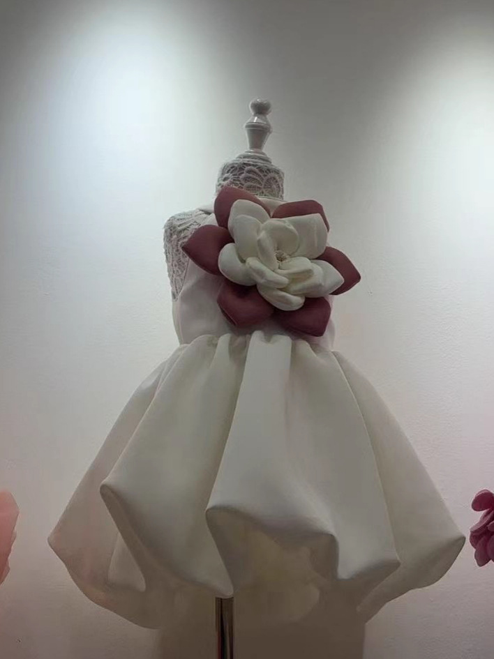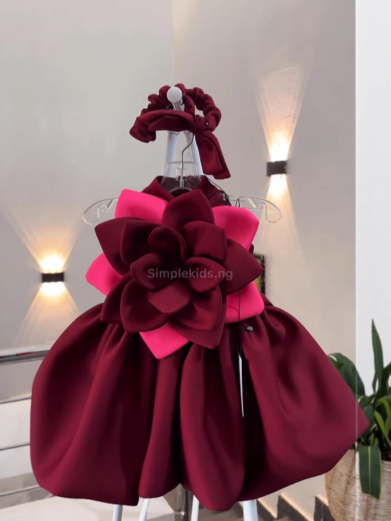 Ins children's dress baby girl princess dress pink flower birthday dress little girl flower girl dress