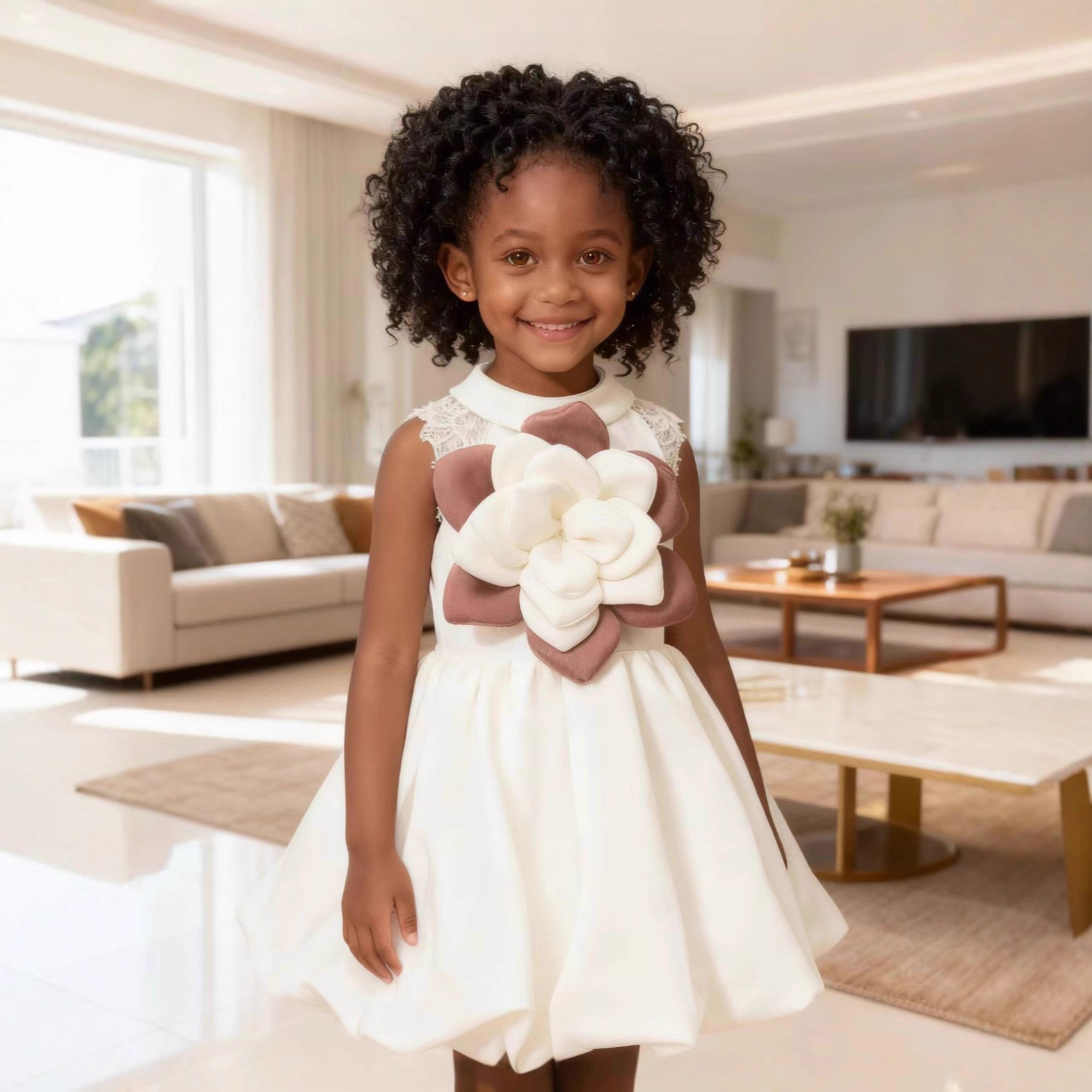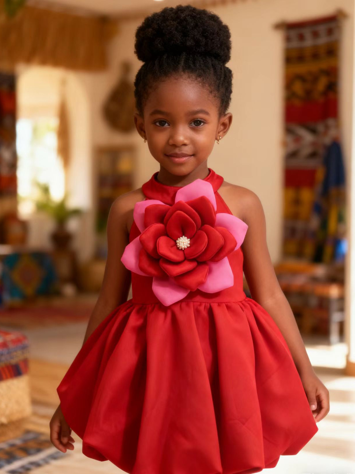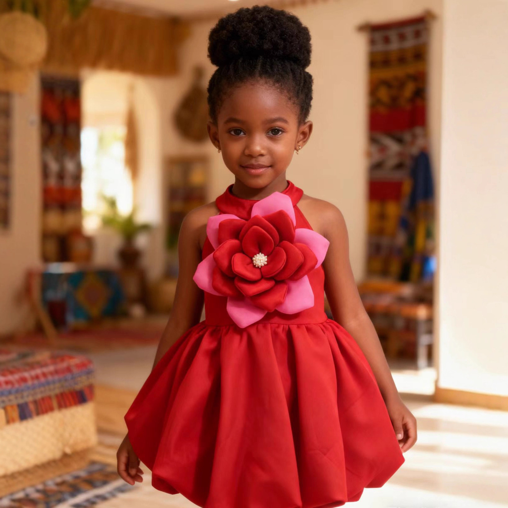 Ins children's dress baby girl princess dress pink flower birthday dress little girl flower girl dress