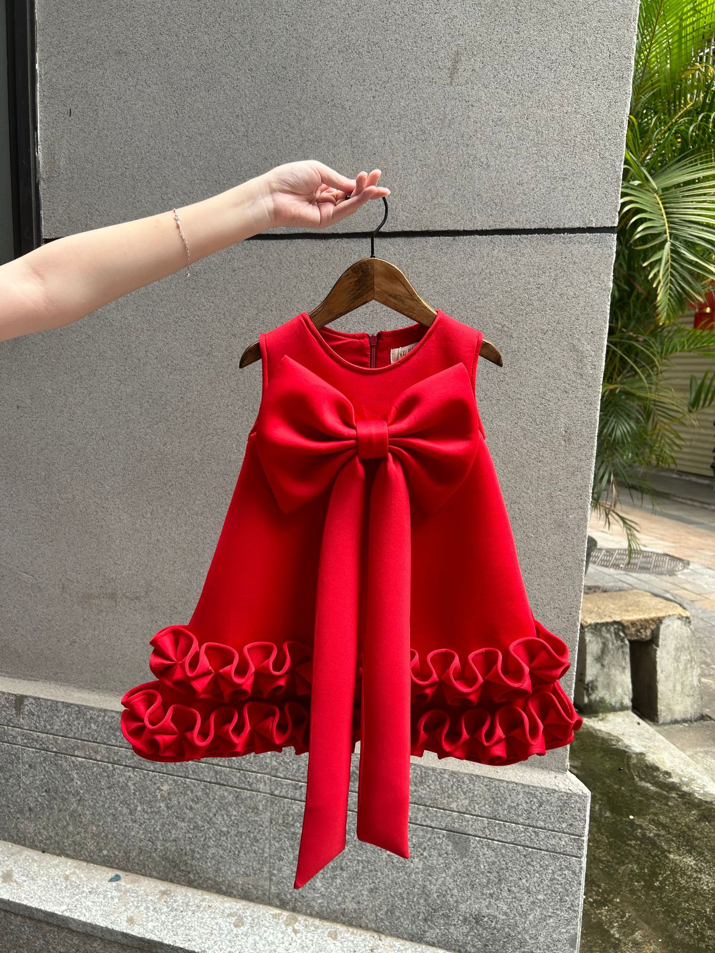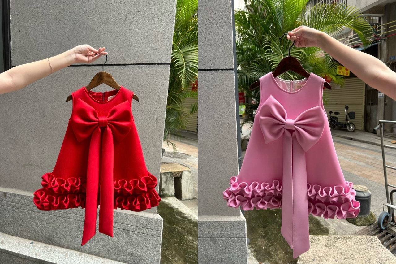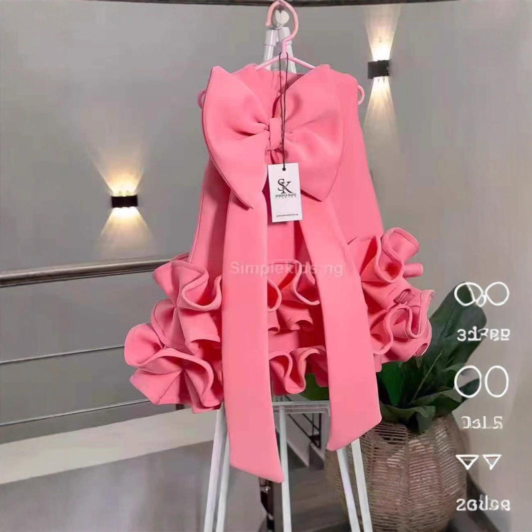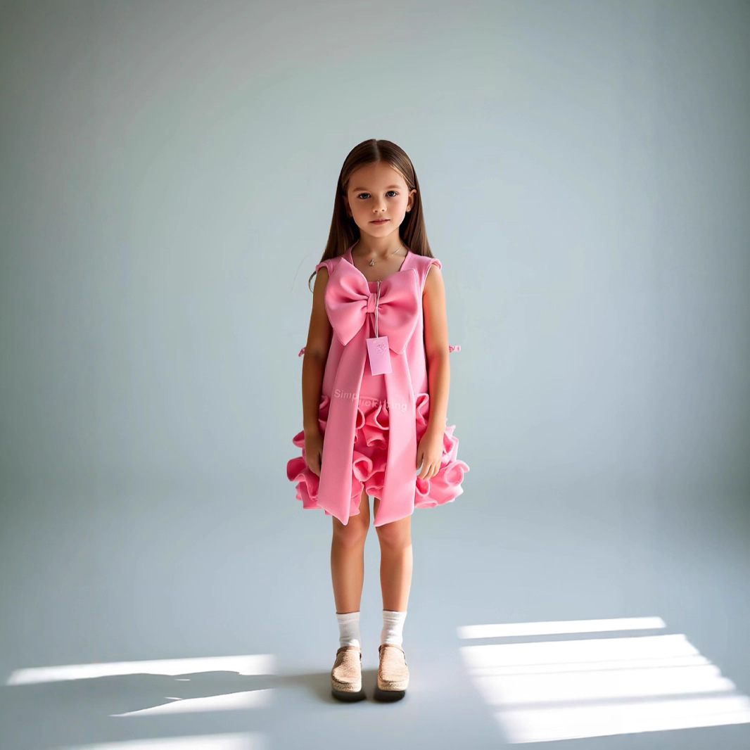 Ins girls dress three-dimensional banquet birthday performance elegant heavy industry dress bow