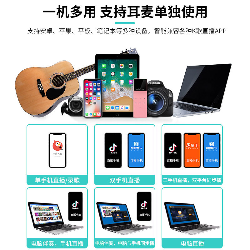 JIY anchor suit live karaoke microphone with sound effect sound card singing fast hand trembles anchor suit