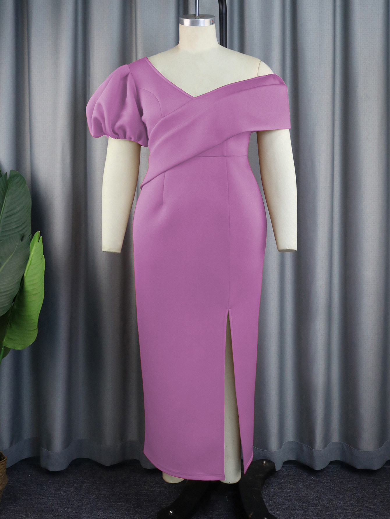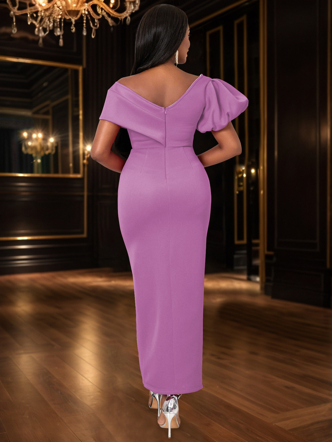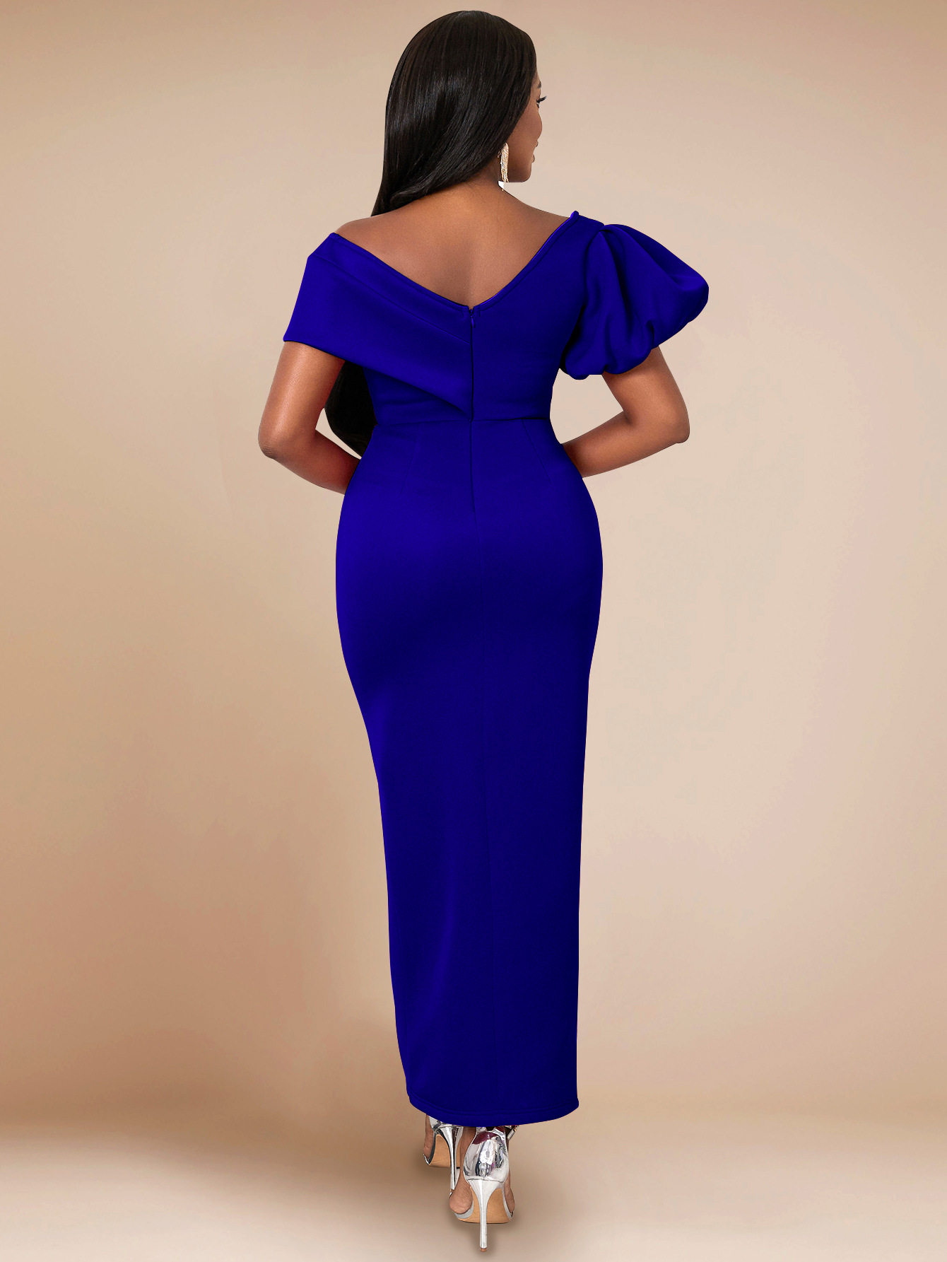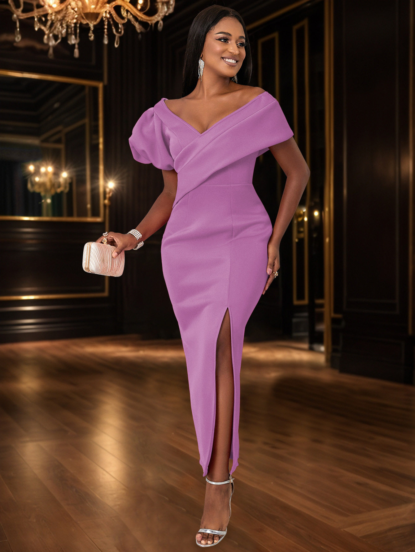 Lantern Sleeve V-Neck Dress Banquet Party Elegant Pure Black Dress Dresses