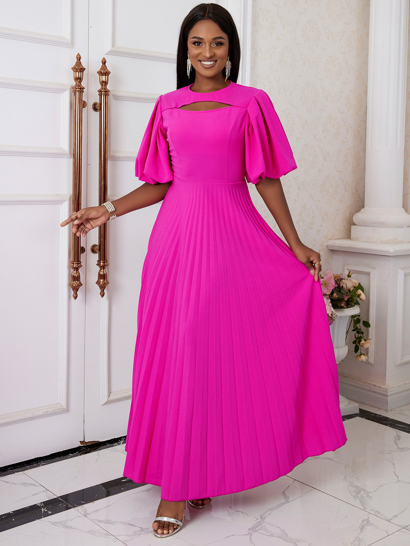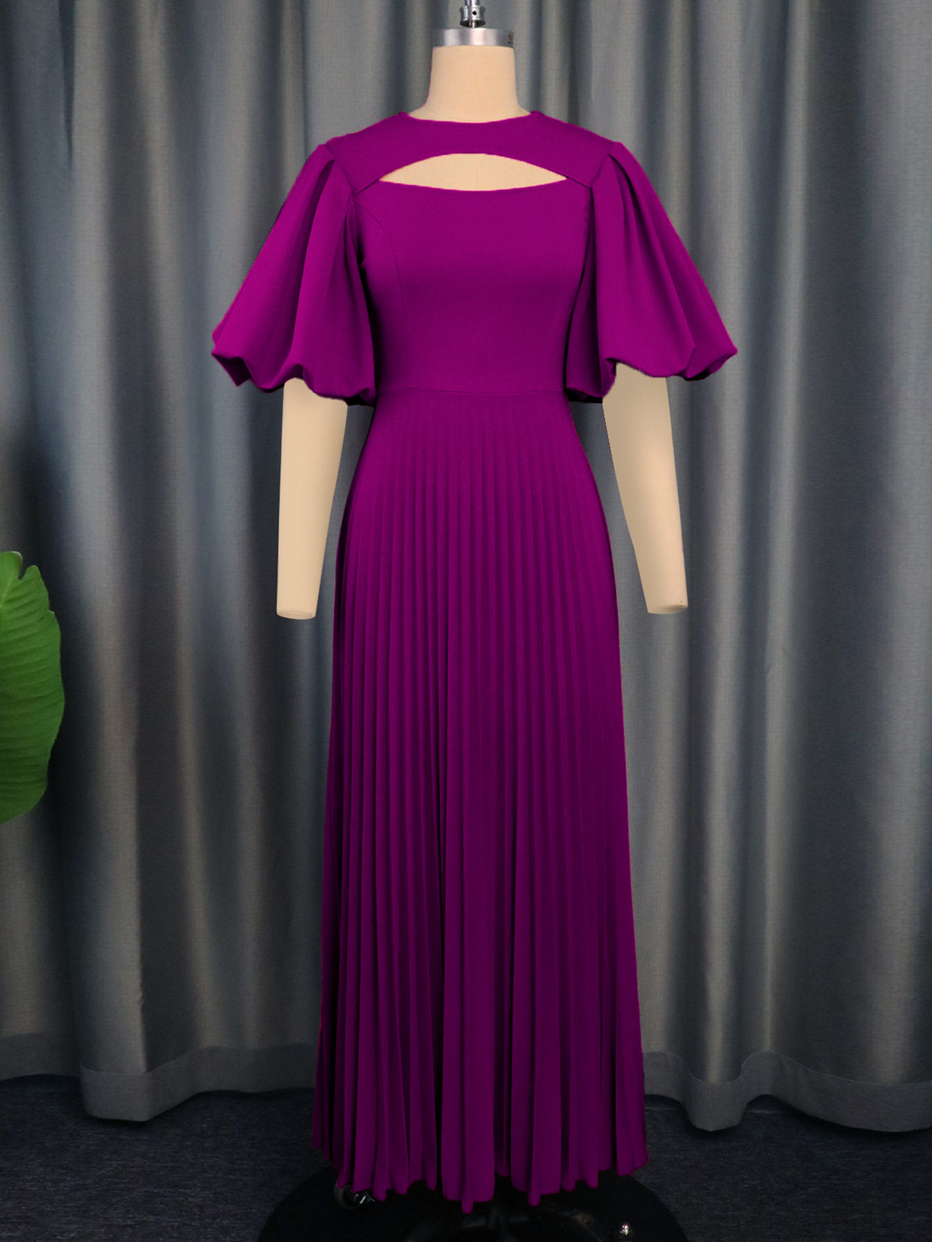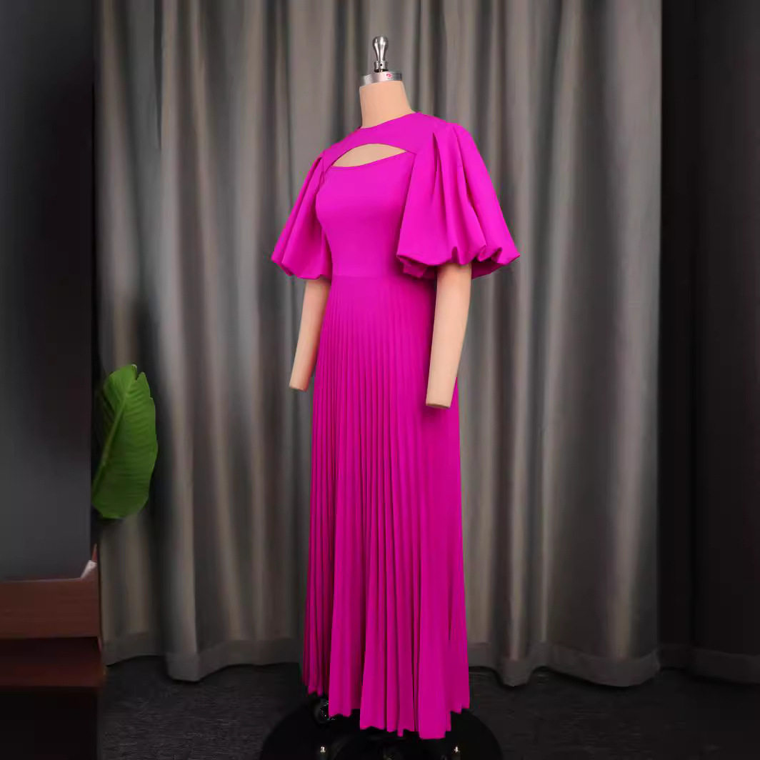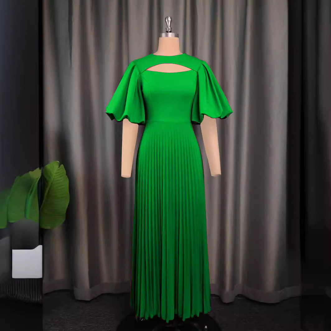 Lantern sleeve waist pleated skirt comfortable commuting casual dress pleated skirt