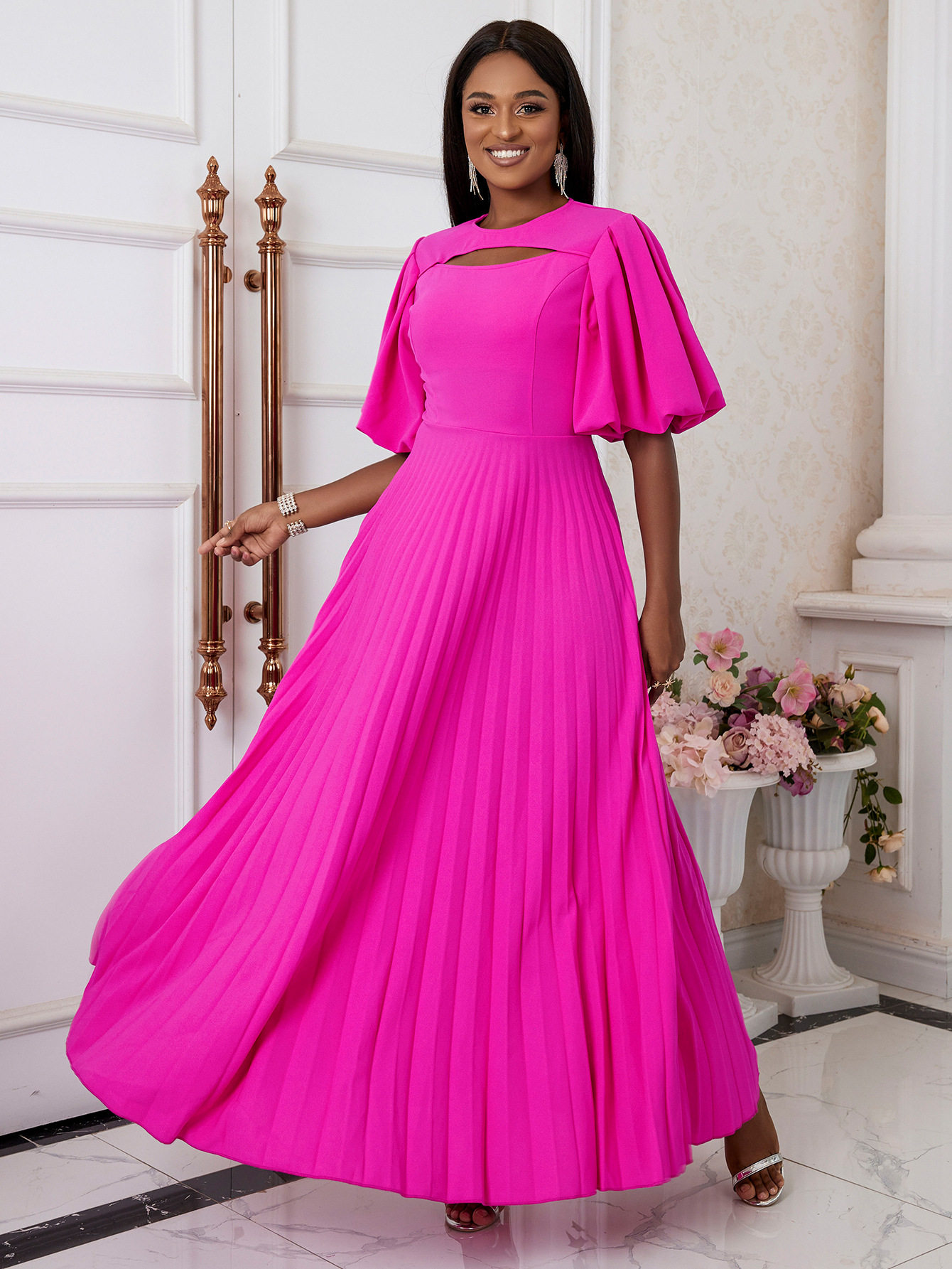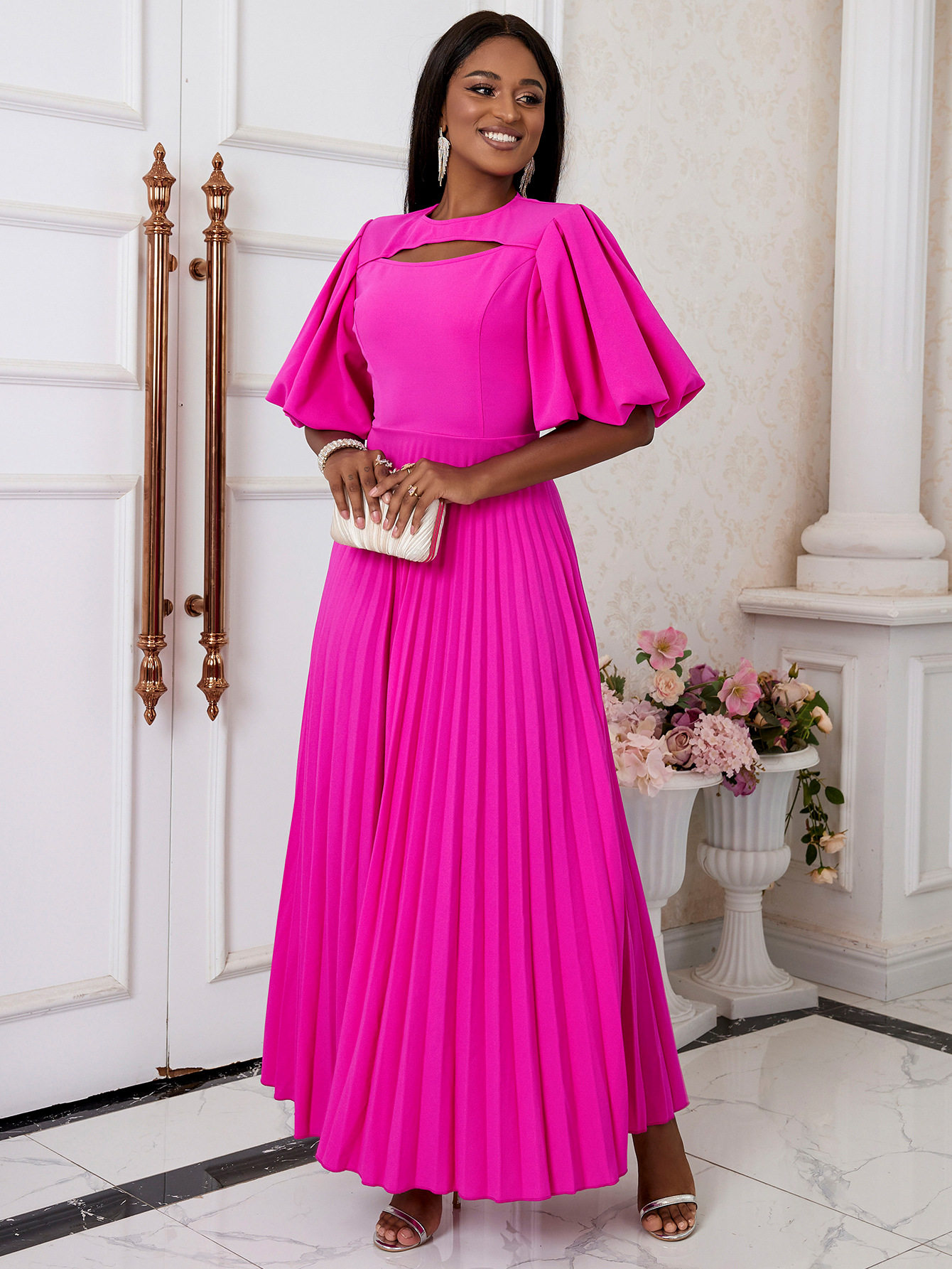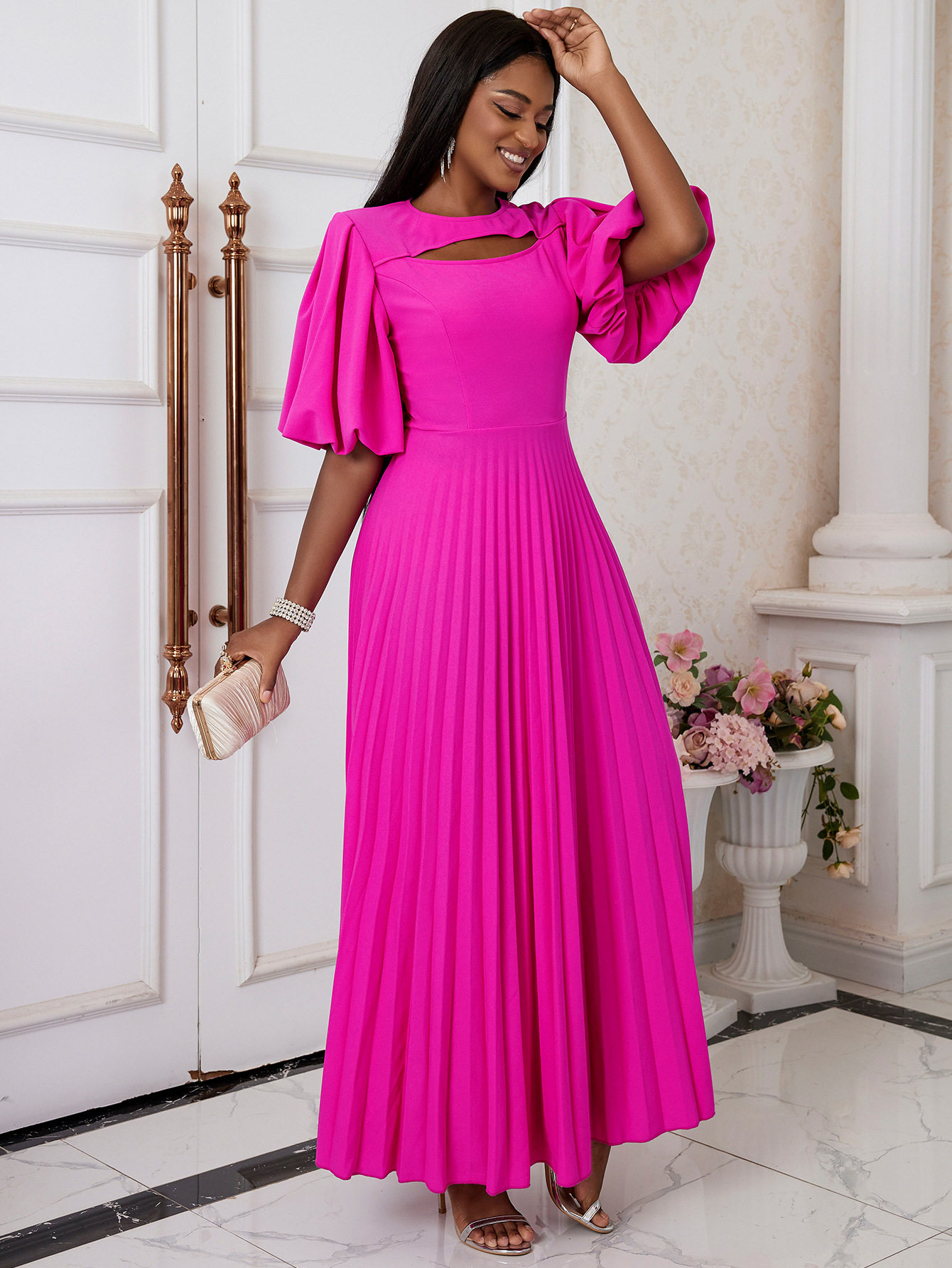 Lantern sleeve waist pleated skirt comfortable commuting casual dress pleated skirt