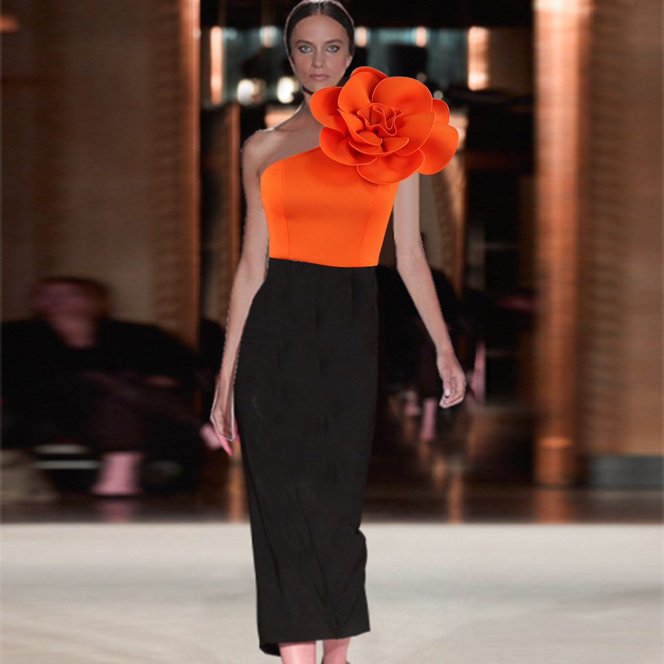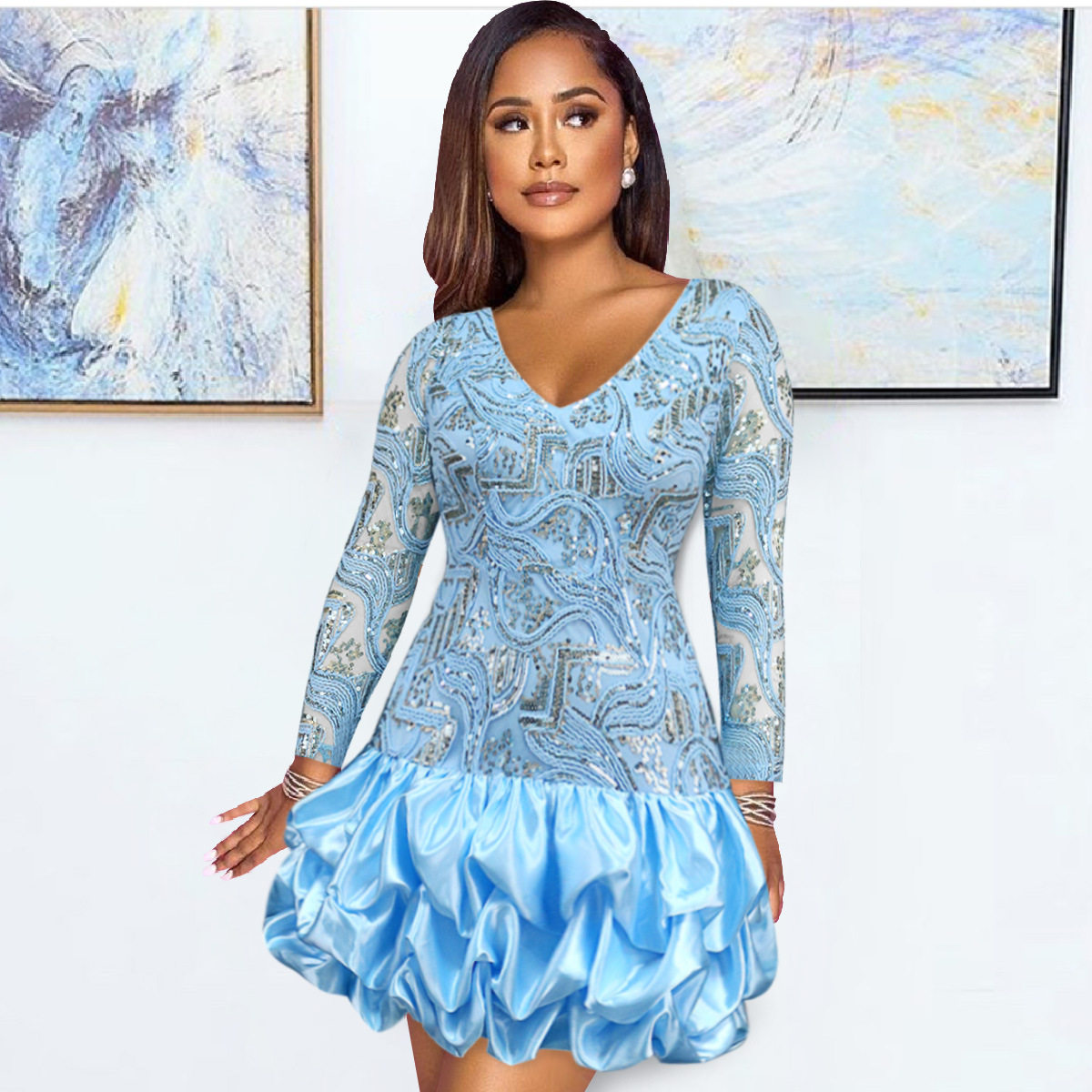 (FREE AIR SHIPPING) lantern sleeve waist pleated skirt comfortable commuting casual dress pleated skirt