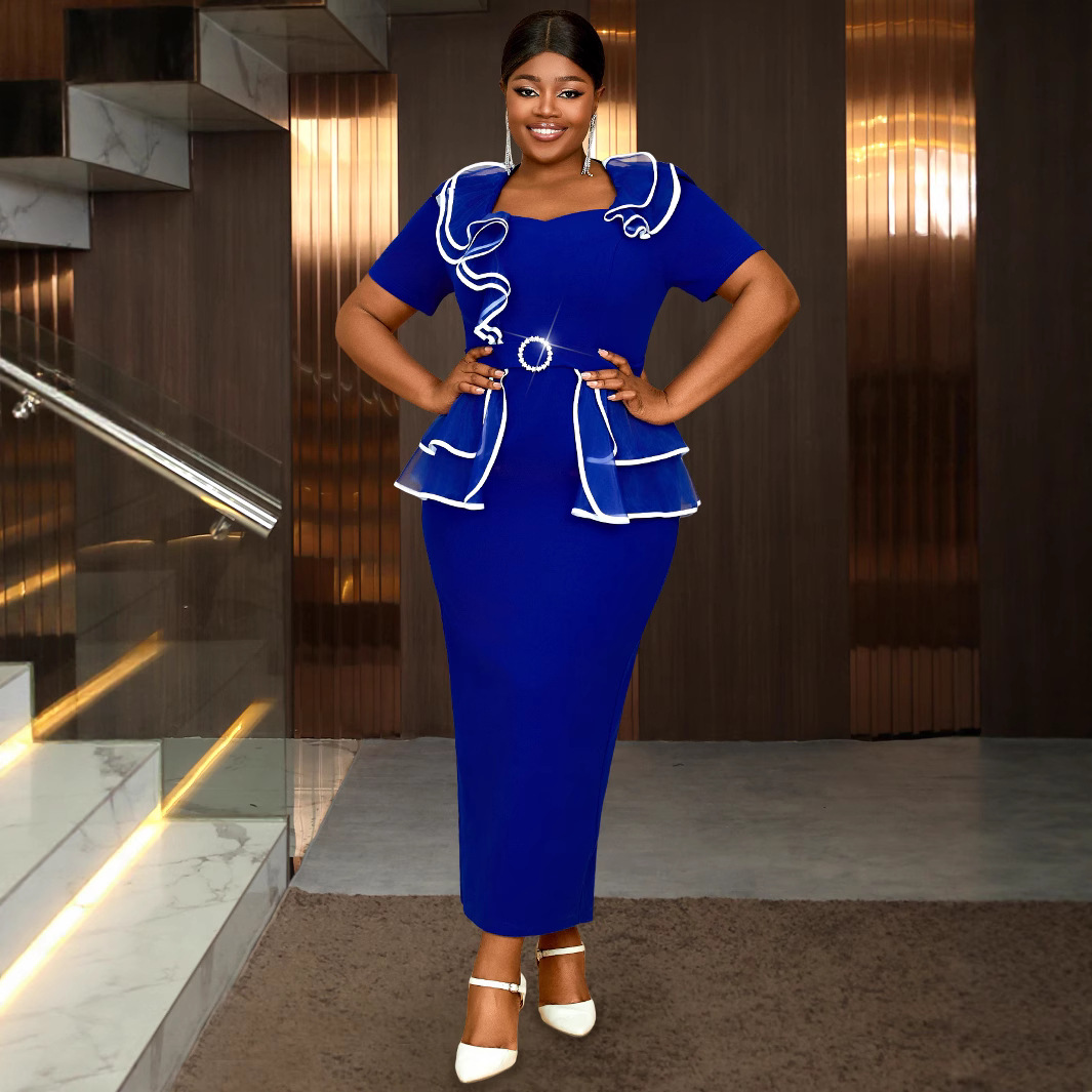 (FREE AIR SHIPPING) Cross-border large size fashionable embroidered long-sleeved dress dress Cross-border large size high waist banquet party dress dresses