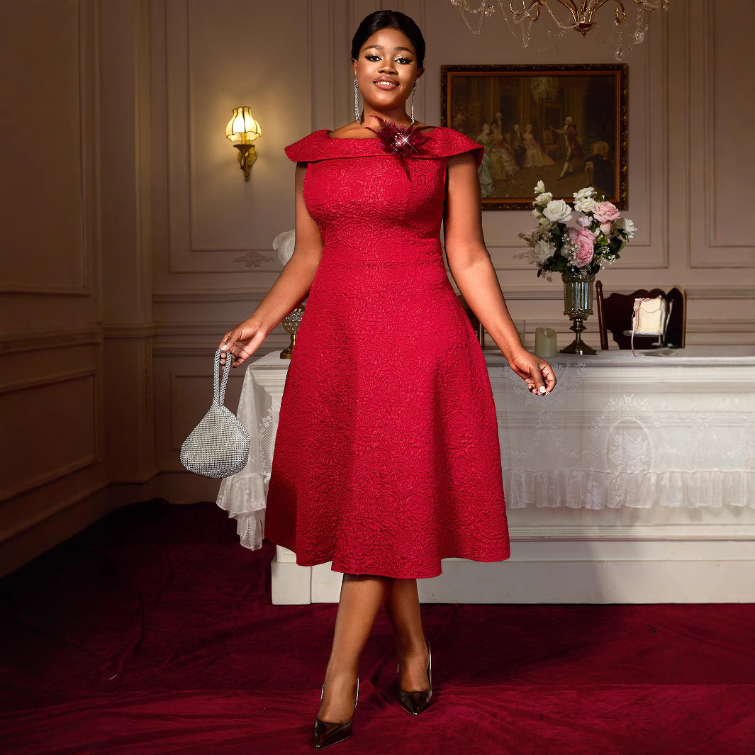 Large size fashionable embroidered long-sleeved dress dress large size high waist banquet party dress dresses