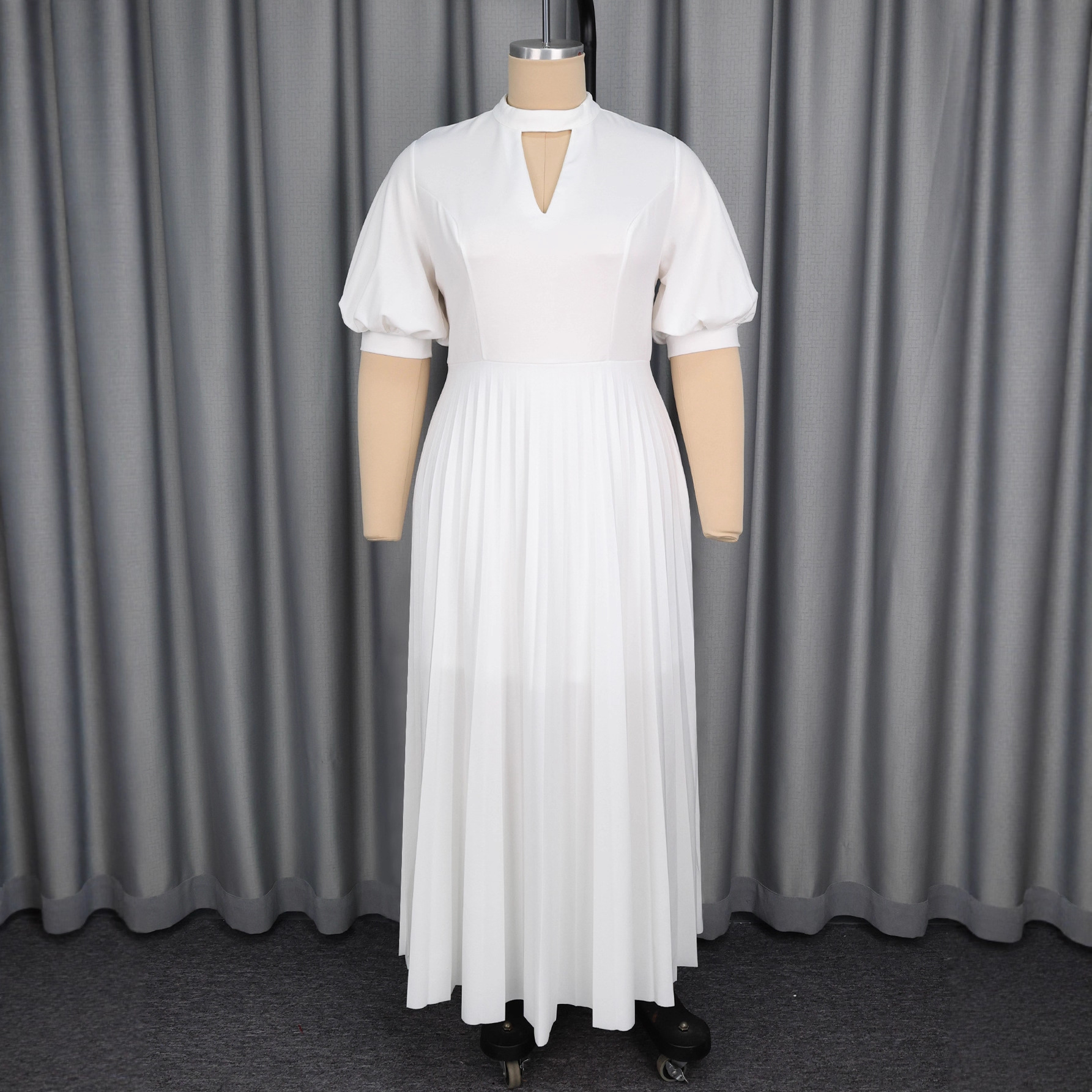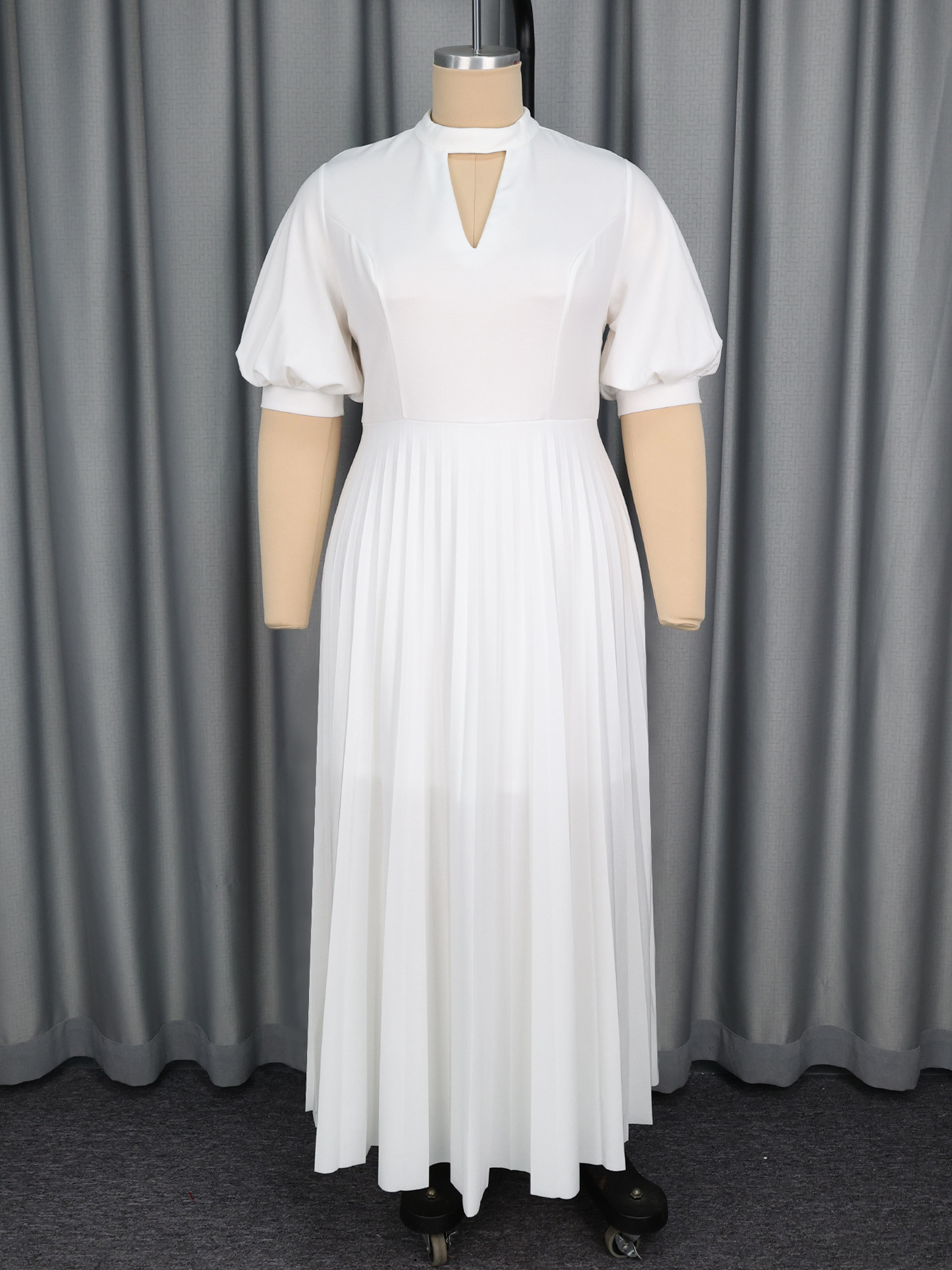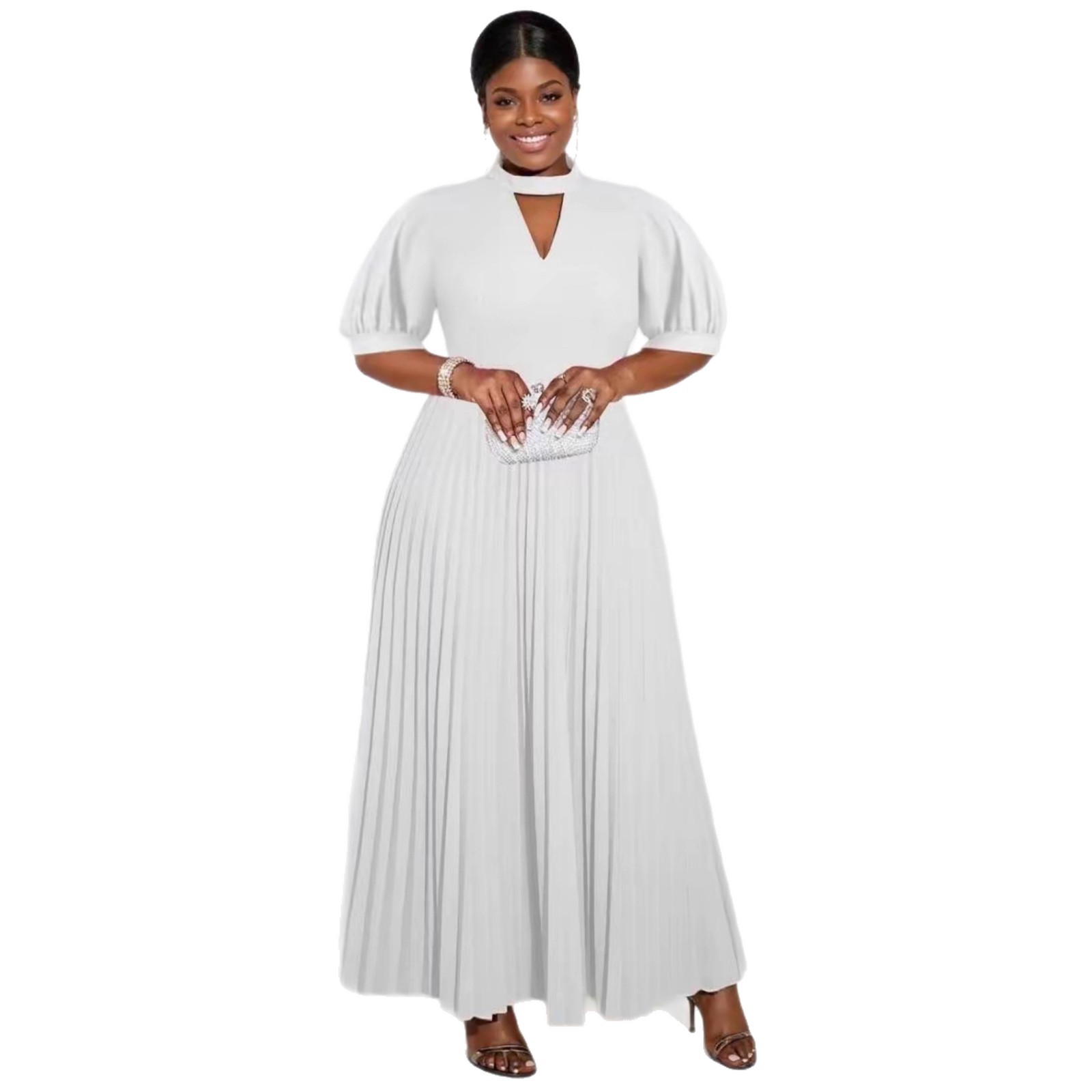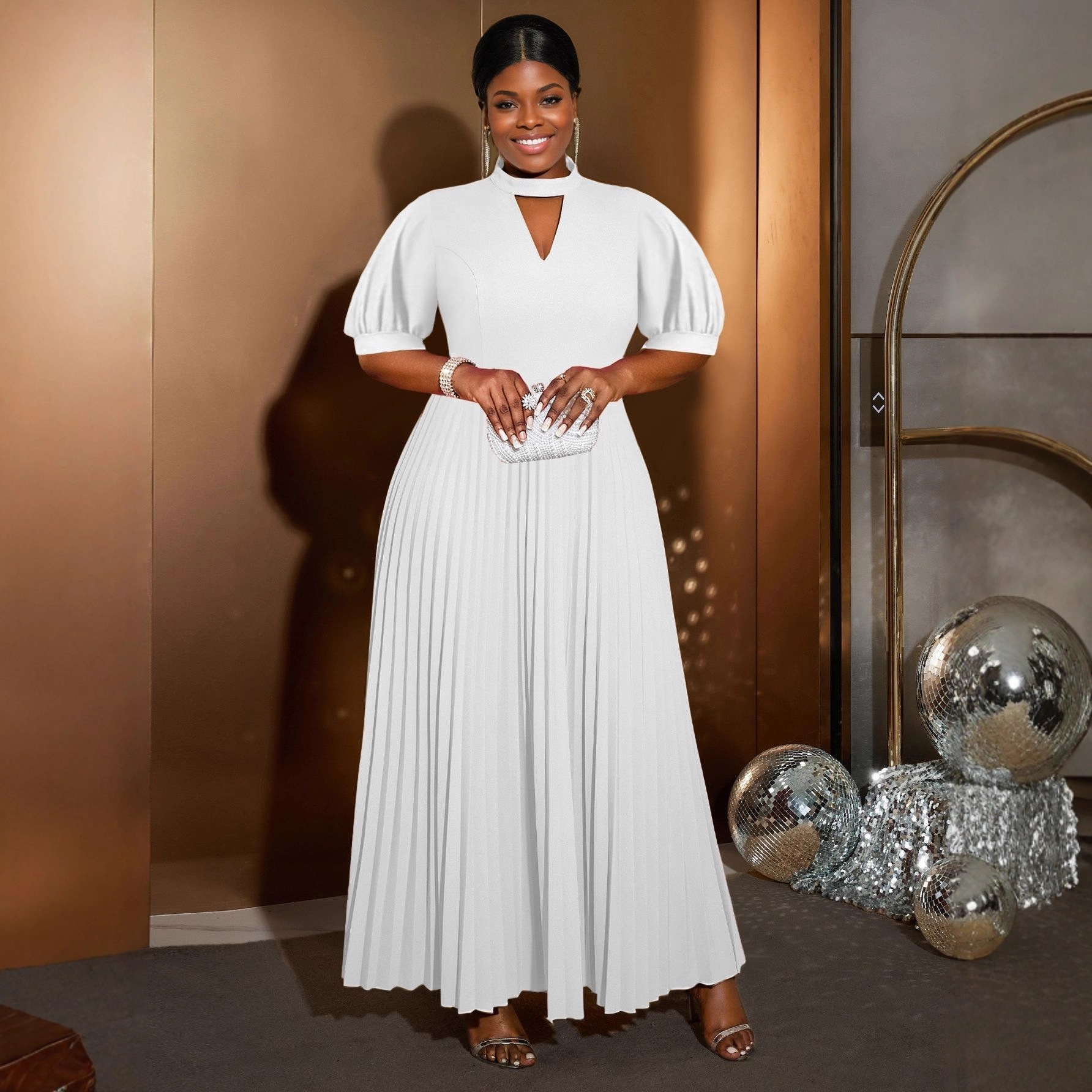 (FREE AIR SHIPPING) Large size half turtleneck hollow elegant dress high waist temperament party evening pleated skirt elegant dress