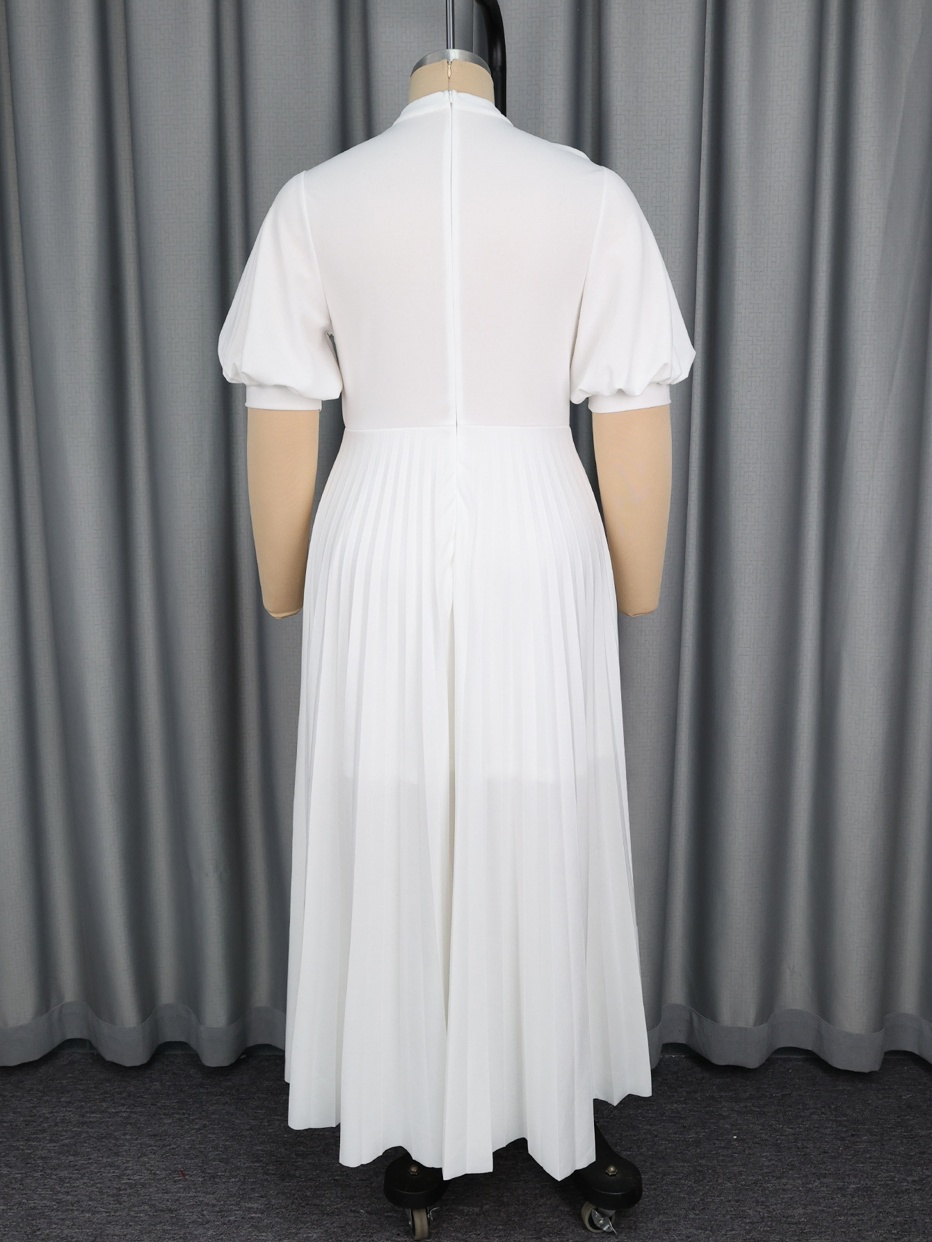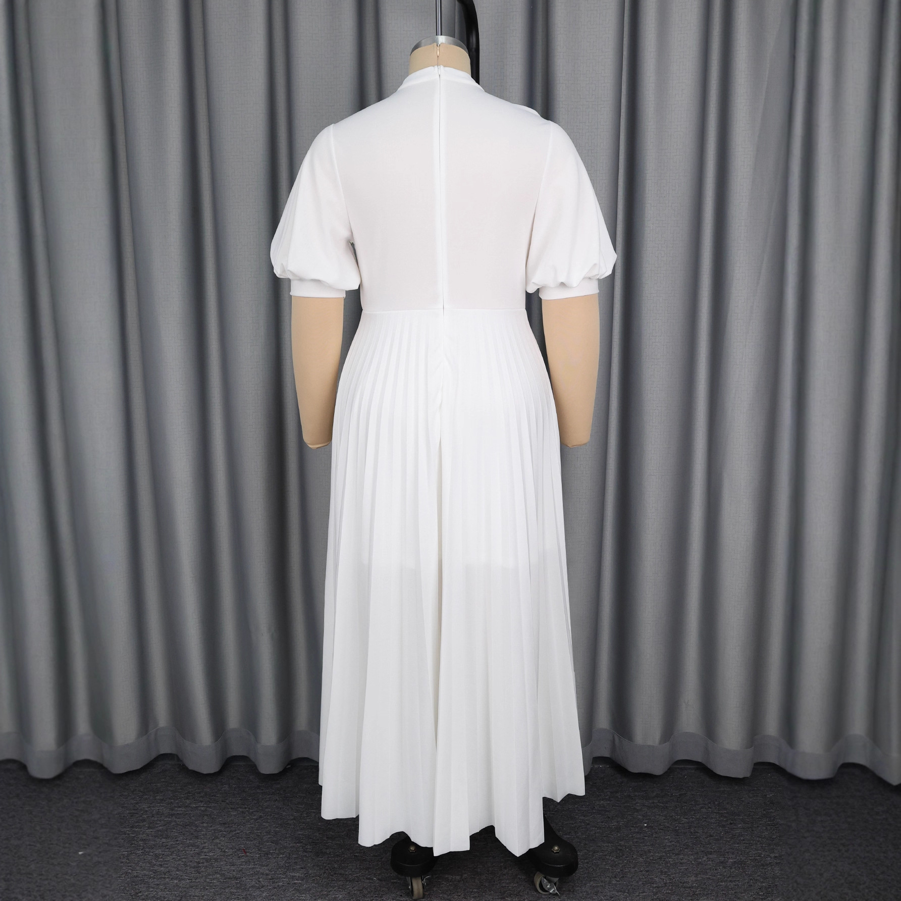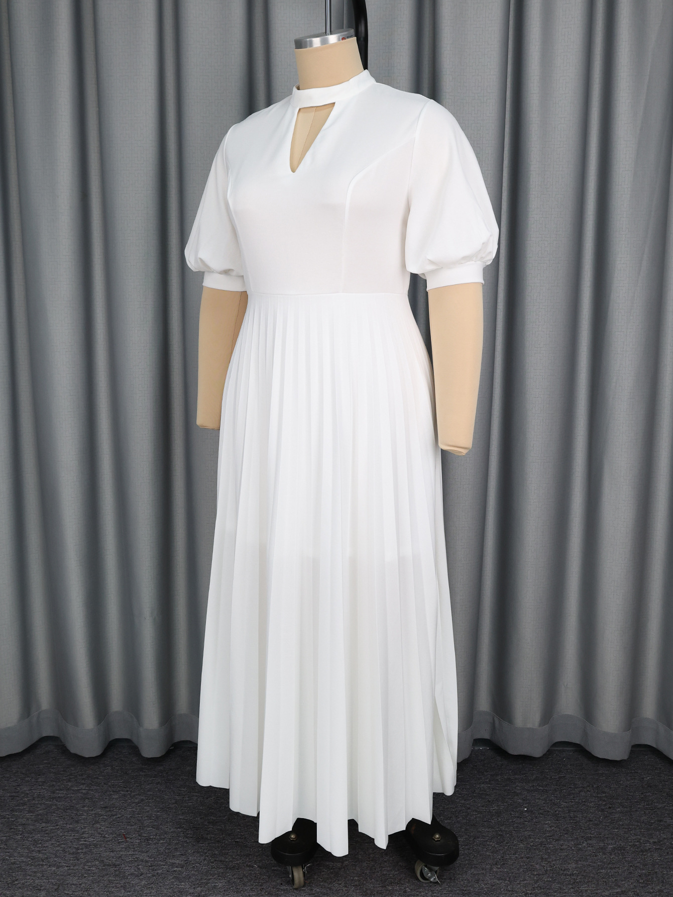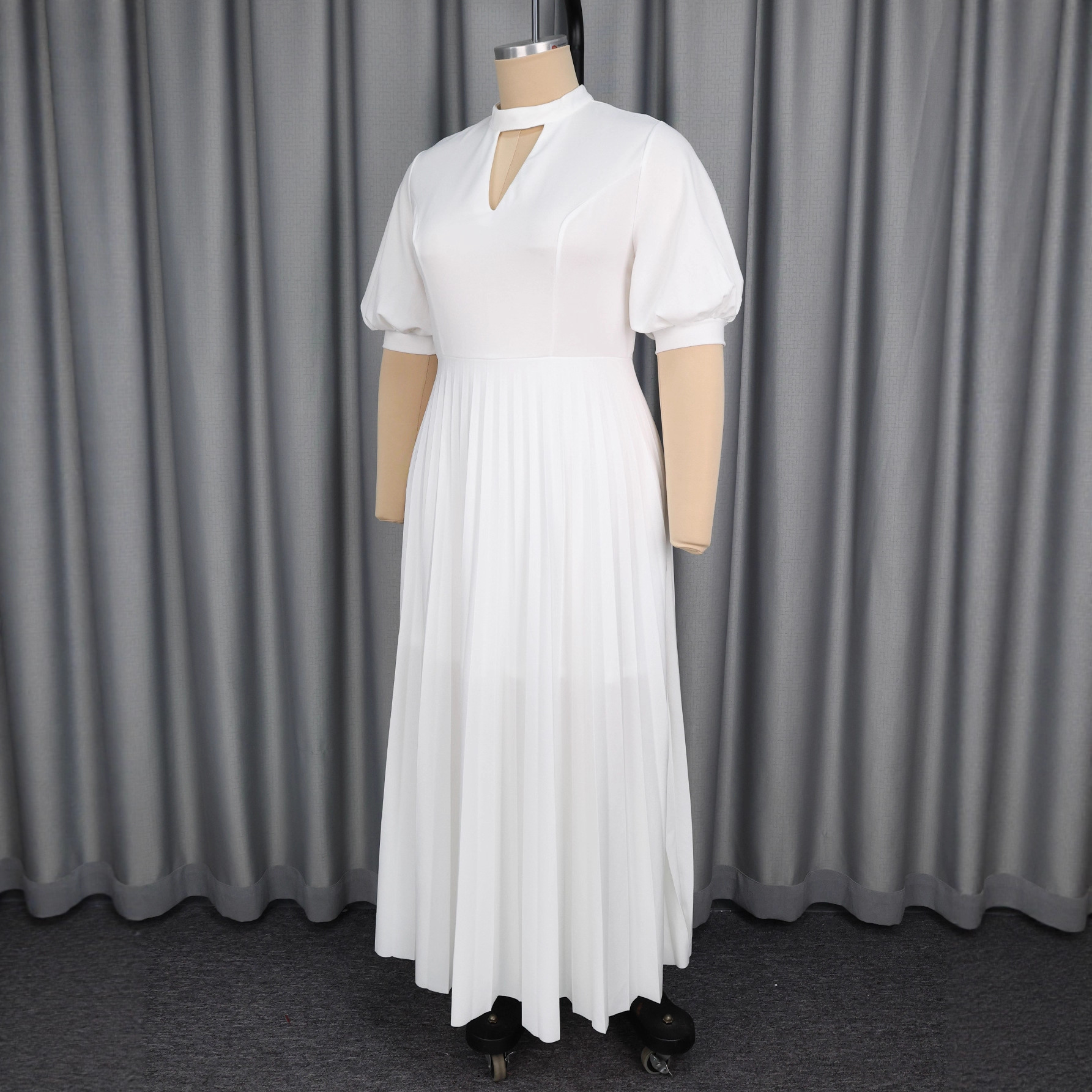 (FREE AIR SHIPPING) Large size half turtleneck hollow elegant dress high waist temperament party evening pleated skirt elegant dress