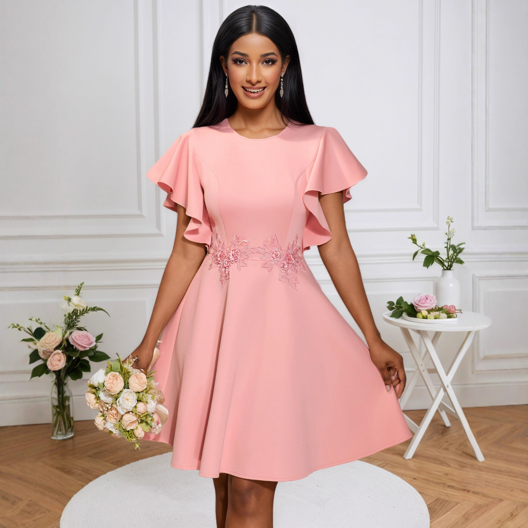 Large size half turtleneck hollow elegant dress high waist temperament party evening pleated skirt elegant dress