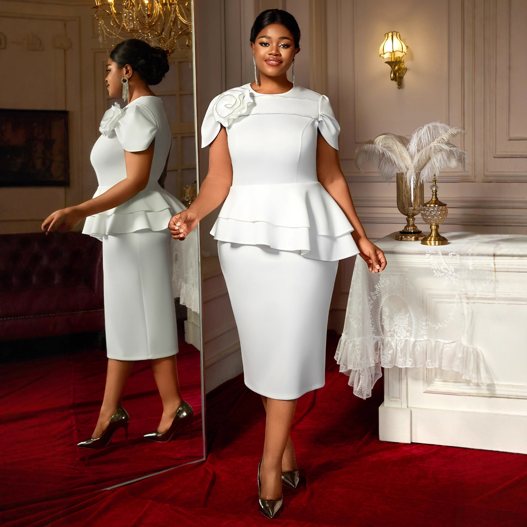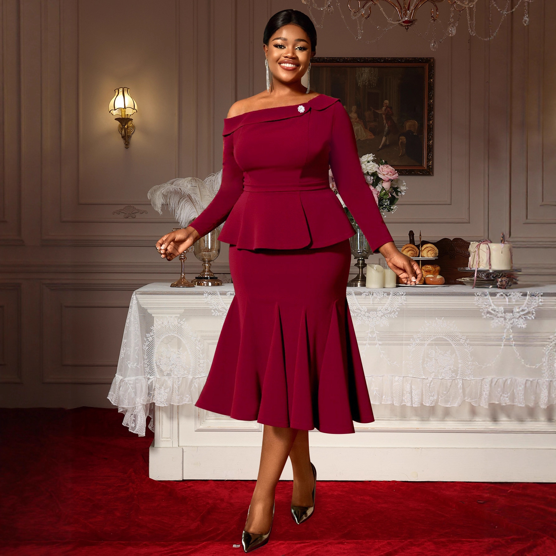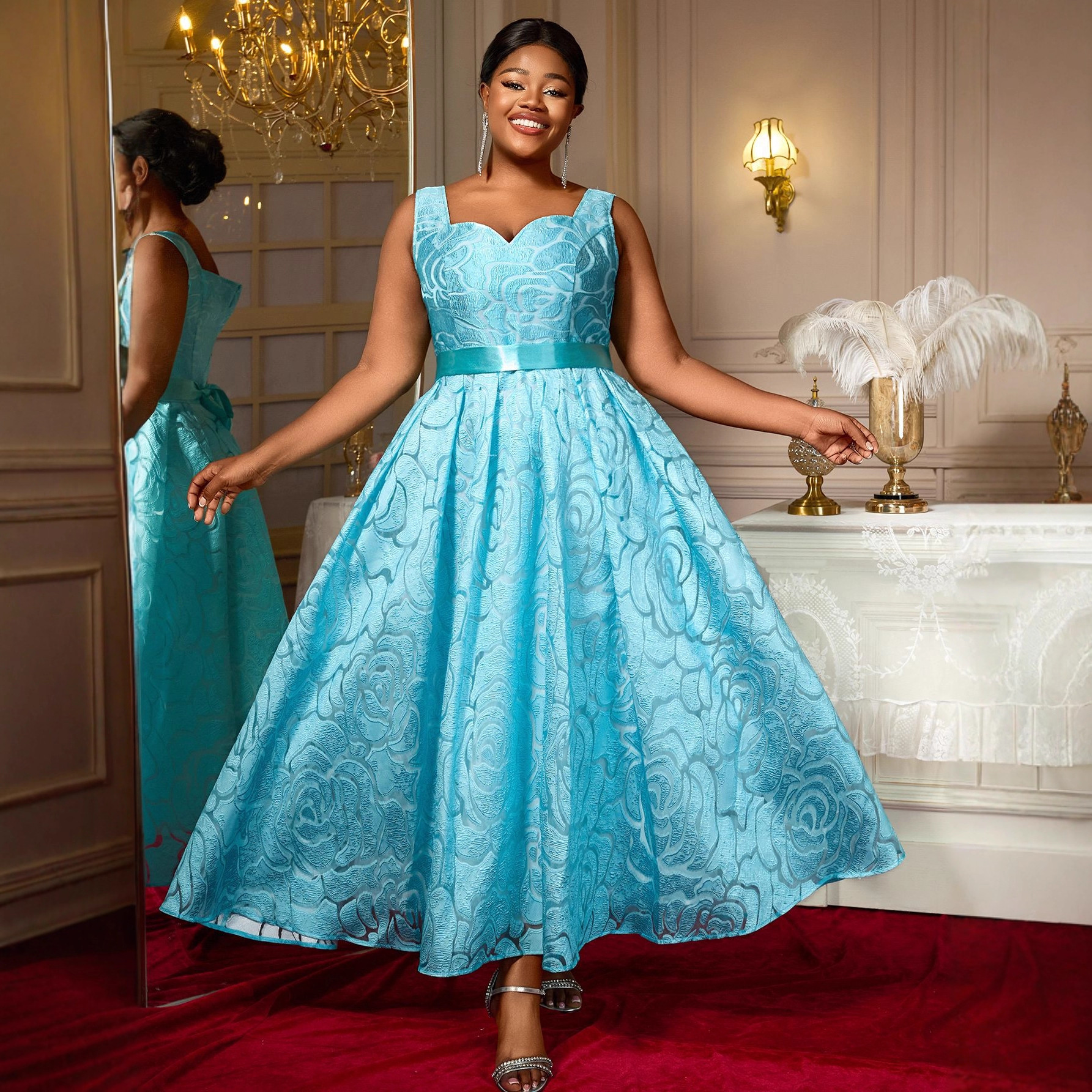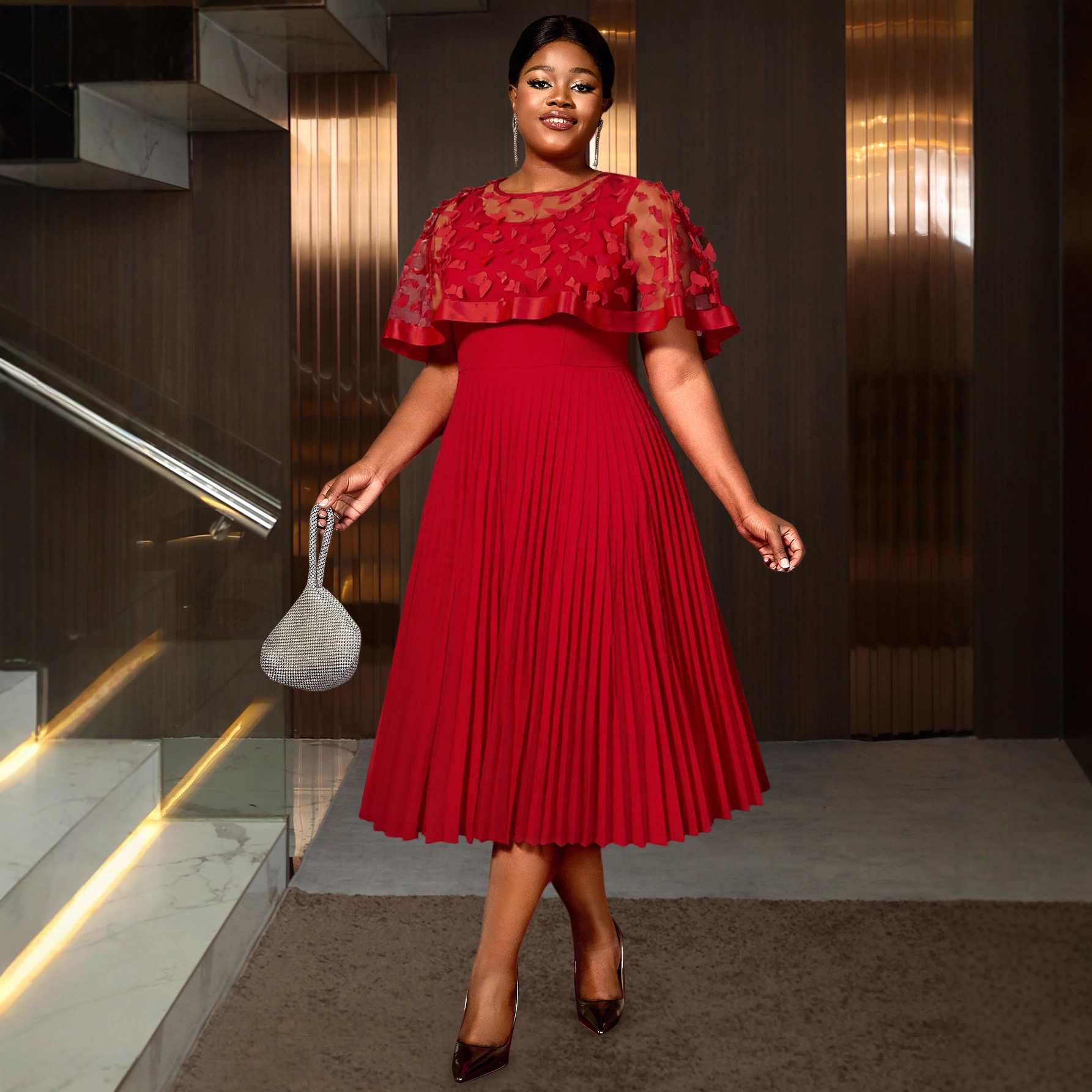 Large size new fashion lantern sleeve ruffle dress party banquet high waist skirt dresses