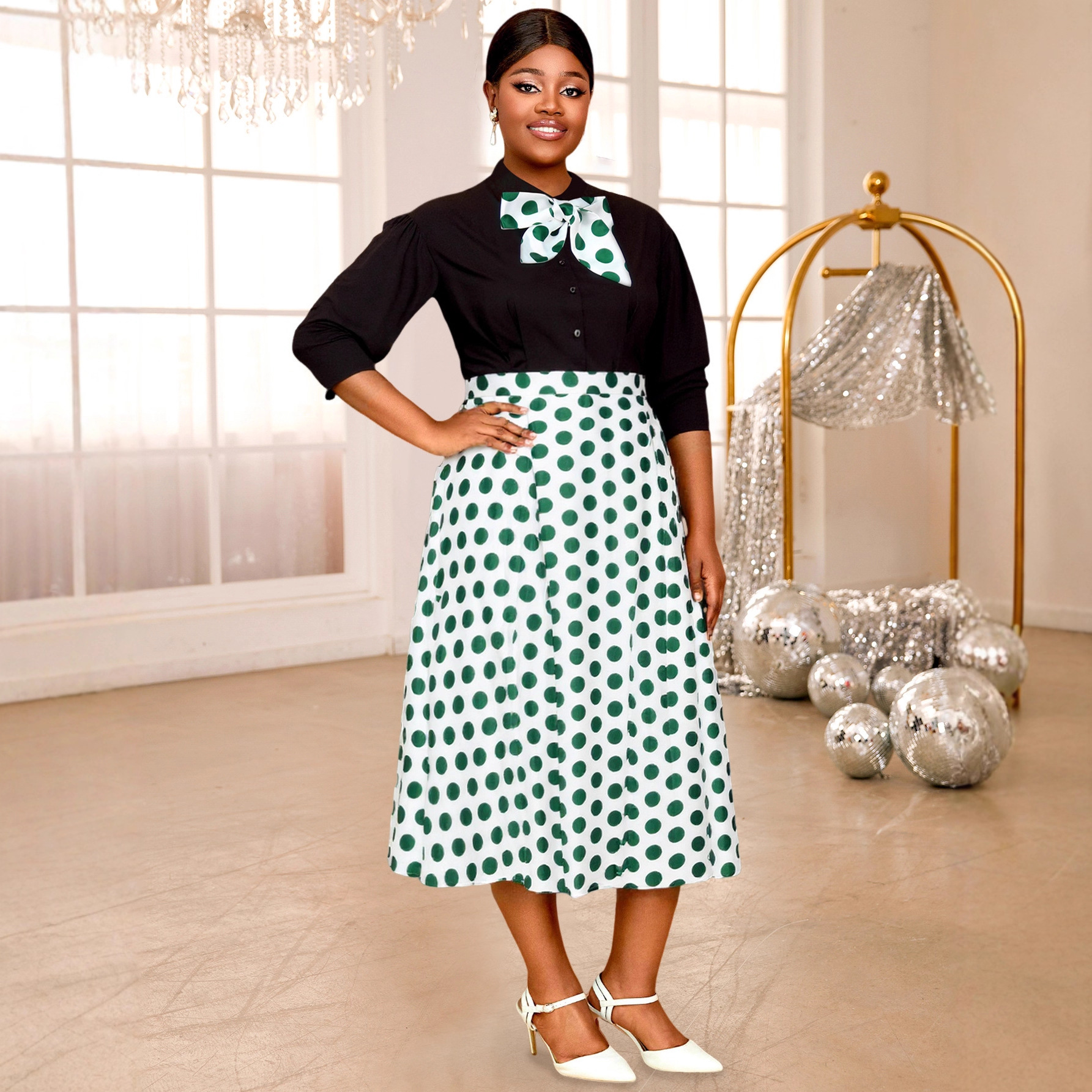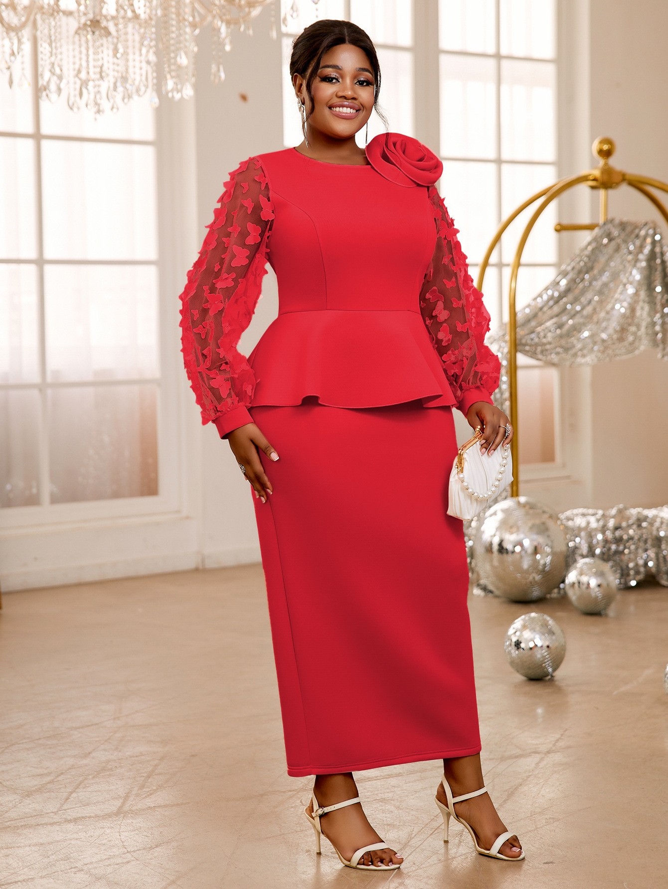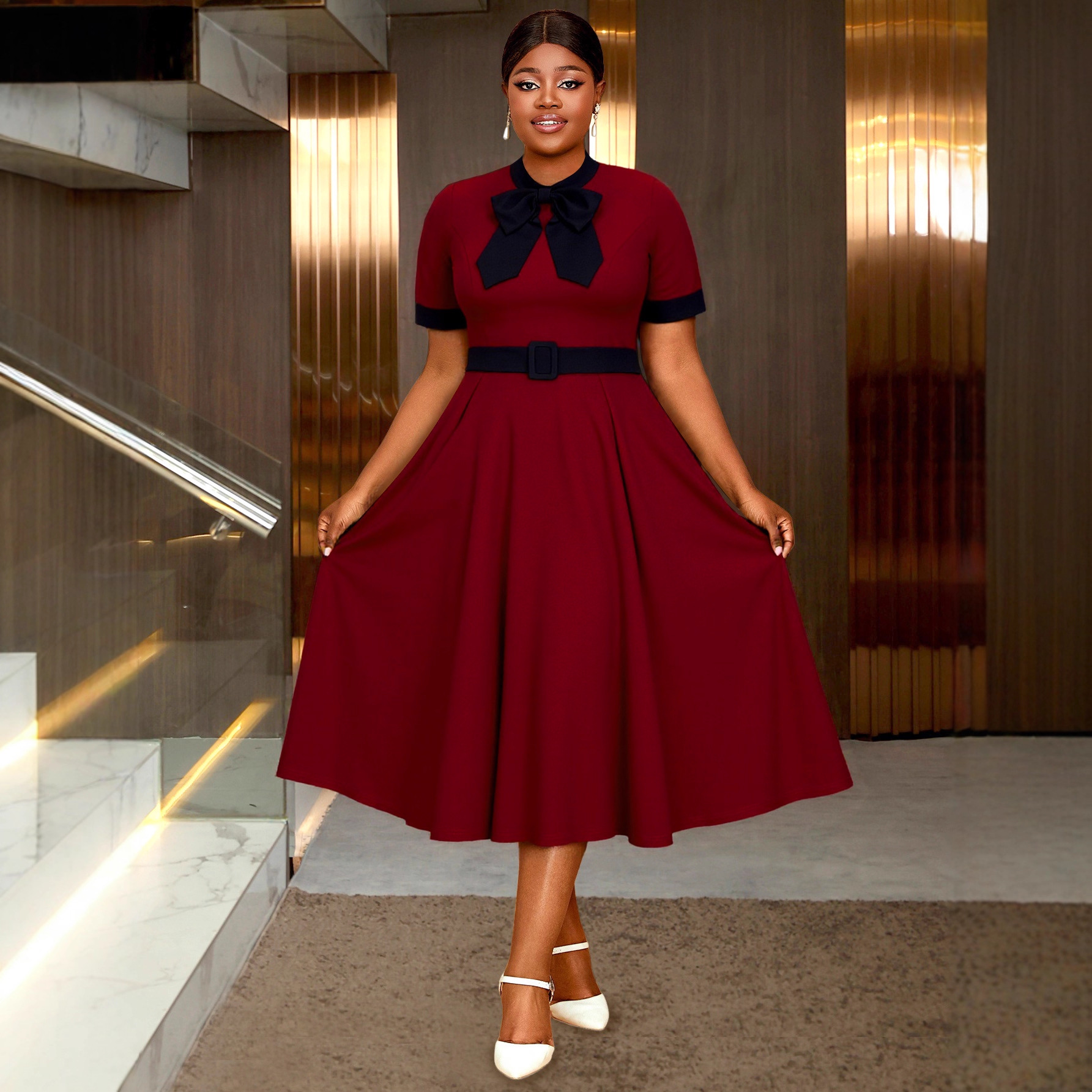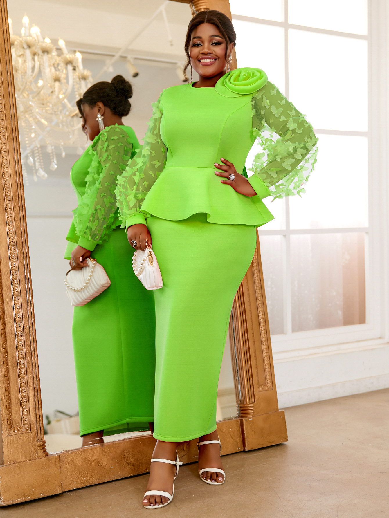 Large size new fashion lantern sleeve ruffle dress party banquet high waist skirt dresses