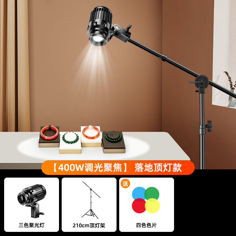 Light source color : [400w dimming focus] three-color jewelry lamp + desktop cantilever bracket, [400w dimming focus] three-color jewelry lamp + desktop overhead shooting bracket, [400w dimming focus] three-color jewelry lamp + 210cm thick bracket, [400w dimming focus] three-color jewelry lamp + 210cm ceiling light stand, [500w fixed aperture] three-color jewelry lamp + desktop cantilever bracket, [500w fixed aperture] three-color jewelry lamp + desktop overhead shooting bracket, [500w fixed aperture] three-color jewelry lamp + 210cm thick bracket, [500w fixed aperture] three-color jewelry lamp + 210cm ceiling light stand, [600w dimming focus] three-color jewelry lamp + desktop cantilever bracket, [600w dimming focus] three-color jewelry lamp + desktop overhead shooting bracket, [600w dimming focus] three-color jewelry lamp + 210cm thick bracket, [600w dimming focus] three-color jewelry lamp + 210cm ceiling light stand
