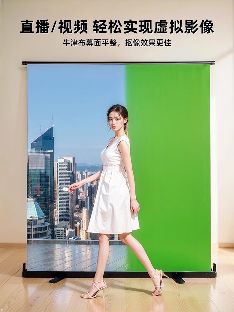 Liftable pull screen upgrade encryption thickened green Oxford cloth portable opaque keying professional background wall