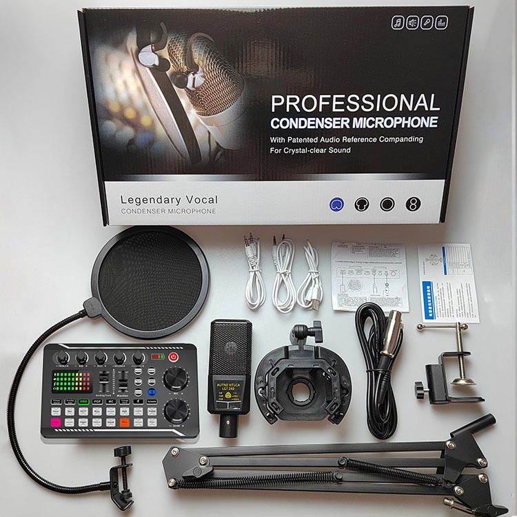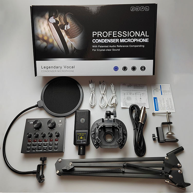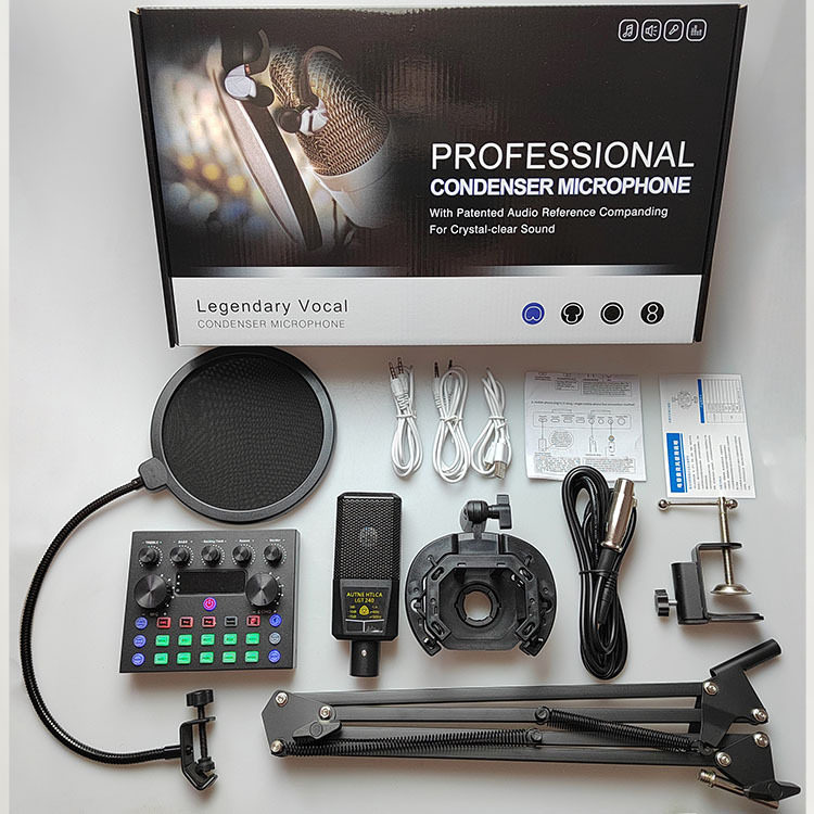 (FREE SEA SHIPPING) Live sound card singing mobile phone network red tremolo anchor recording microphone National condenser K song microphone set