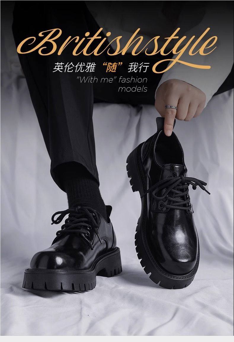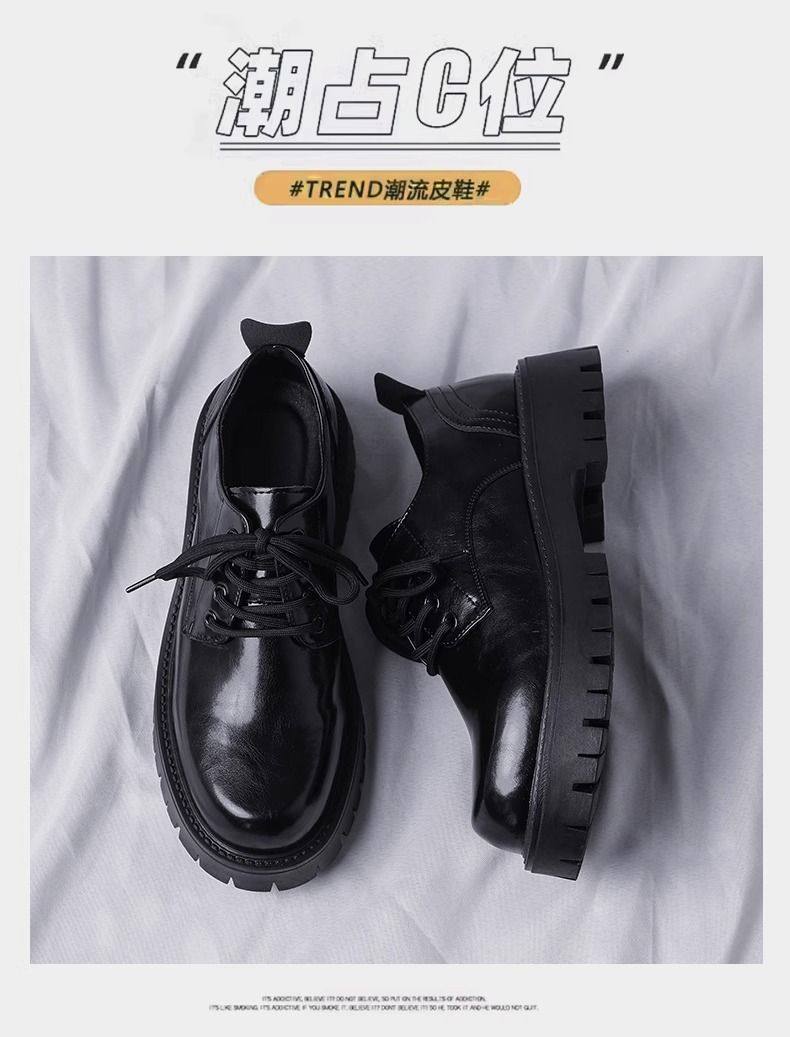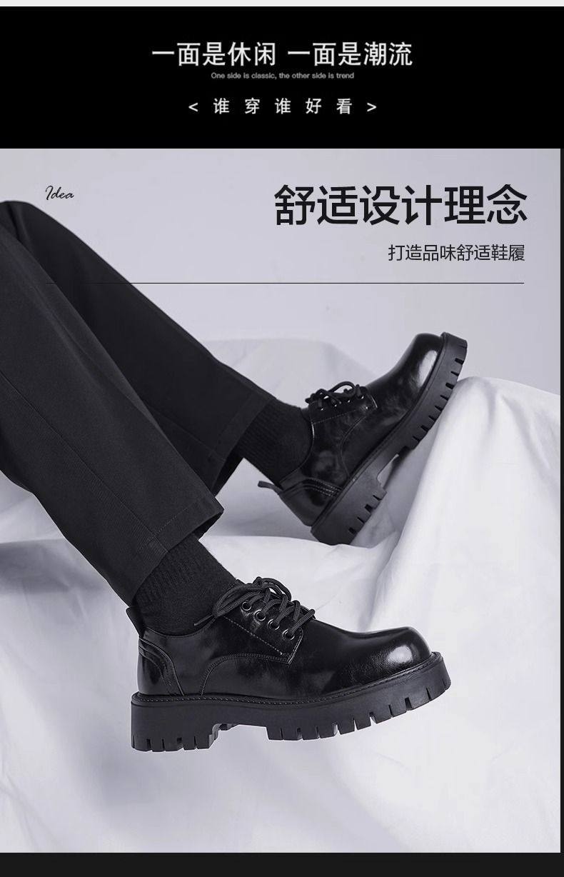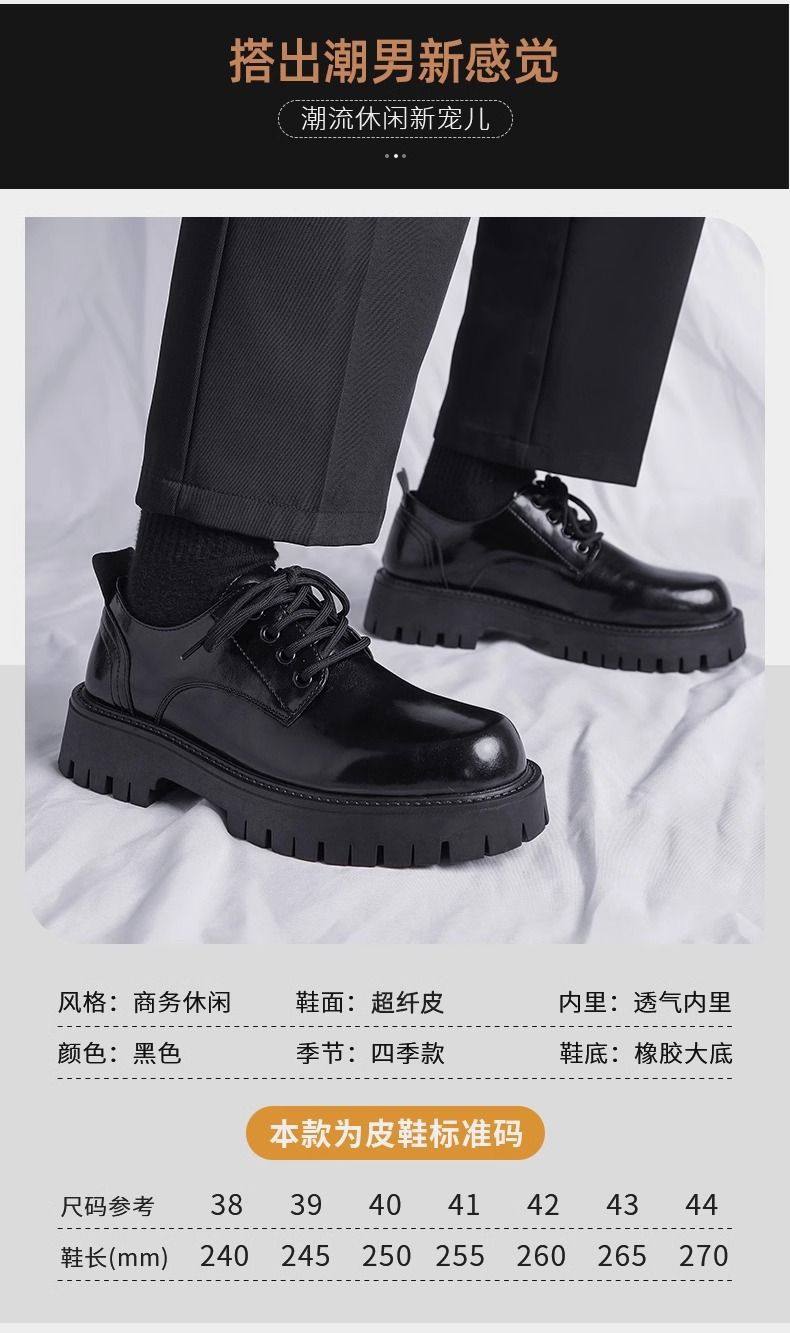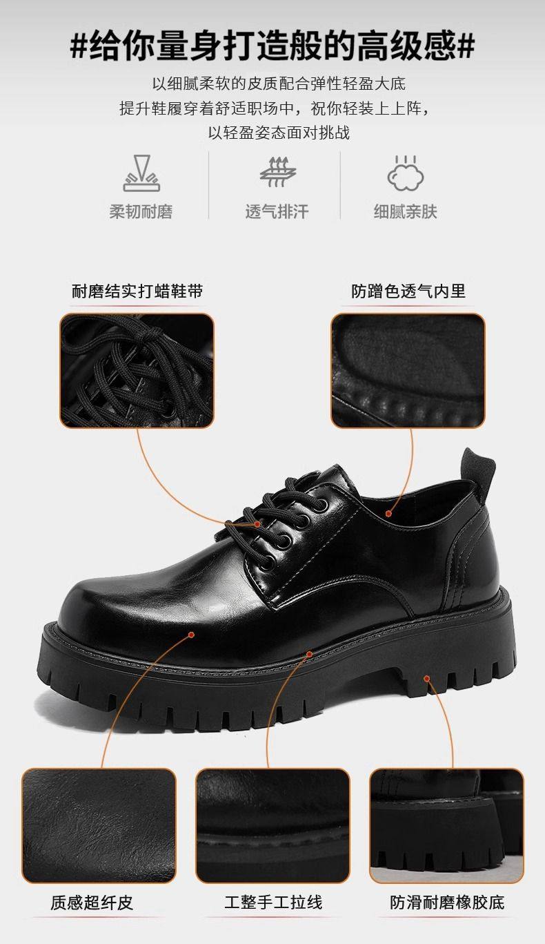 Men's new autumn leather shoes, men's black casual leather shoes, British style soft sole business interior heightening wedding groom's shoes