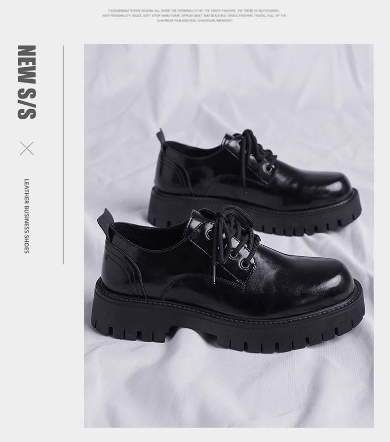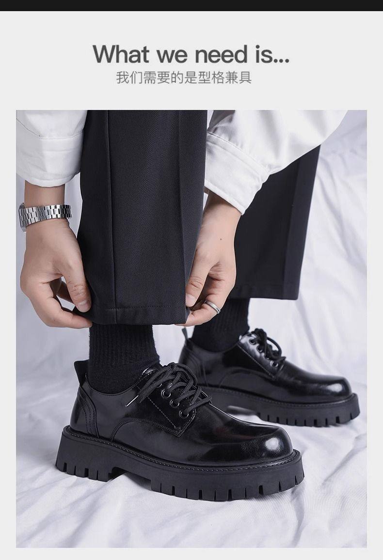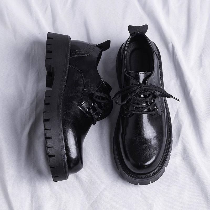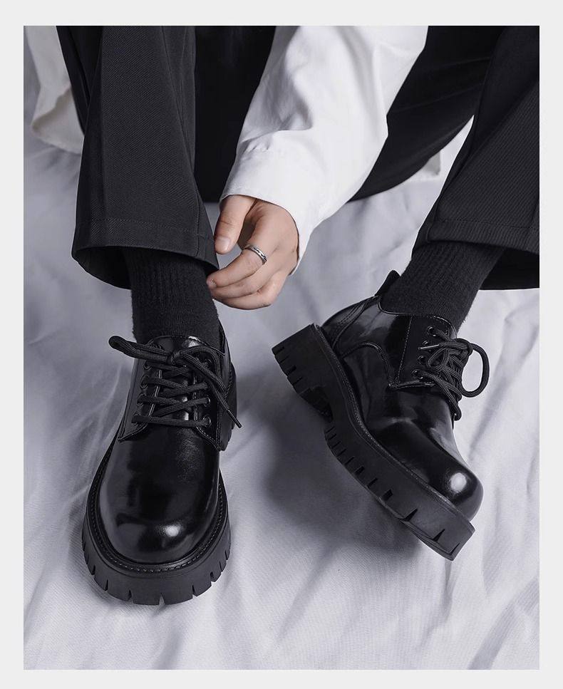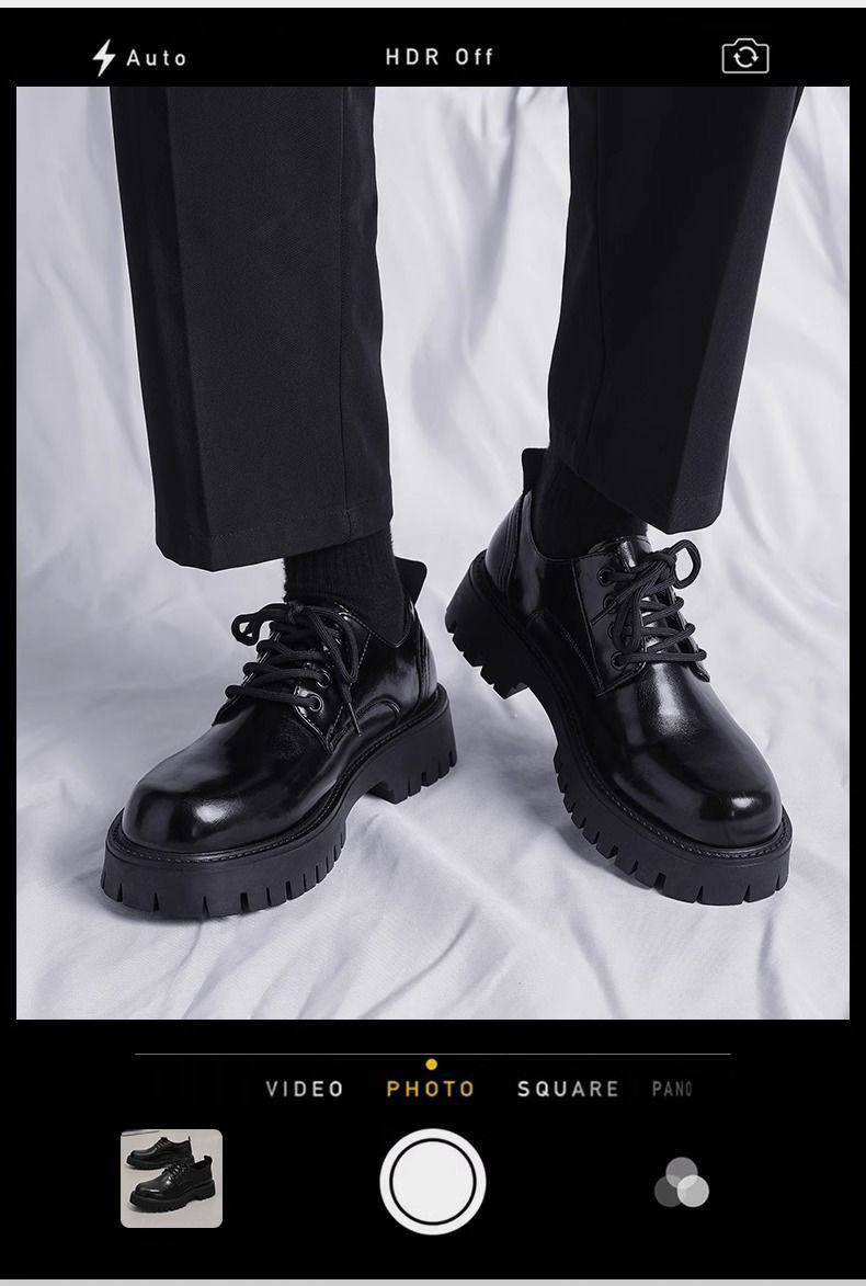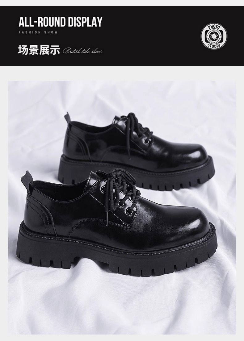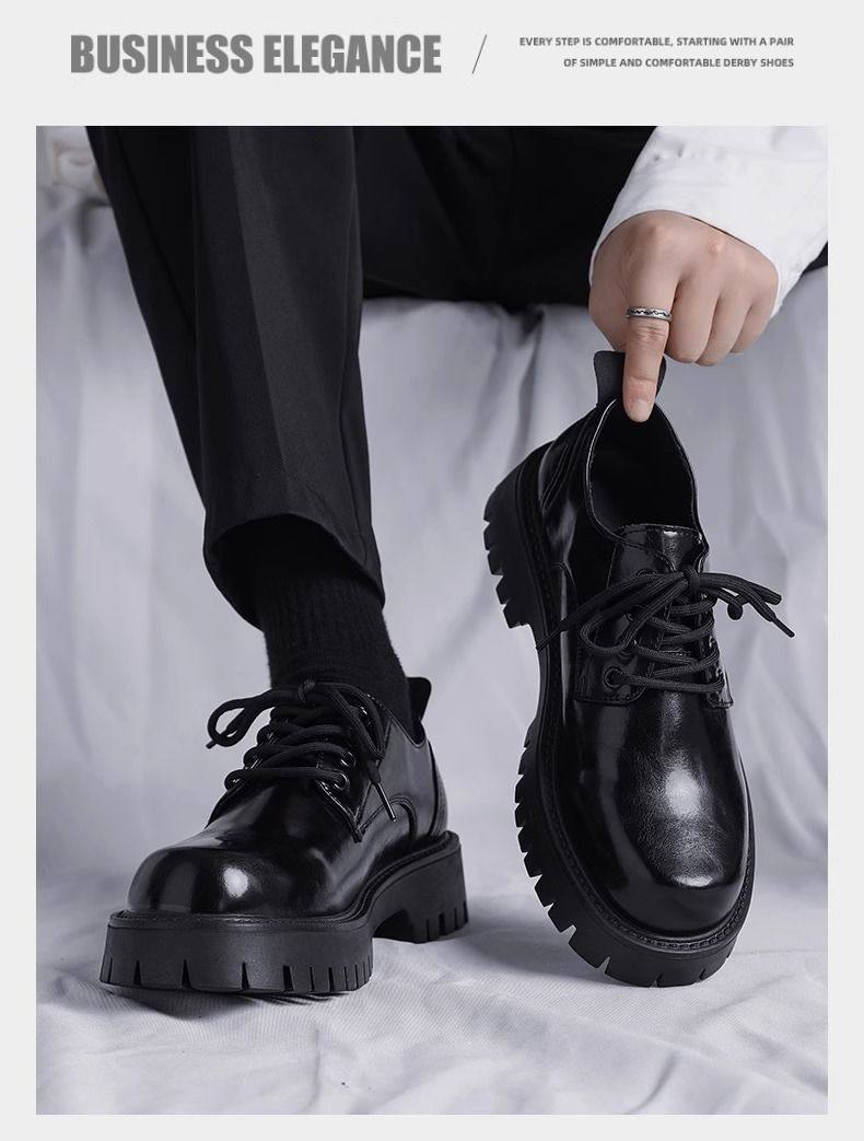 Men's new autumn leather shoes, men's black casual leather shoes, British style soft sole business interior heightening wedding groom's shoes
