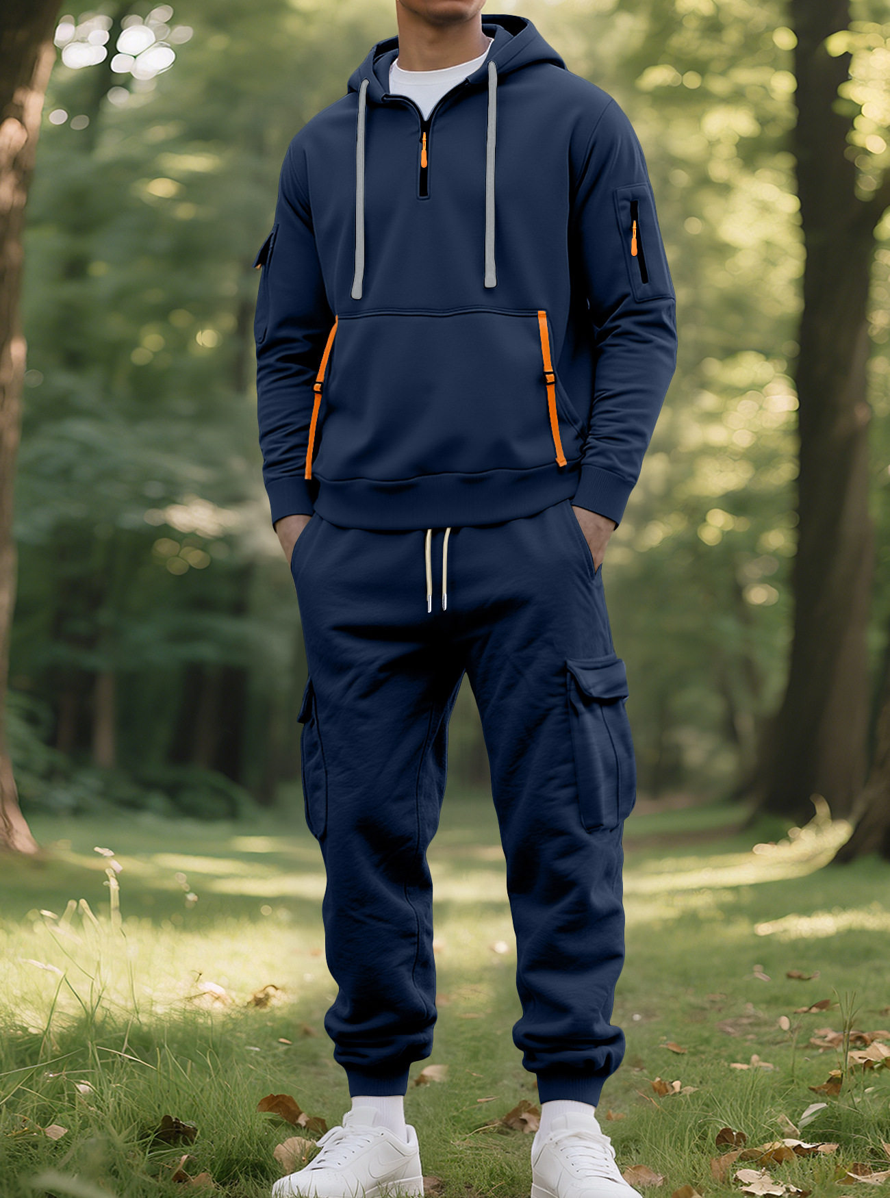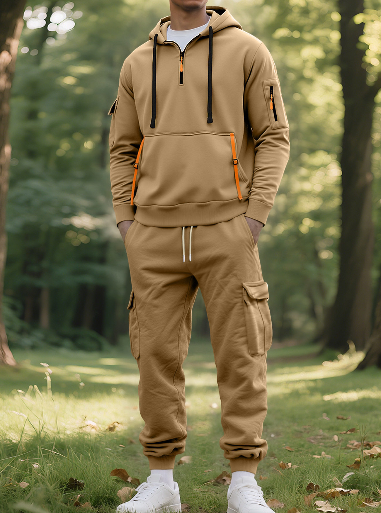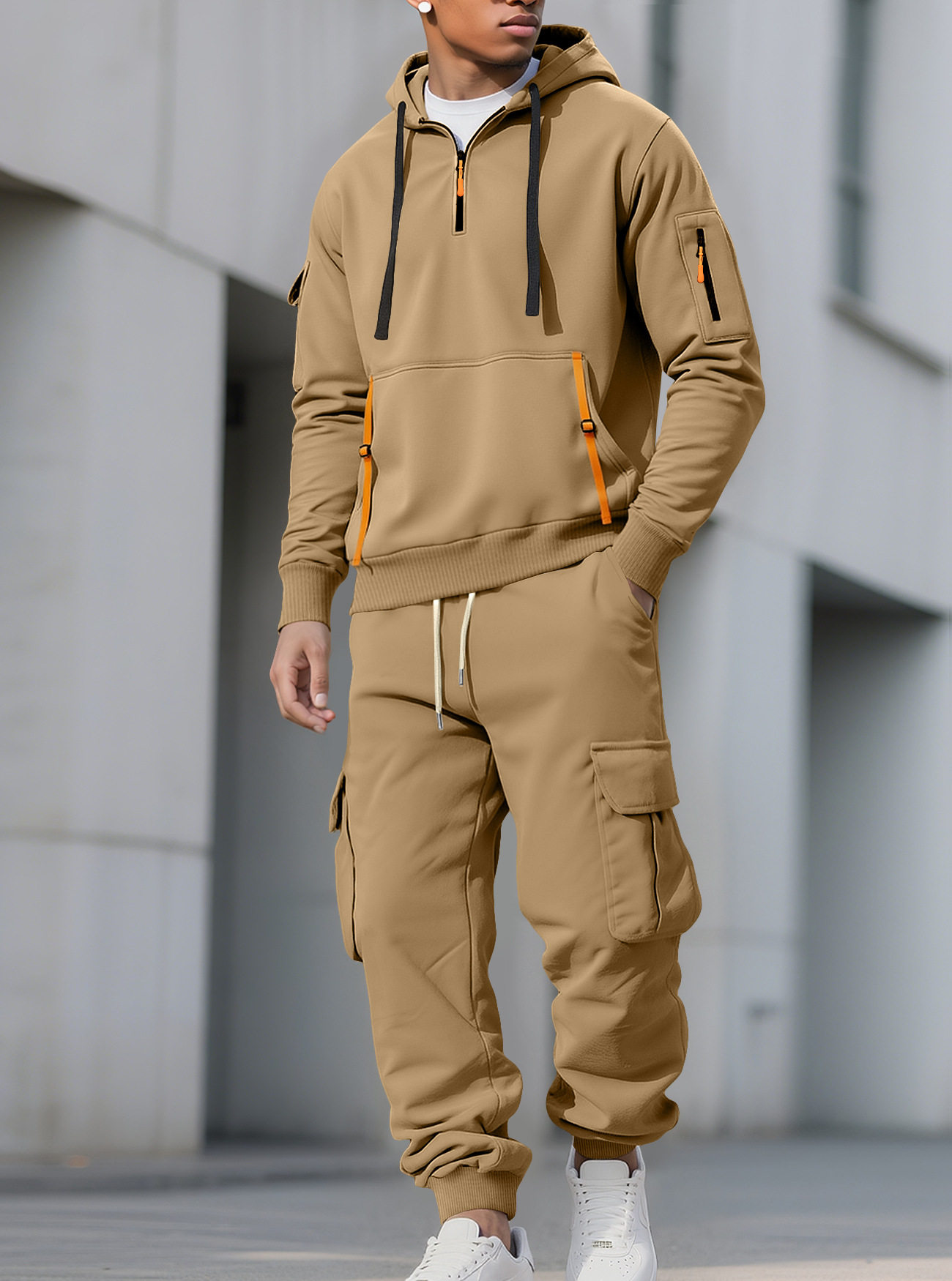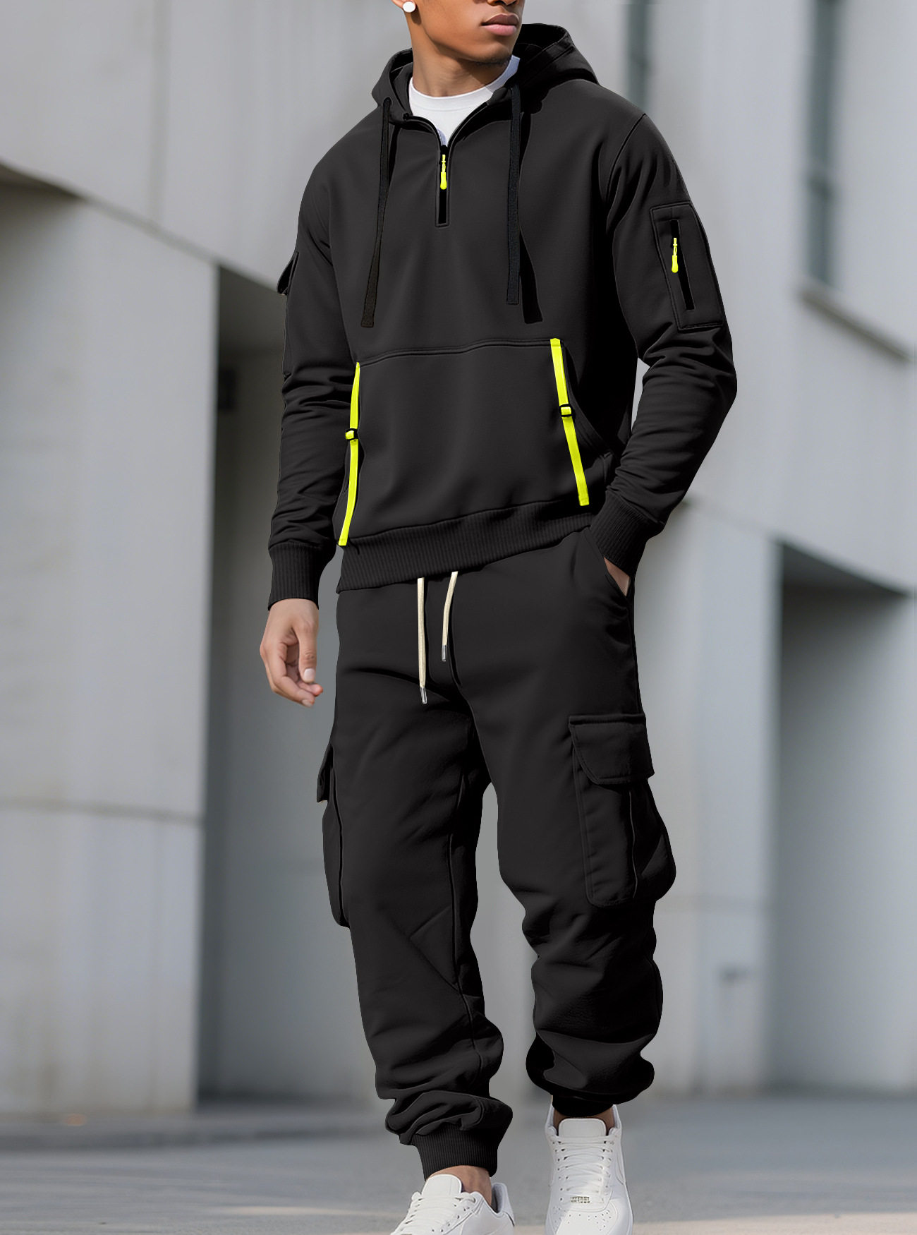 Men's Velvet Sweatshirt Fashion Hoodie Zipper Multi-Pocket Carhartt Overalls Suit
