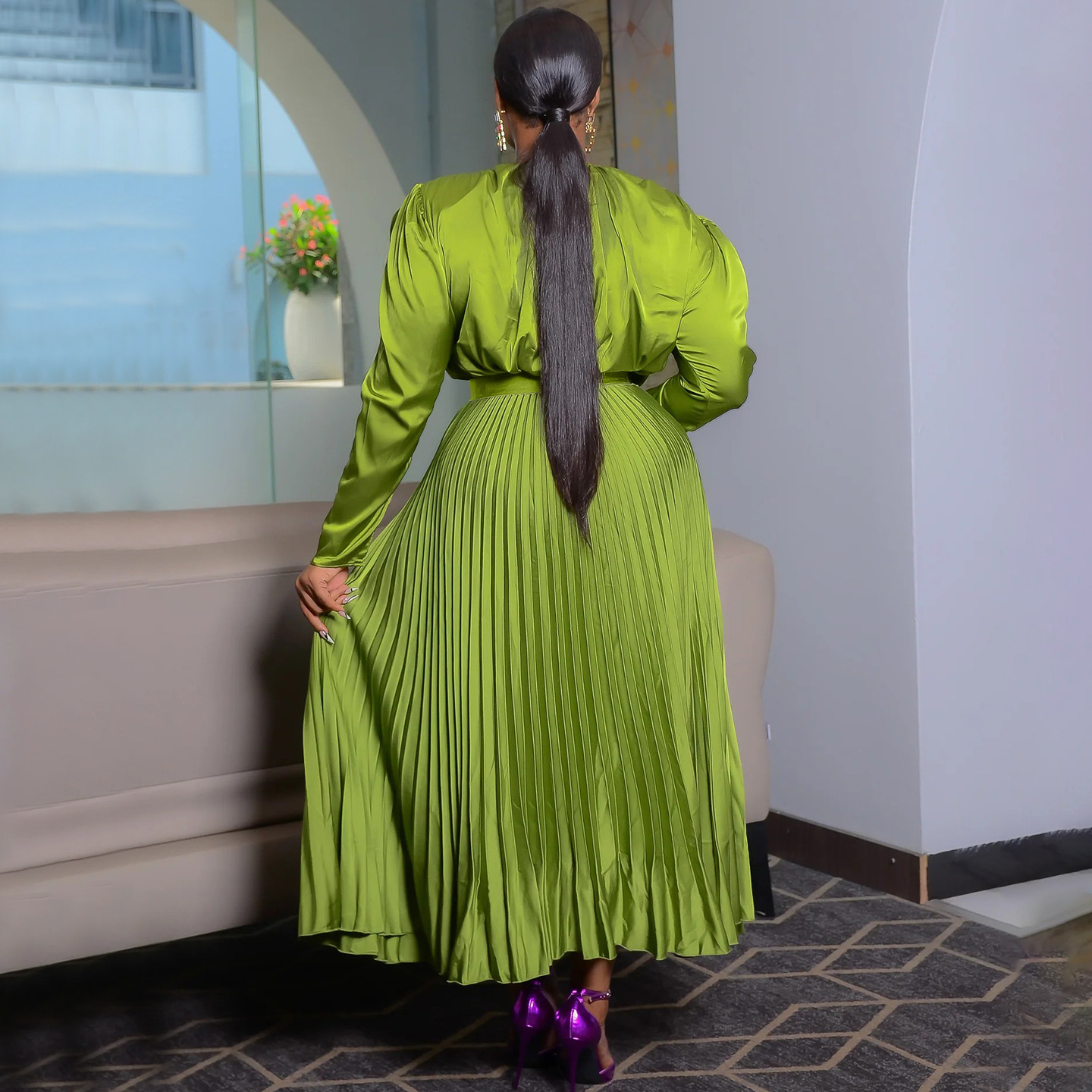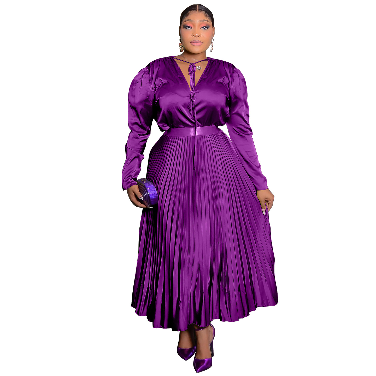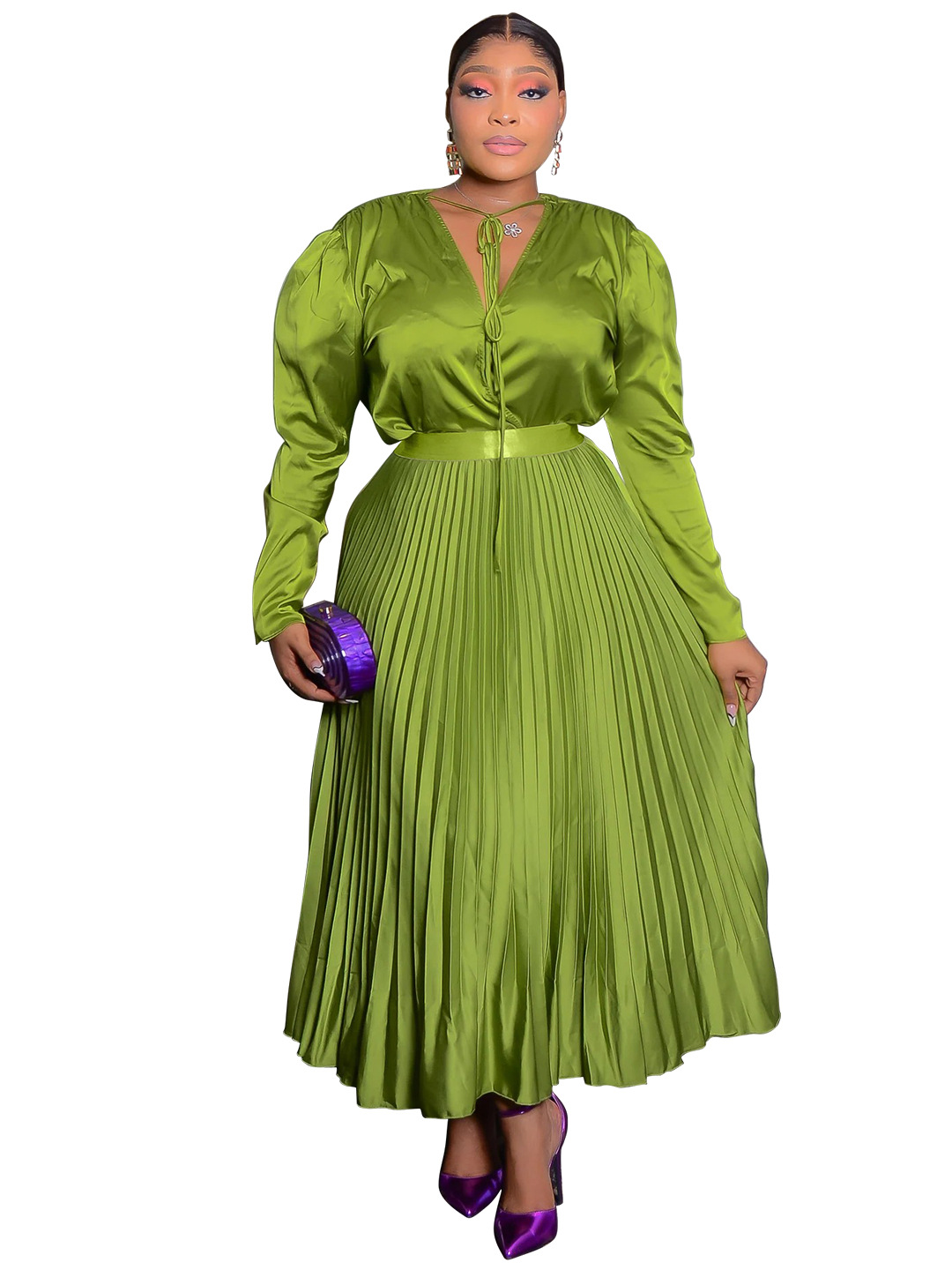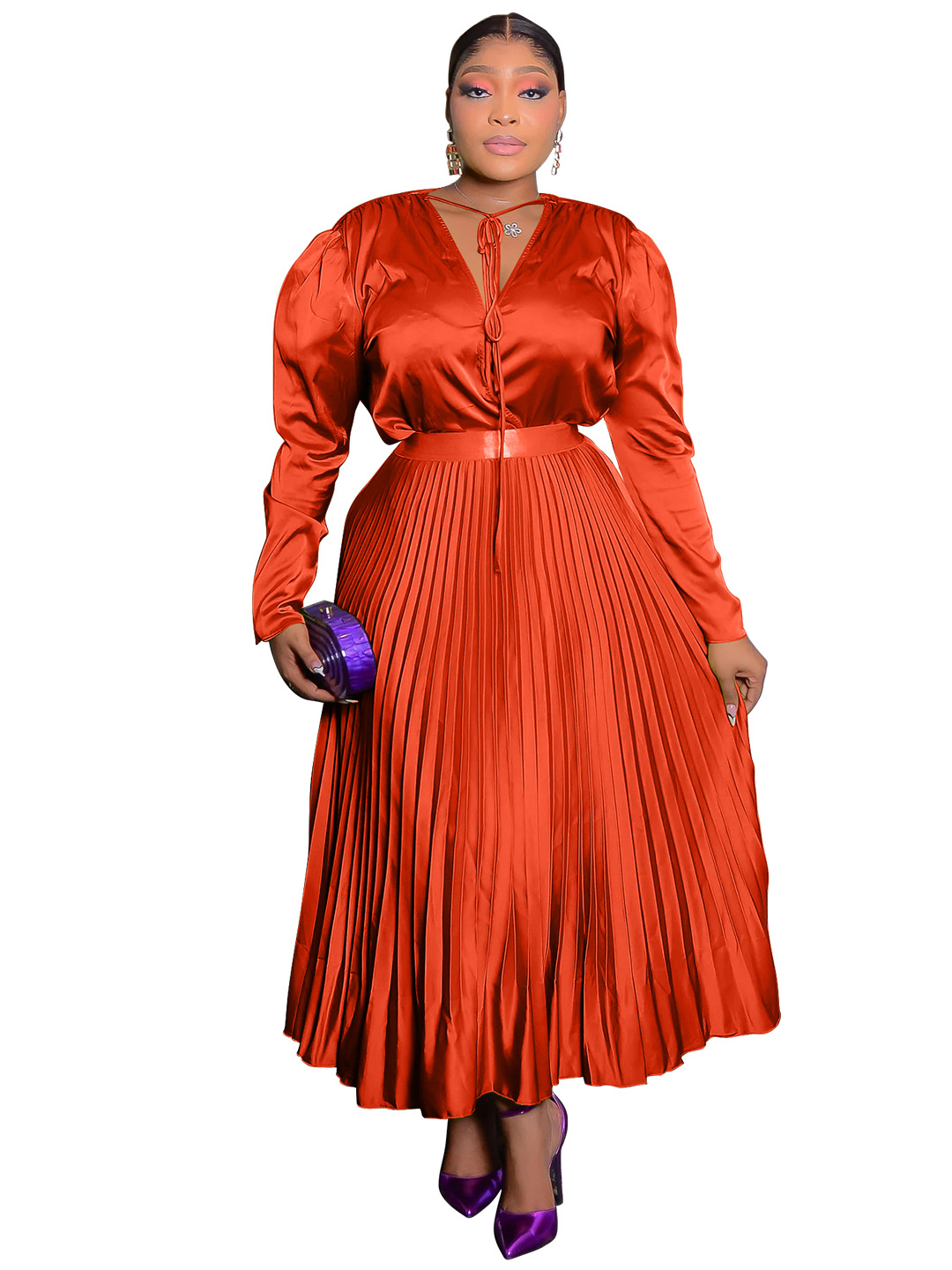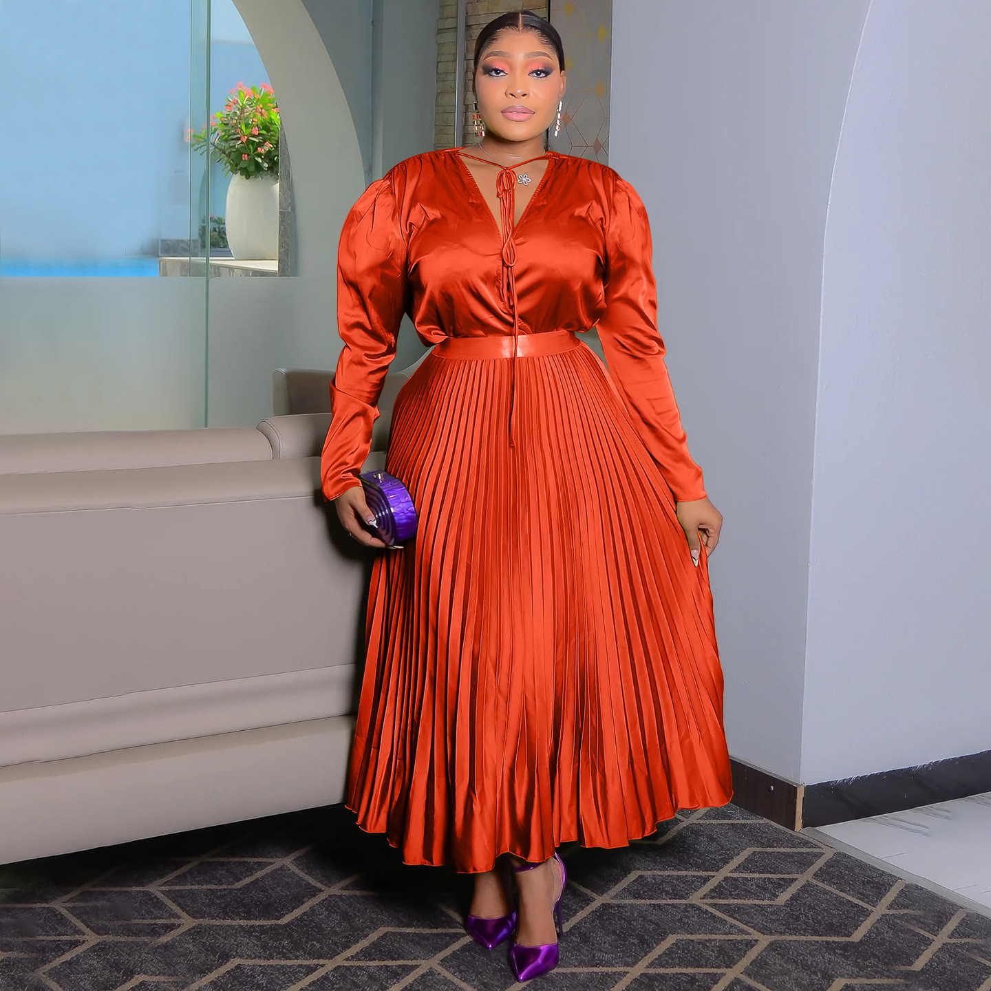 (FREE AIR SHIPPING) N8115 Amazon cross-border 2025 autumn new European and American women's clothing solid color lace-up temperament pleated long-sleeved skirt suit