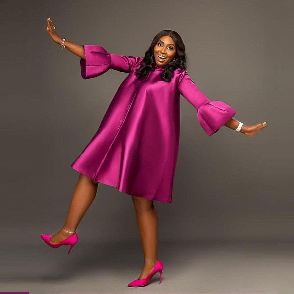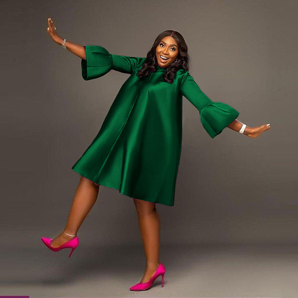 New large size round neck bell sleeves loose slimming casual party dress for women party dress