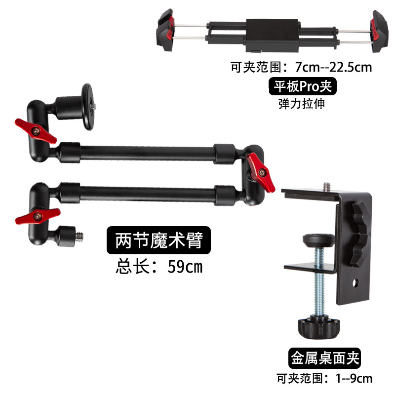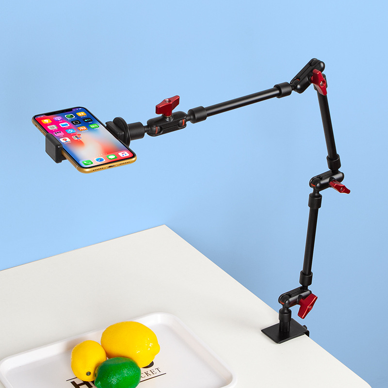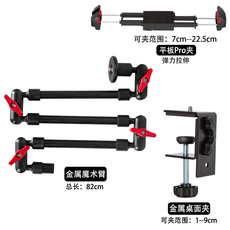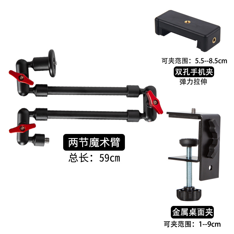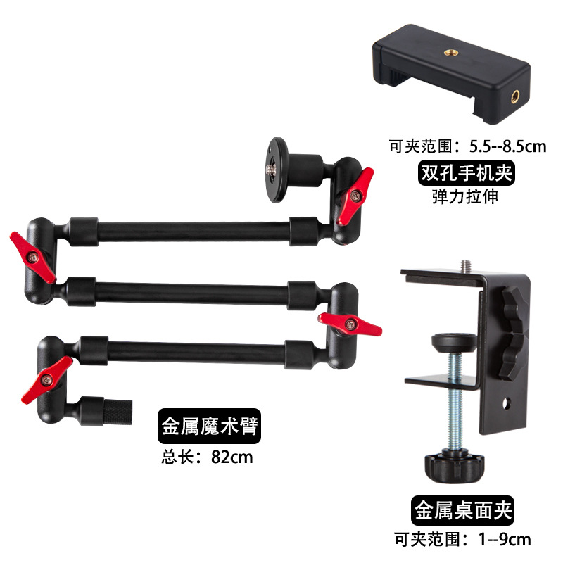 | Color : | Metal Desktop Clip + Three Section Magic Arm + Flat Pro Clip, Metal desktop clip + three magic arm + double hole mobile phone clip, Three Section Magic Arm, Metal Desktop Clip [3/8 Female Mouth]], Metal Desktop Clip + Two Section Magic Arm + Flat Pro Clip, Metal desktop clip + two magic arm + double hole mobile phone clip, Two sections of the magic arm |